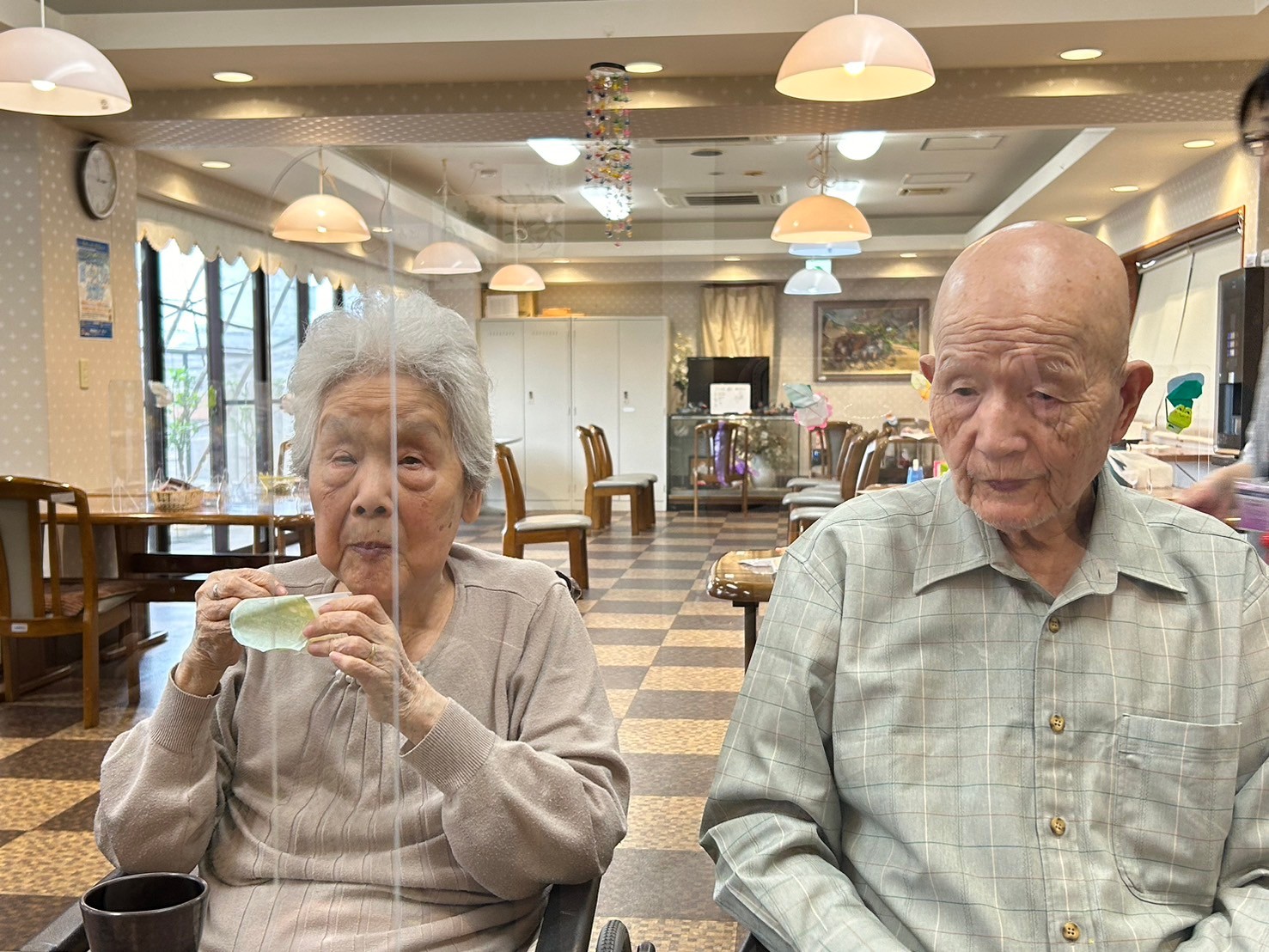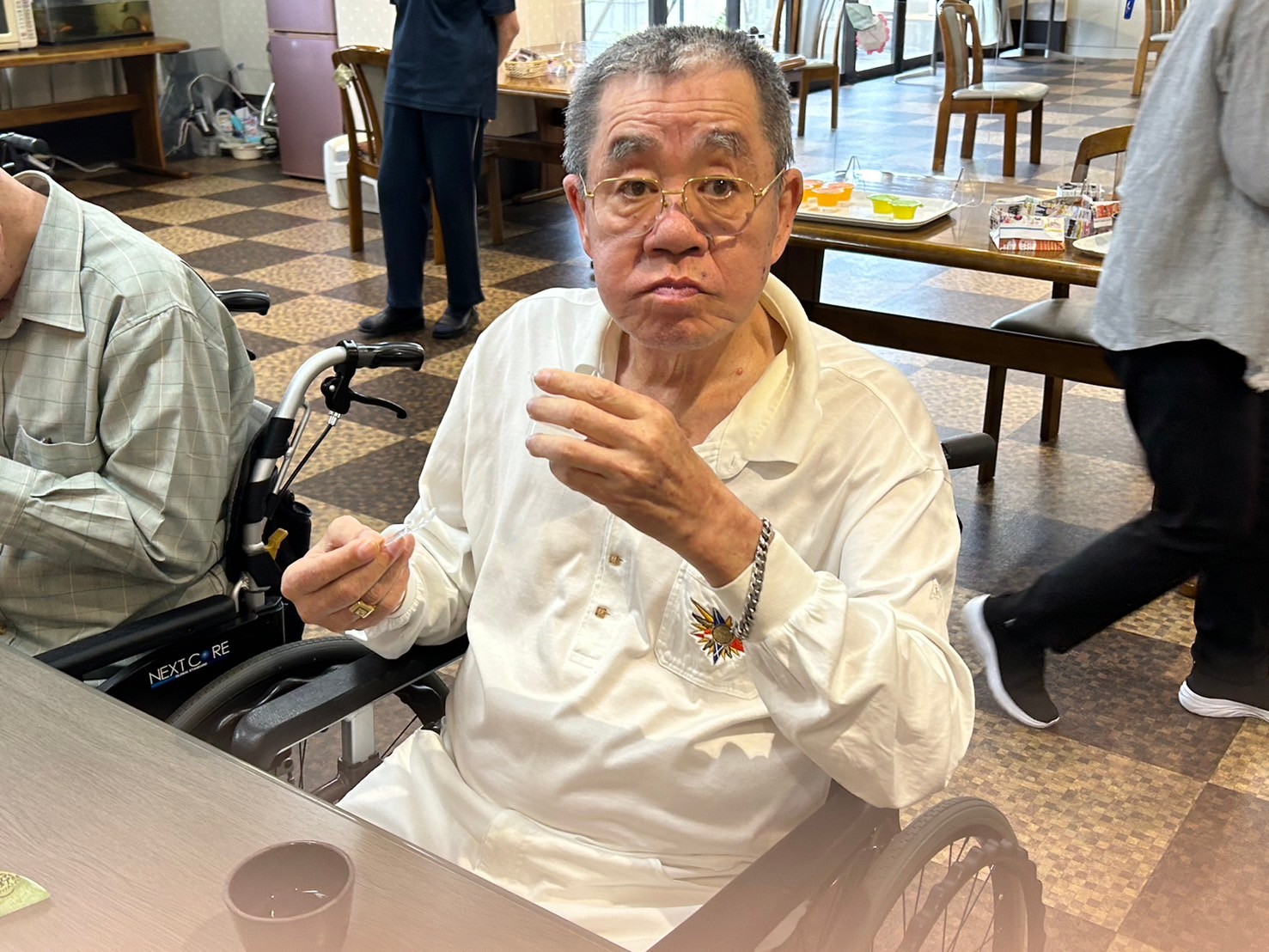 お食事中にも関わらず、こんなにチャーミングなポーズで撮影に答えてくださいました☆ 皆を笑顔にしてくださるとてもお優しいご入居者様です ♪