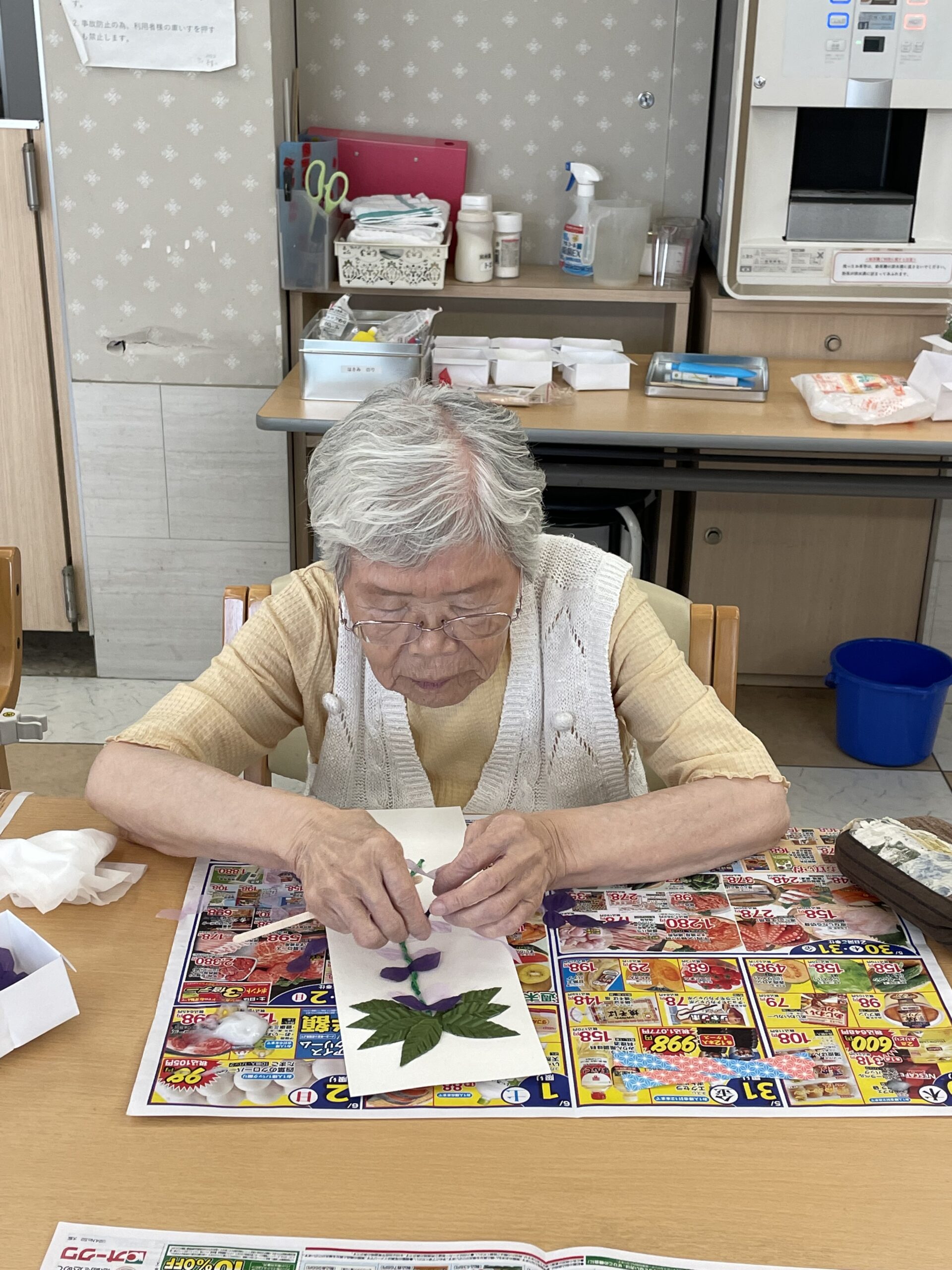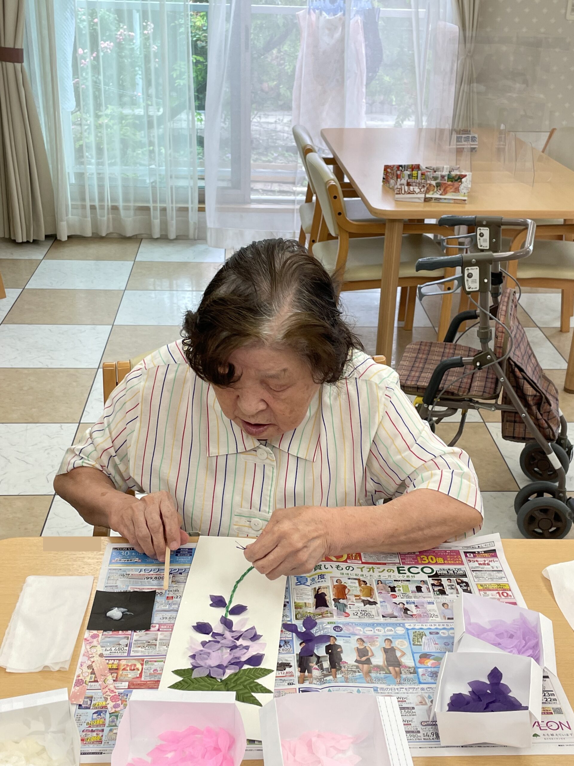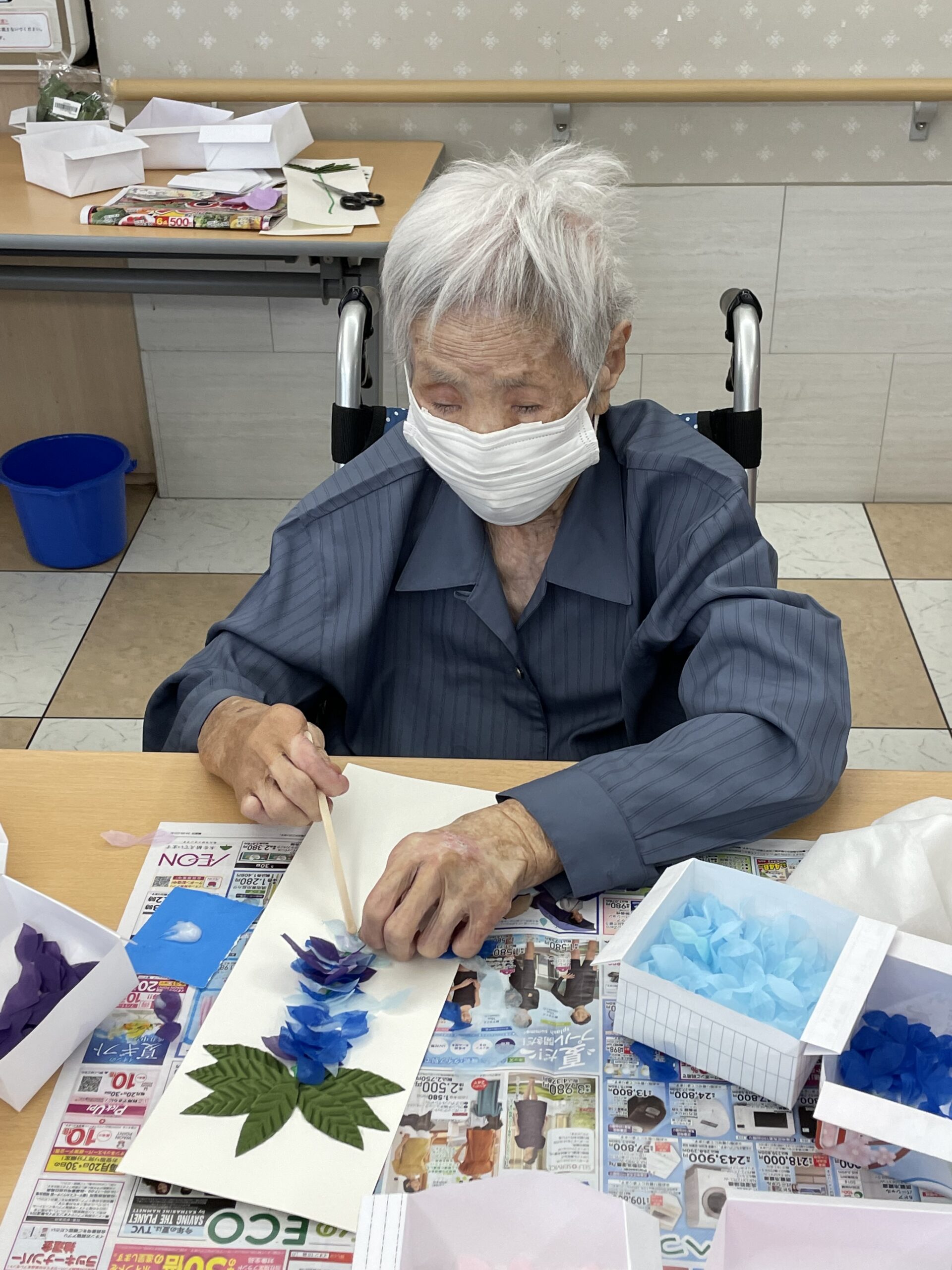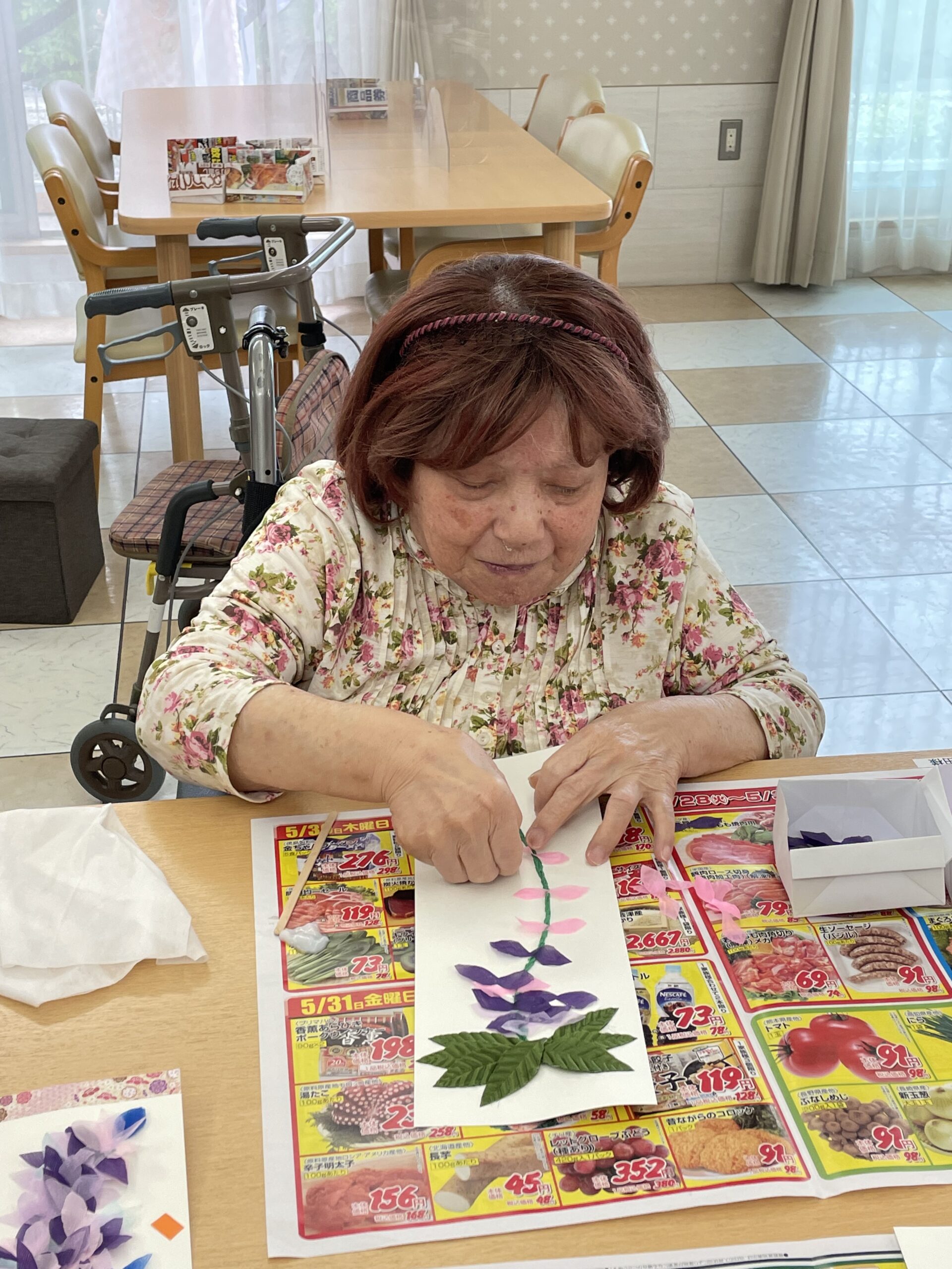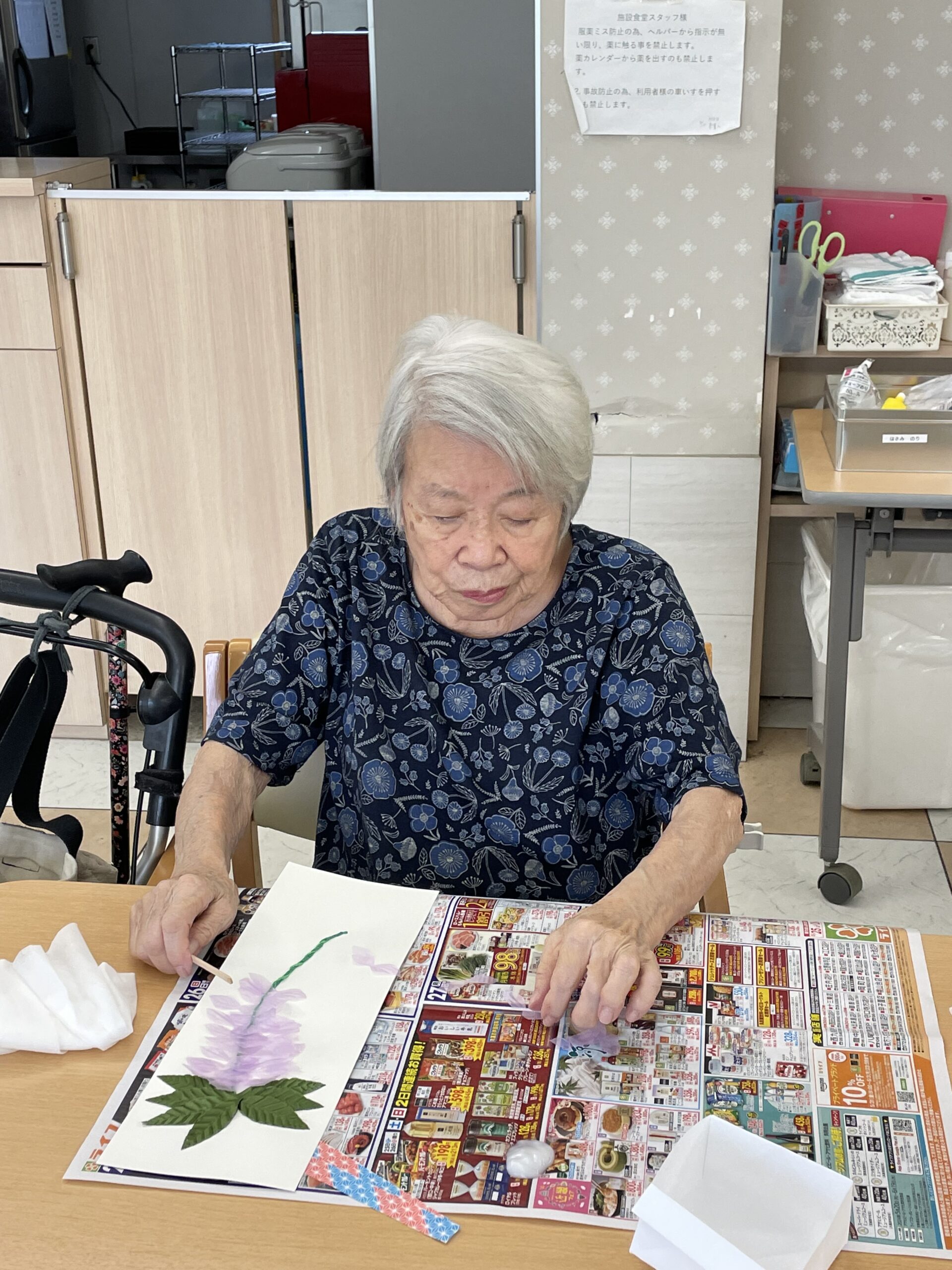 昔から物作りがお上手なこちらのご入居者様☆ 青い花びらを選ばれました! オリジナリティー溢れる藤の花が素敵ですね☆