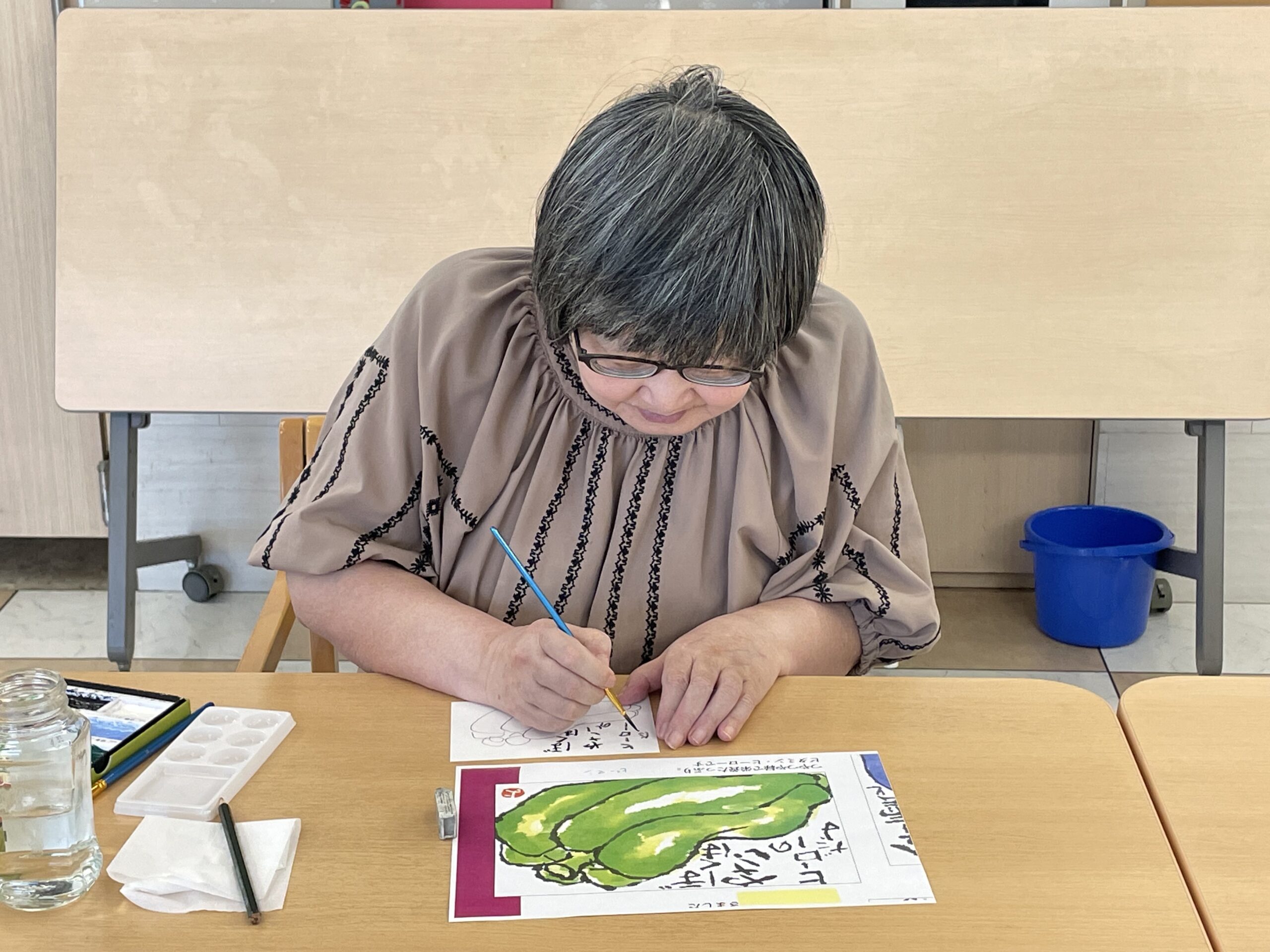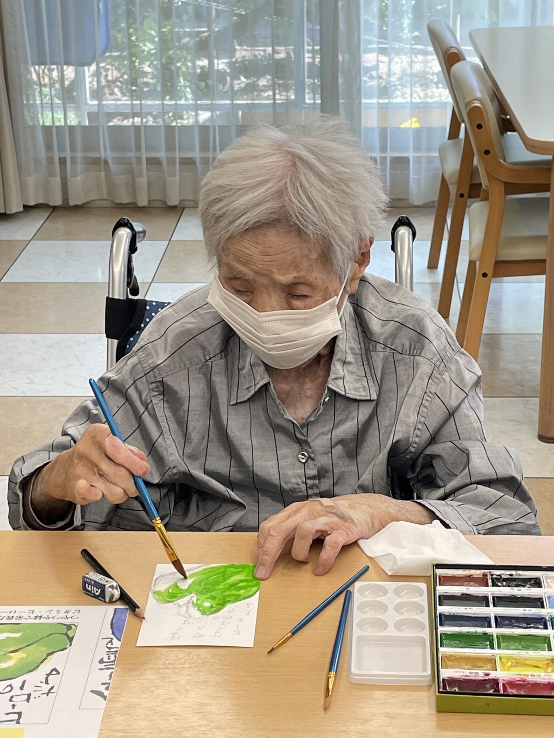 いつも10分もかからないくらいの早さで絵手紙を完成されるこちらのご入居者様☆ どんな素敵な絵手紙が完成するのか楽しみですね!