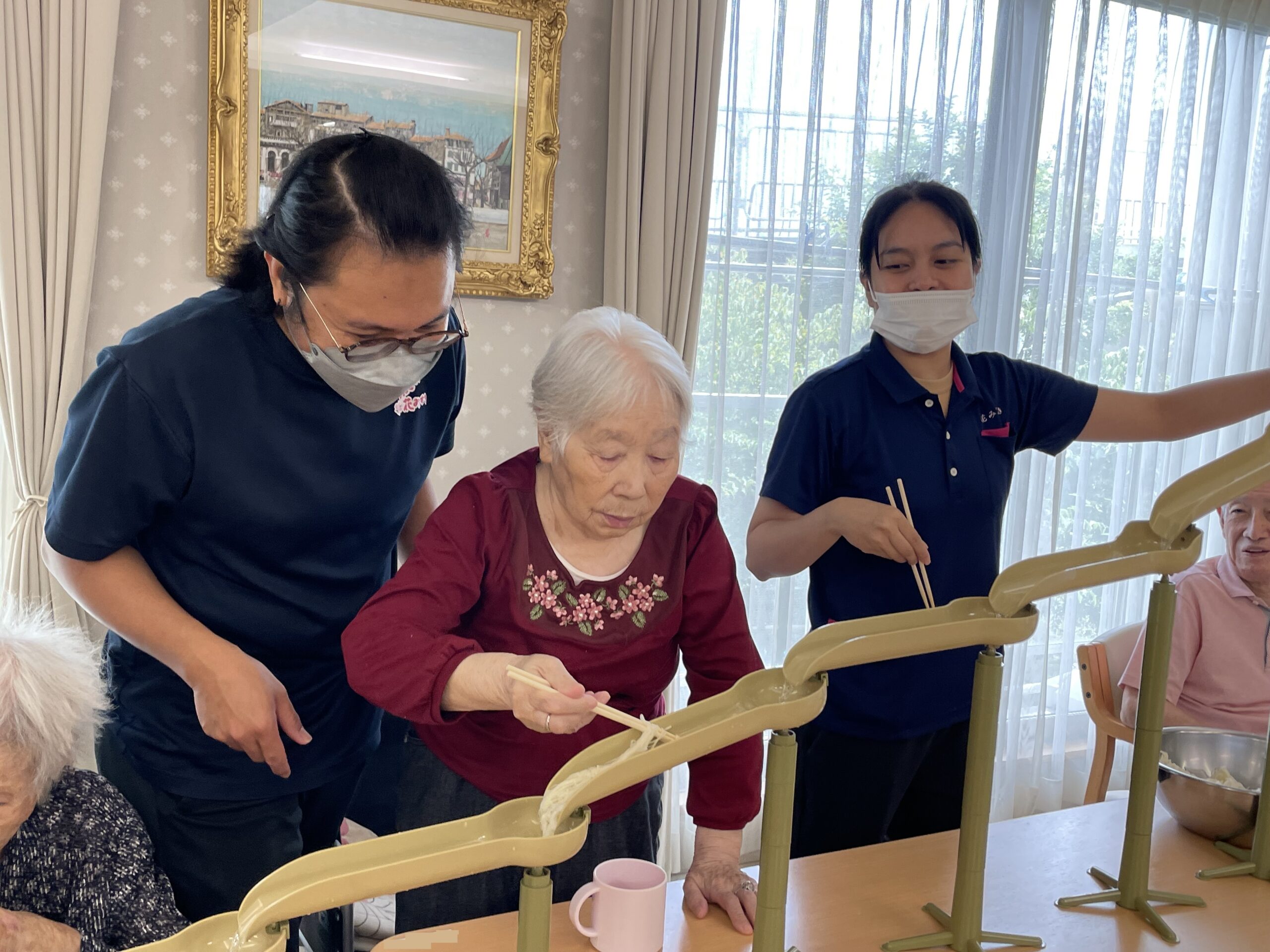 七夕レクリエーション☆流しそうめんを楽しもう②♪