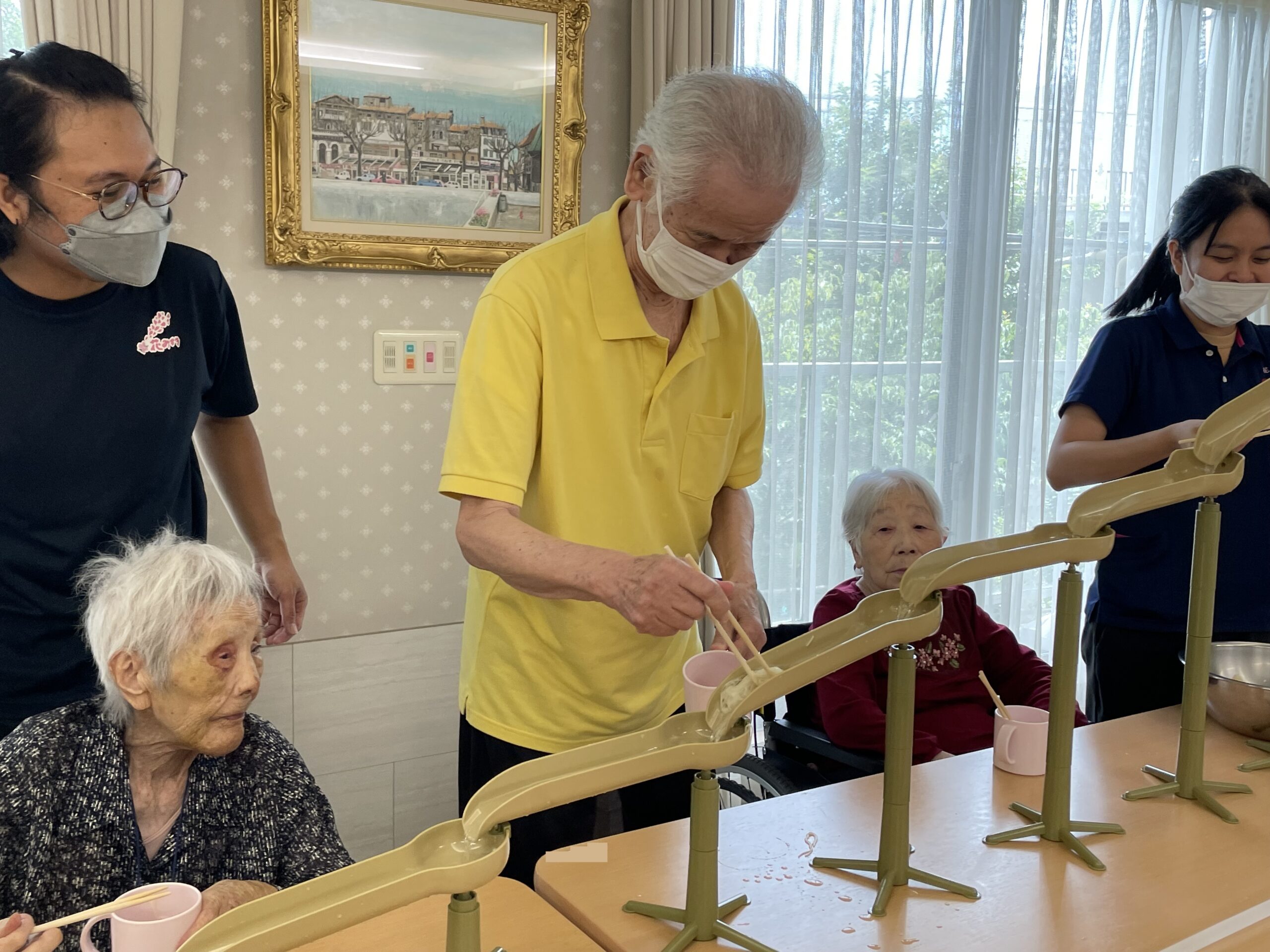 七夕レクリエーション☆流しそうめんを楽しもう③♪