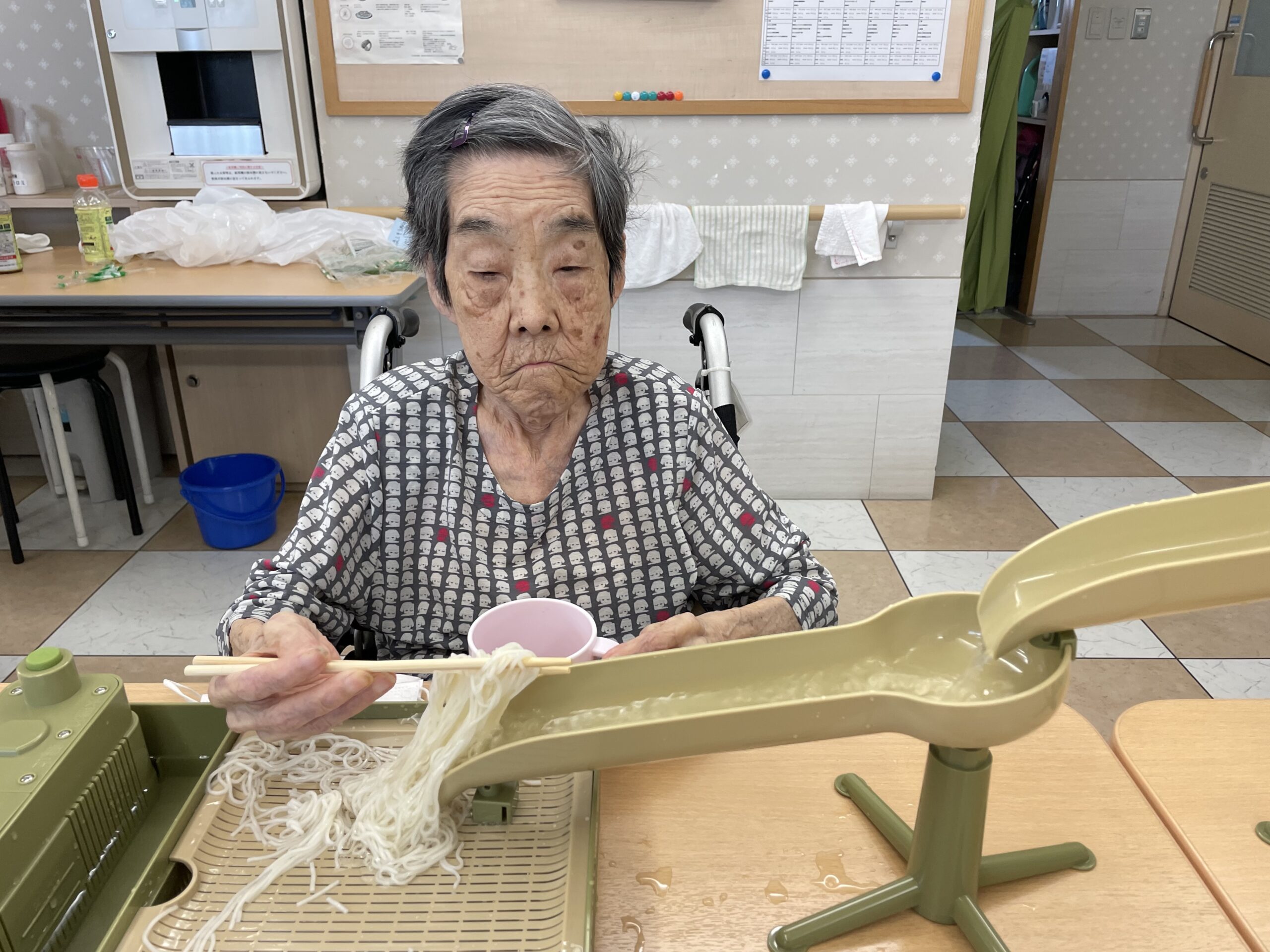 第3回目の今回は、前回ご紹介出来なかった『流しそうめんを楽しもう♪』レクリエーションにご参加いただいたご入居者様のお写真をご紹介致します☆
