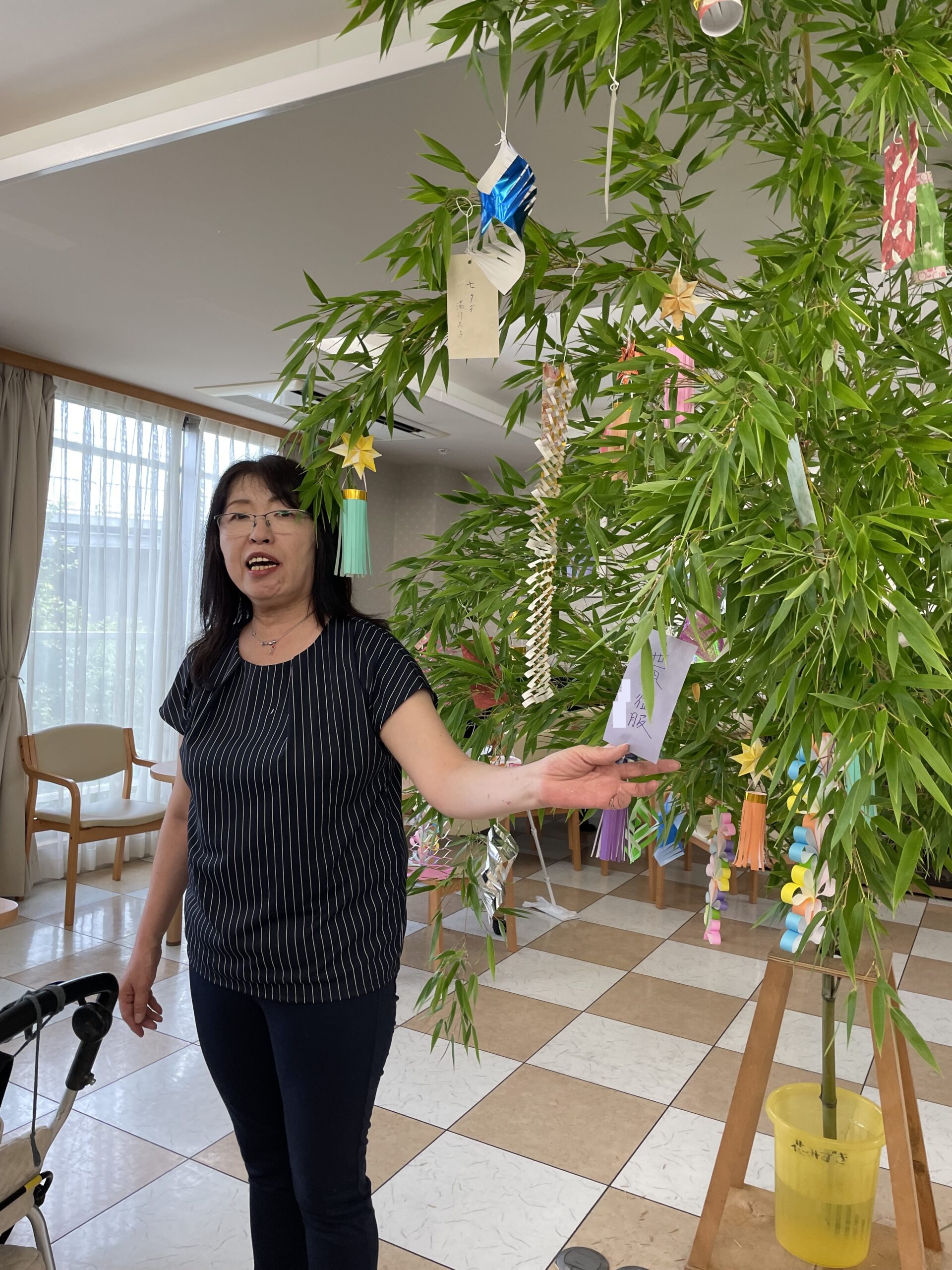 皆様が短冊に書かれた『願い事☆』をお伺いしながら、昔話に花が咲きました ♪ 笑い声が沢山聞こえてくる楽しい七夕レクリエーションの時間になりました☆