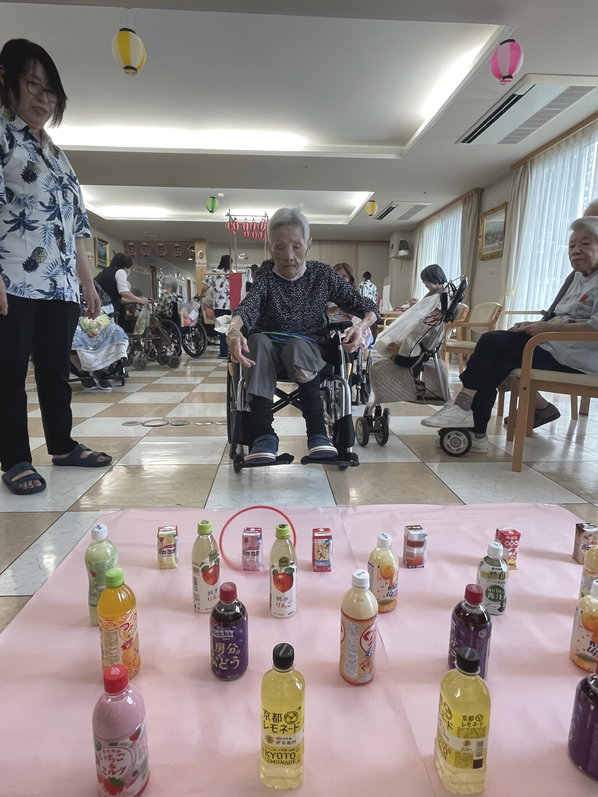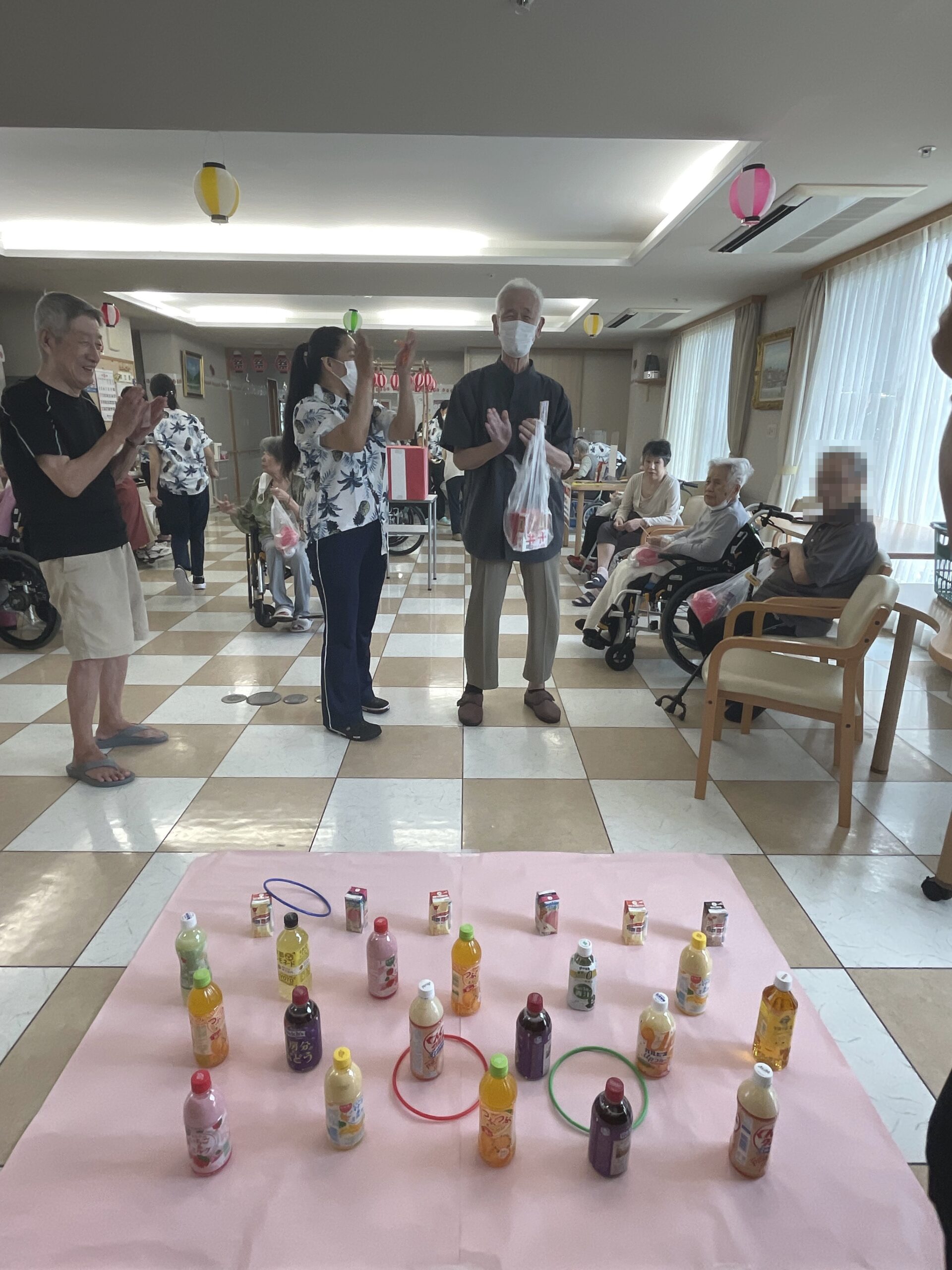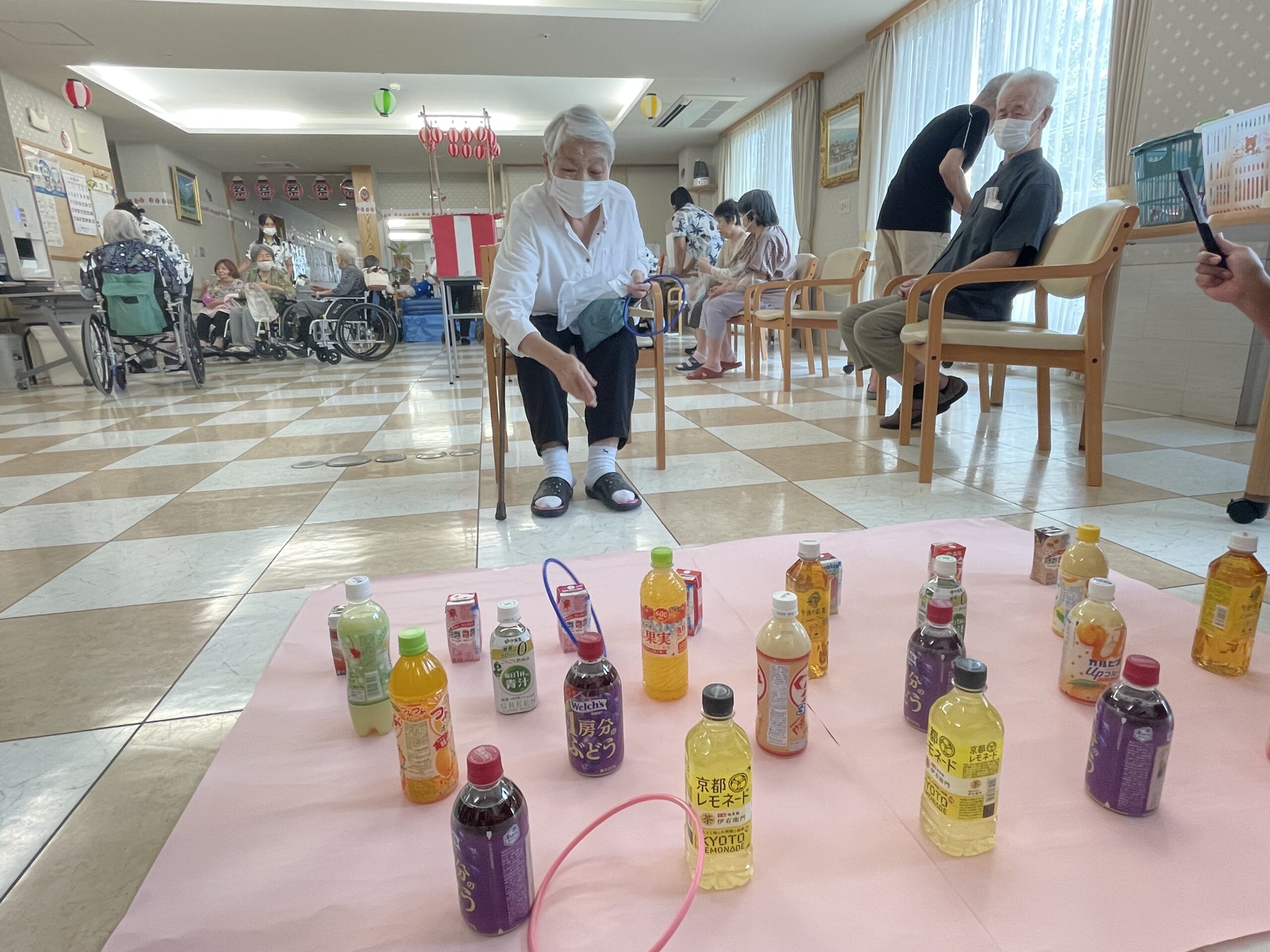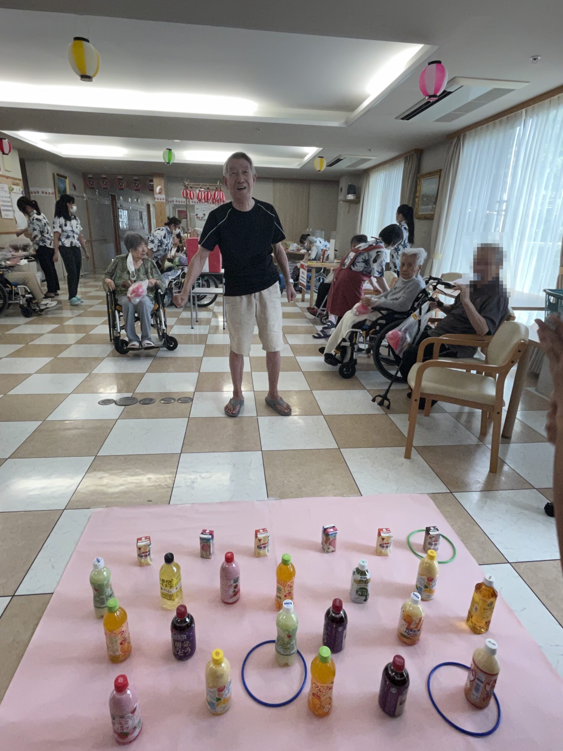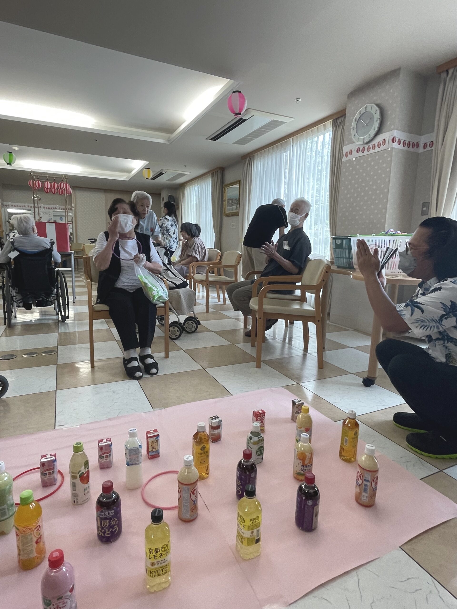 皆様の笑顔が沢山溢れた『ペットボトル輪投げ』になりました。次回のコンシェルジュ花みずき通信は…『千本お菓子くじ☆』に挑戦していただいた皆様のご様子をお届け致します。お楽しみに…☆