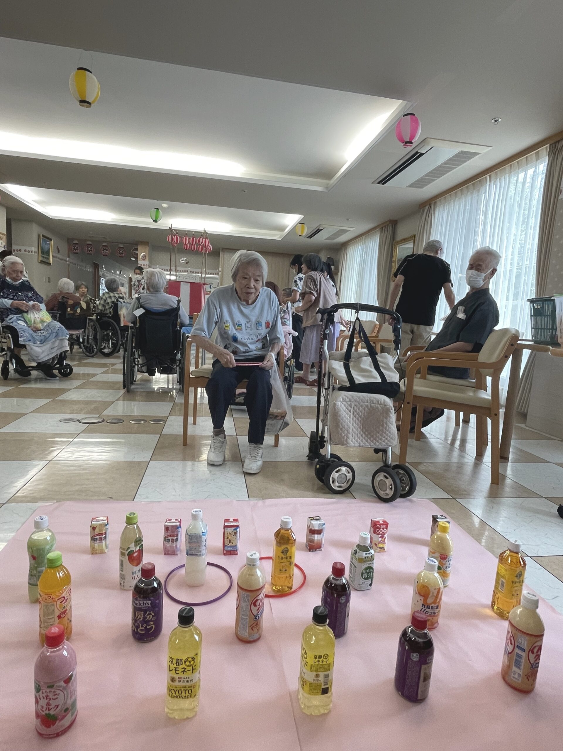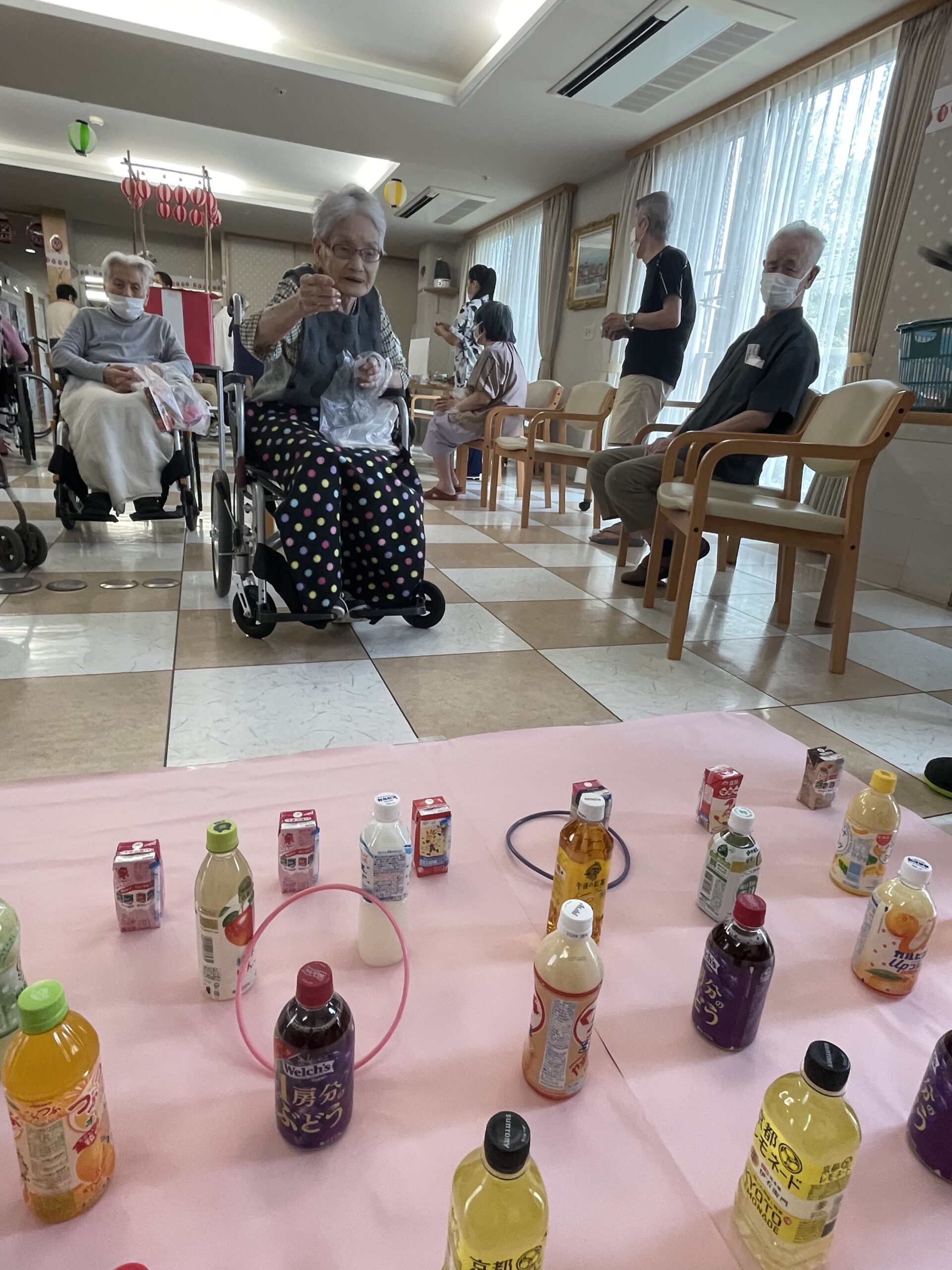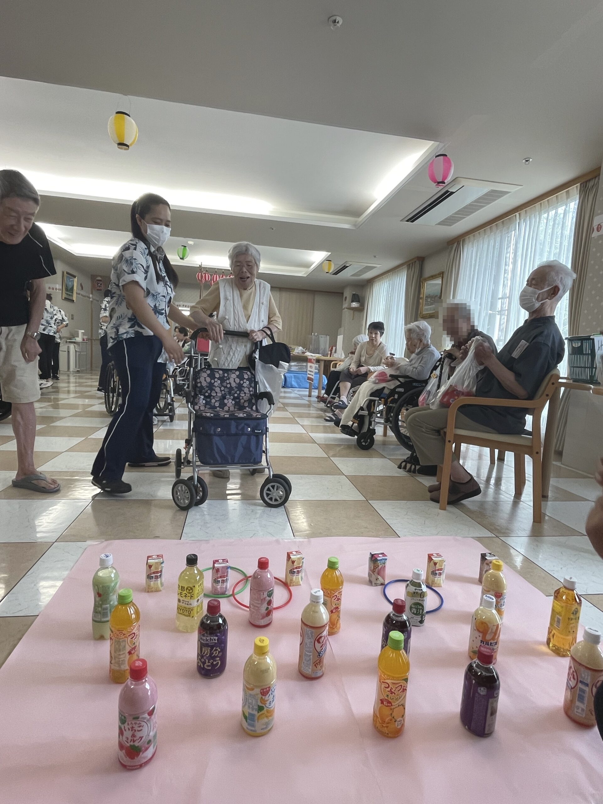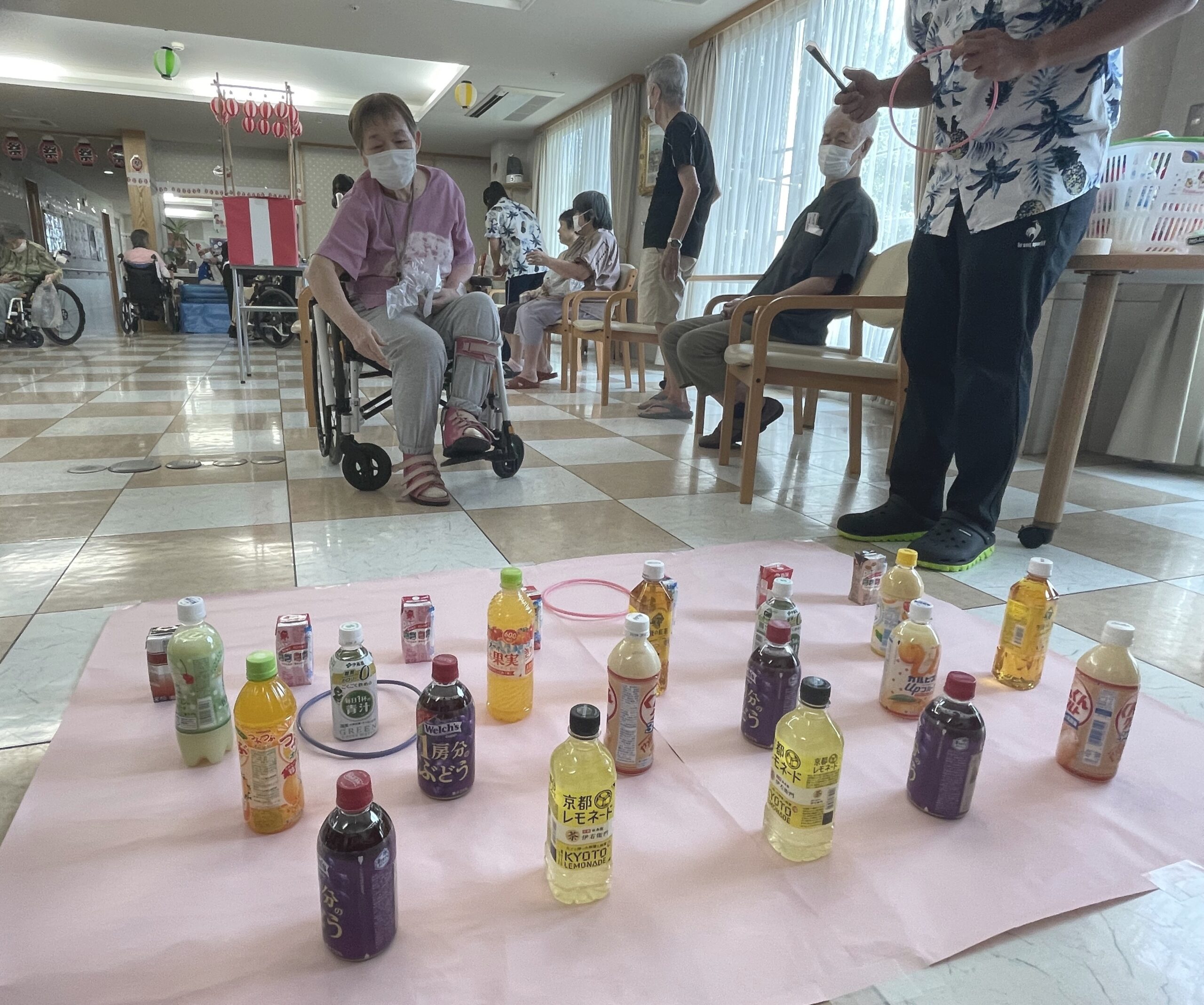 皆様の笑顔が沢山溢れた『ペットボトル輪投げ』になりました。次回のコンシェルジュ花みずき通信は…『千本お菓子くじ☆』に挑戦していただいた皆様のご様子をお届け致します。お楽しみに…☆