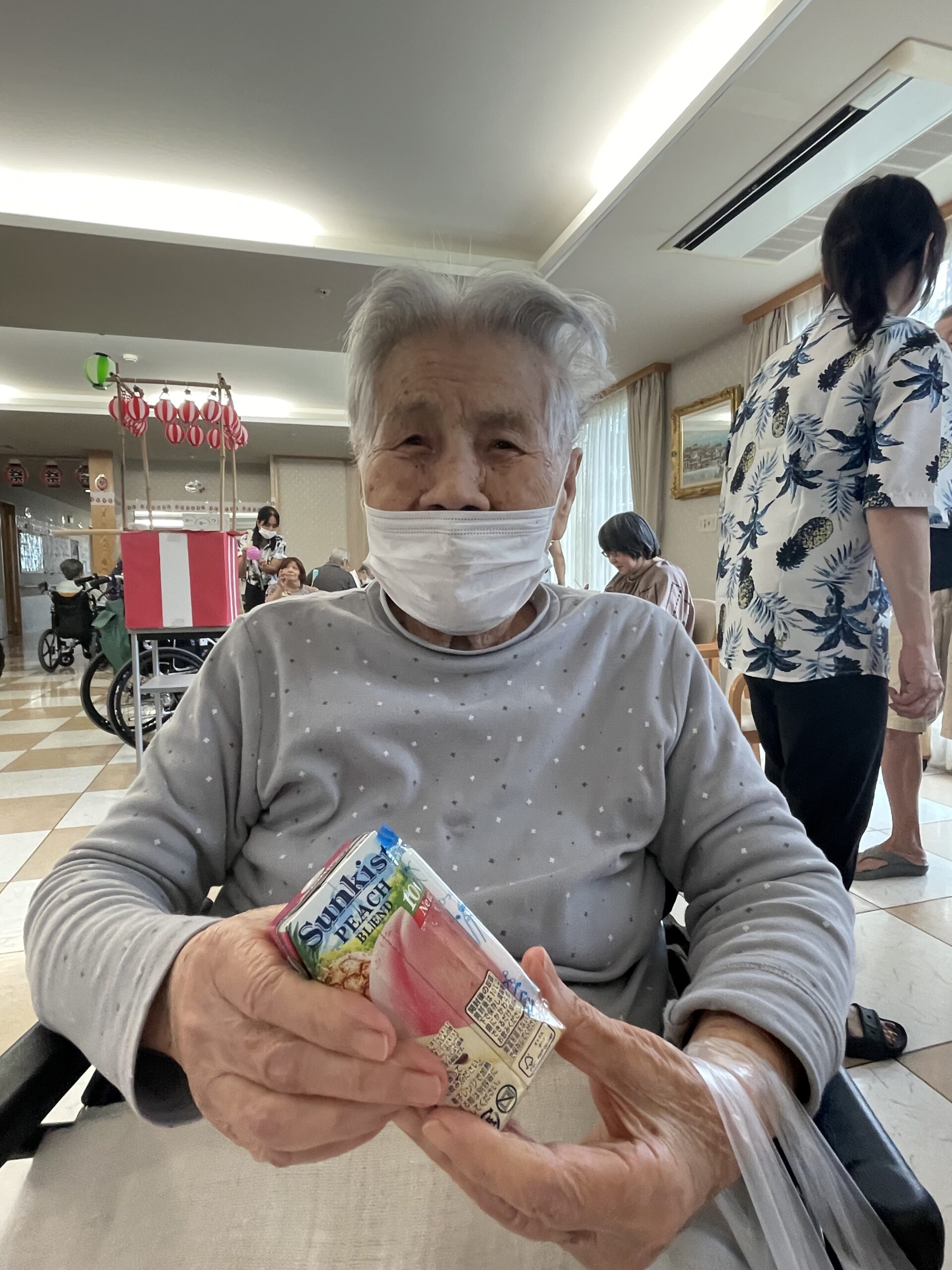 「私投げられないから、これでも良いかしら?」と届く範囲内からお好きなジュースを選んでいただきました☆ 「あれが良いかしら?」とどのジュースにするか楽しそうに選んでいらっしゃいました ♪
