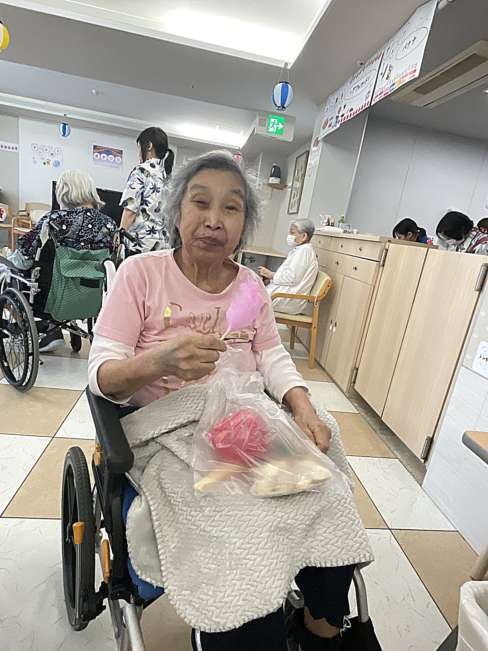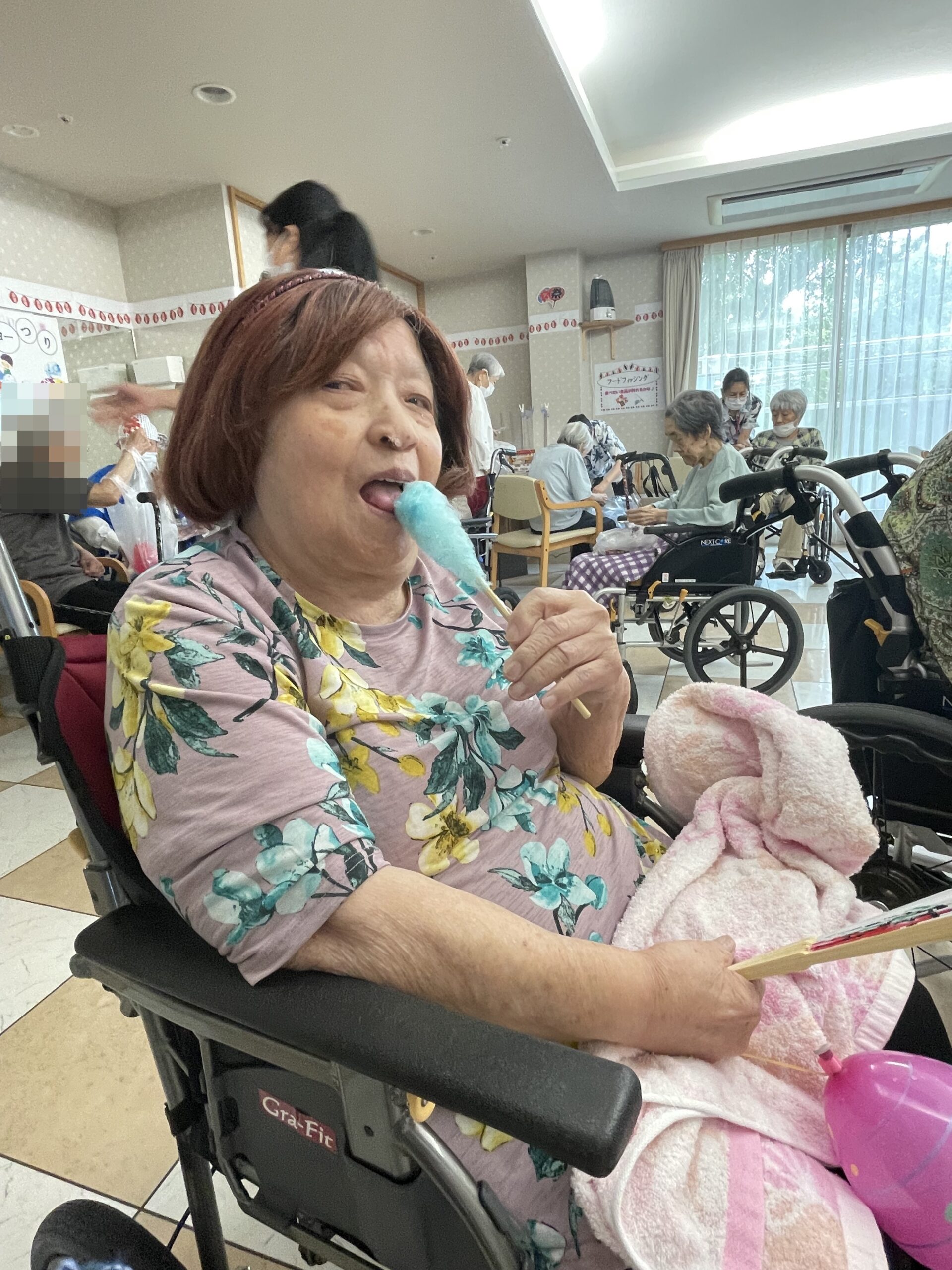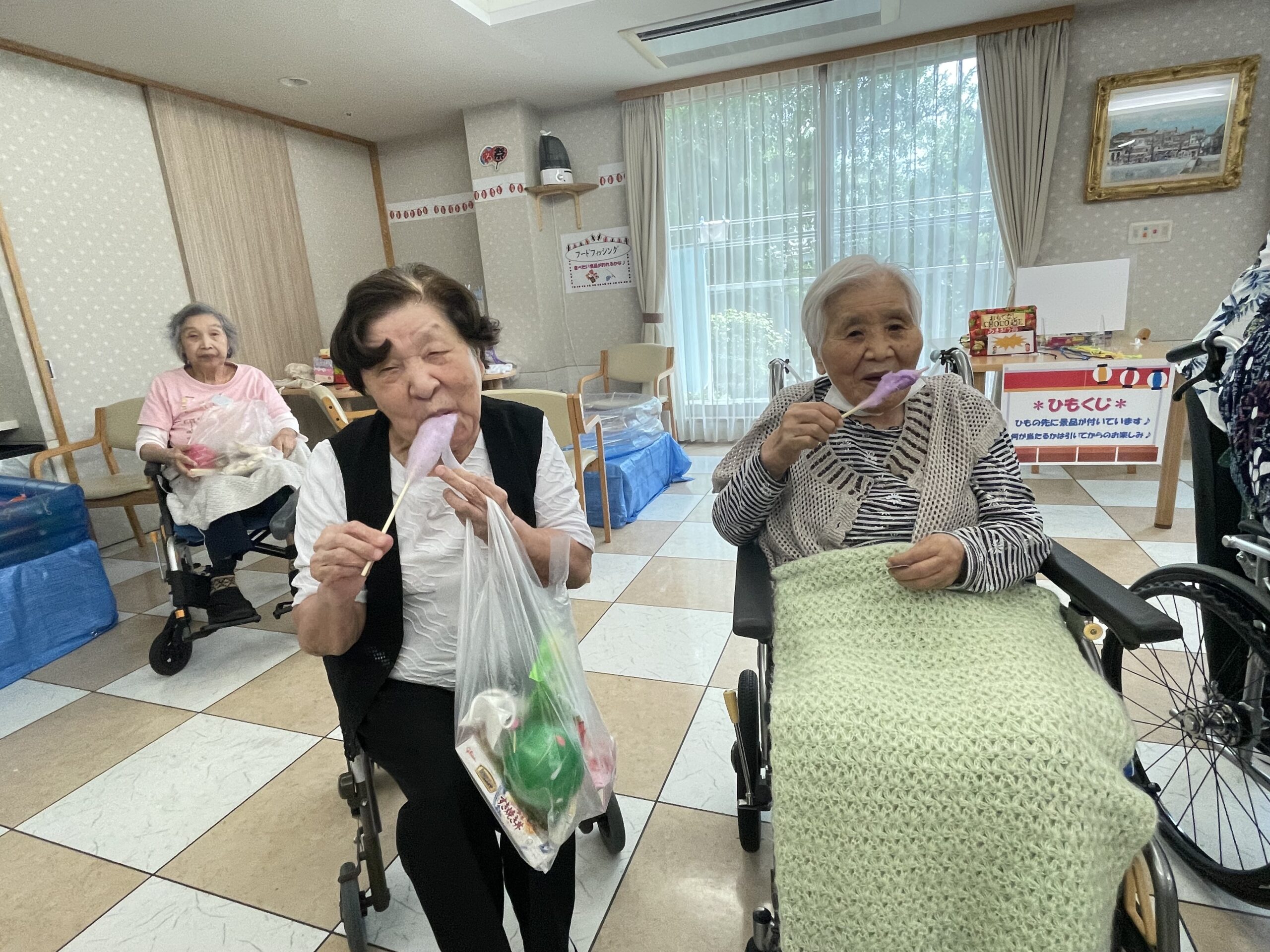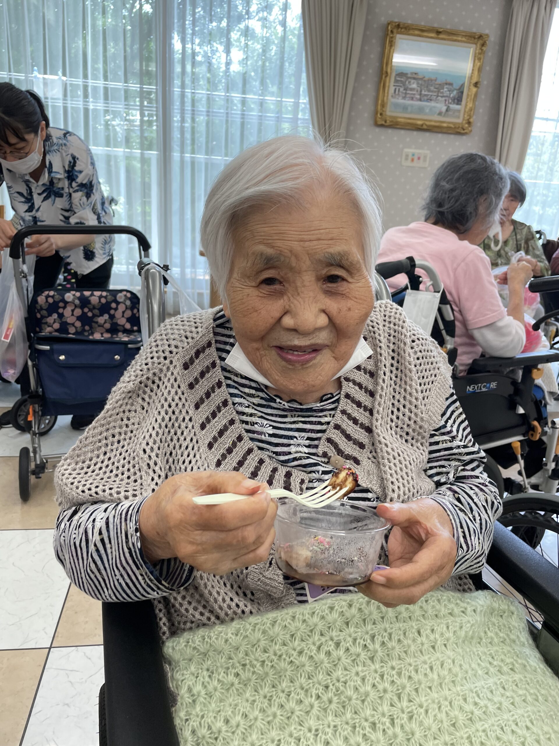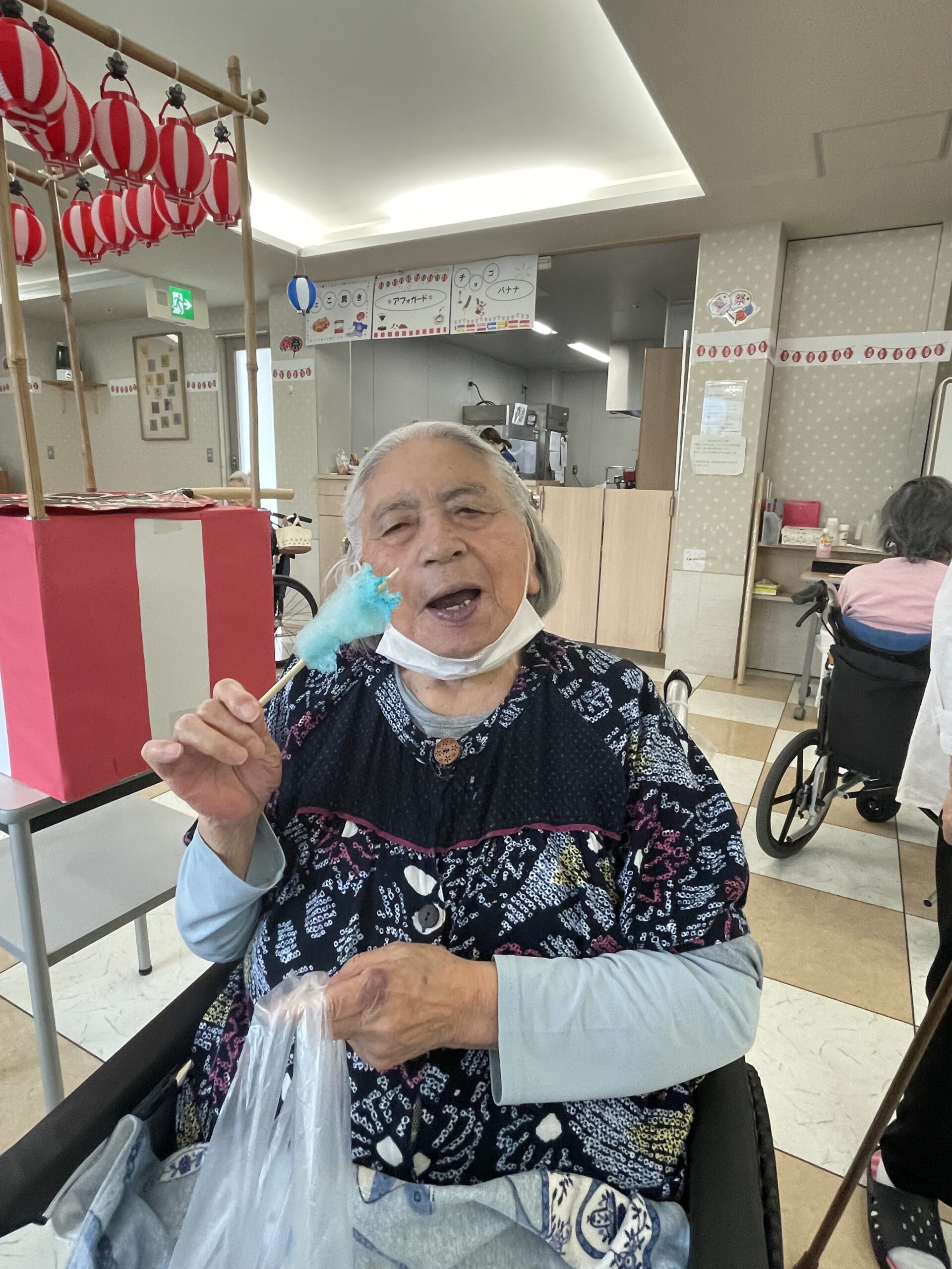次は… わたがしをお召し上がりいただいているご入居者様のご様子をお届け致します。