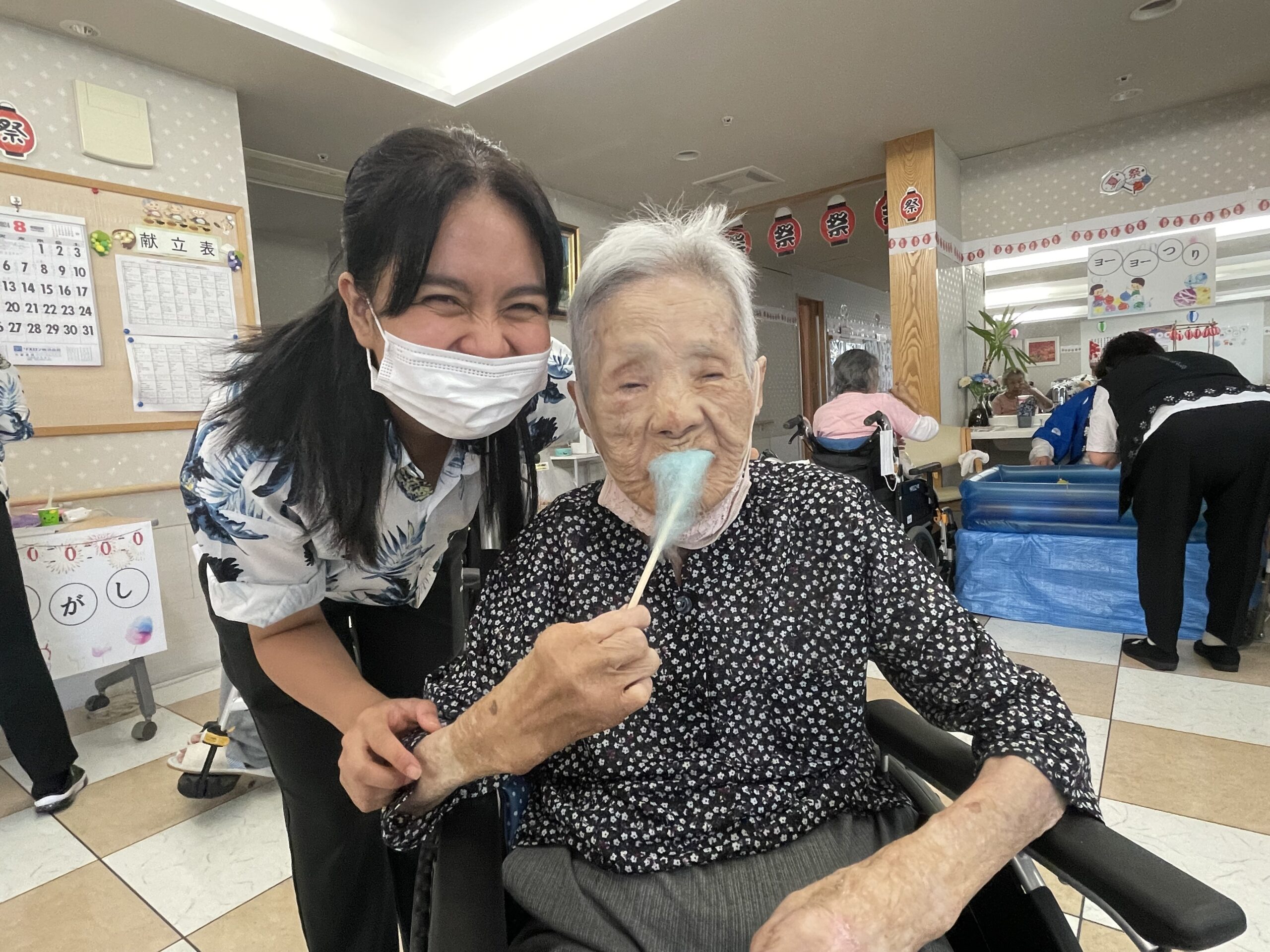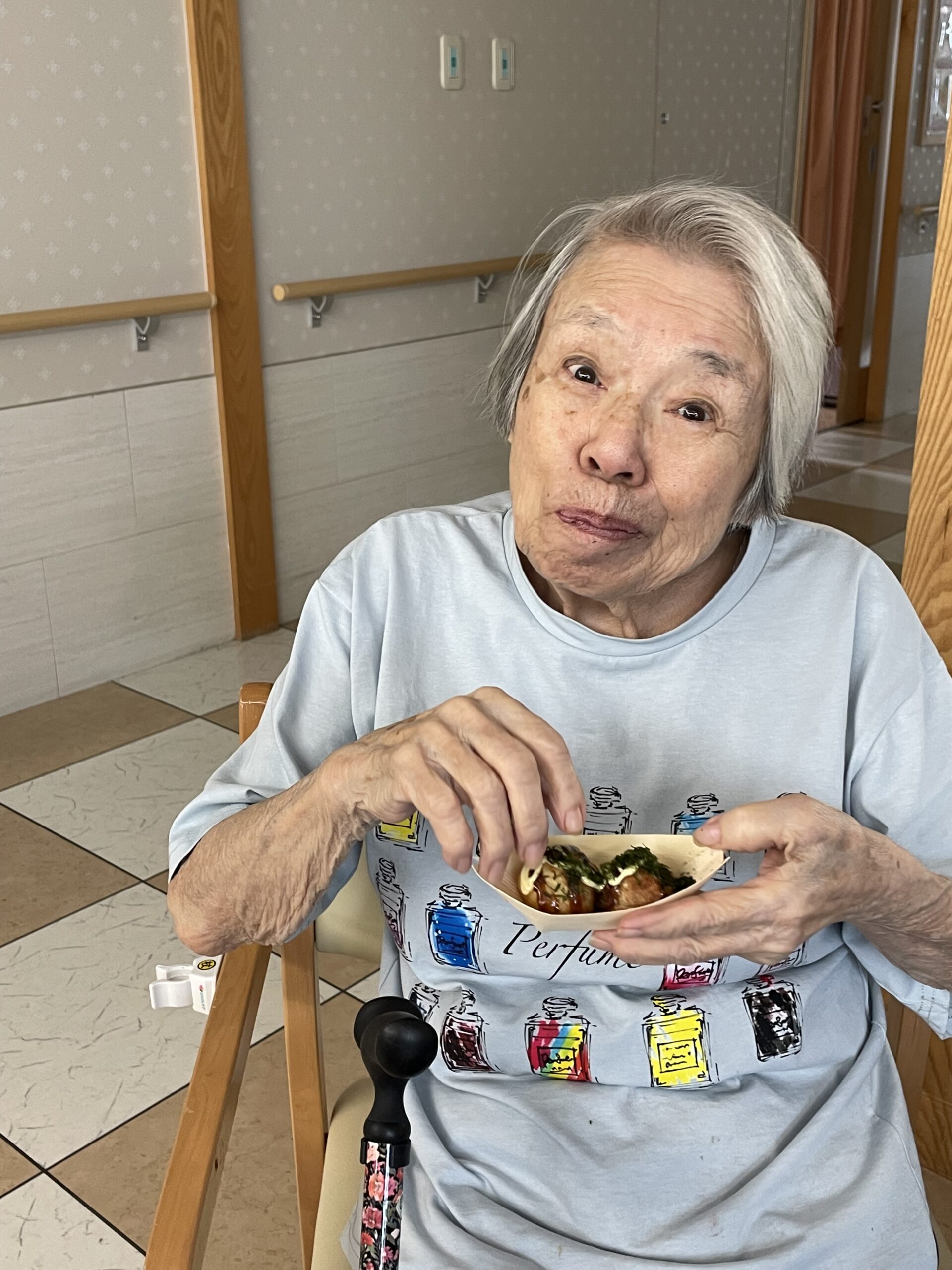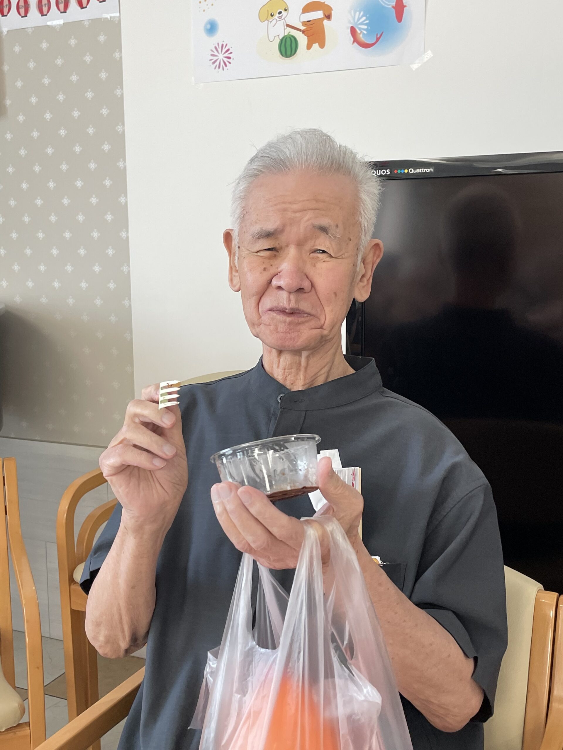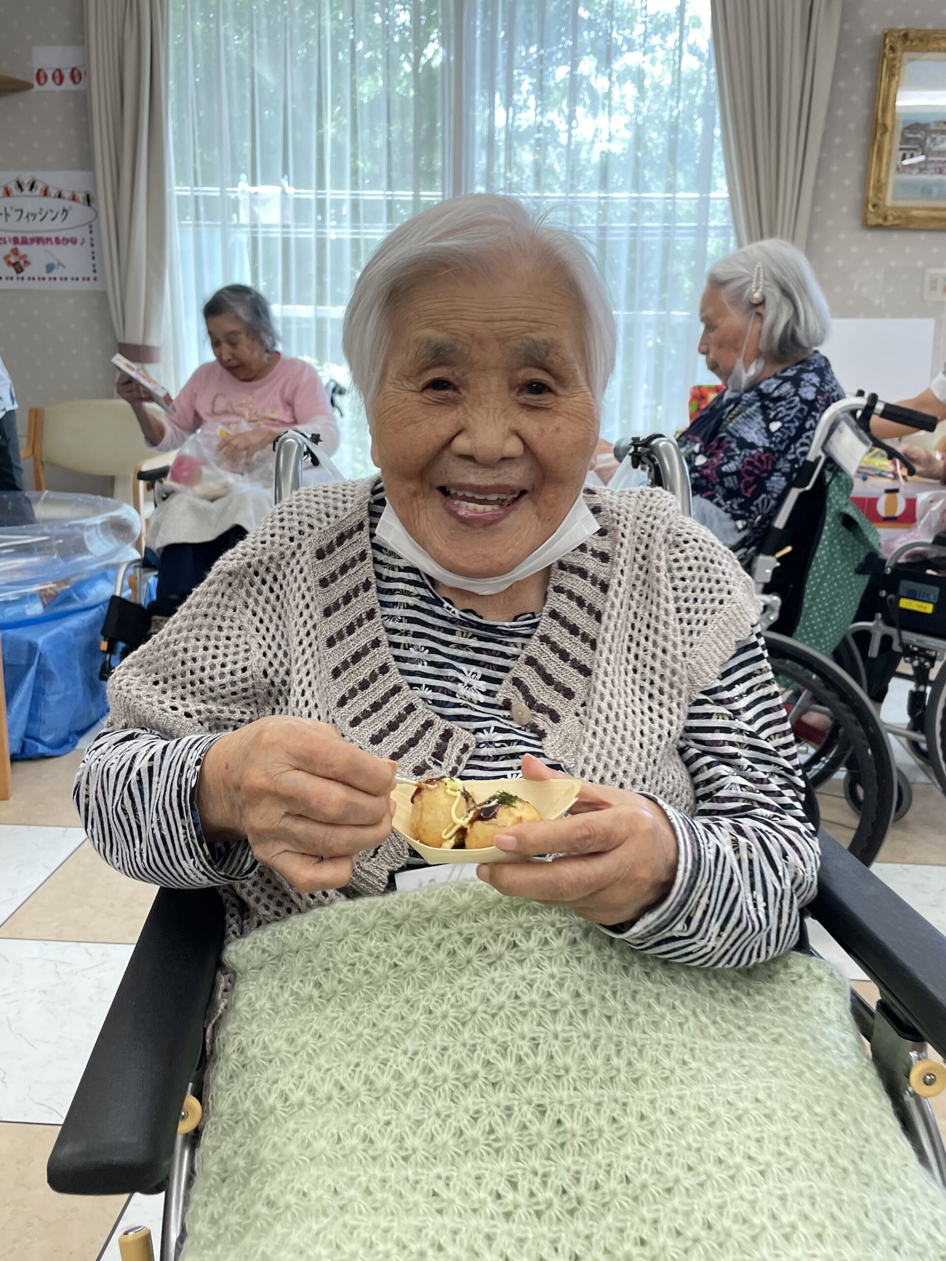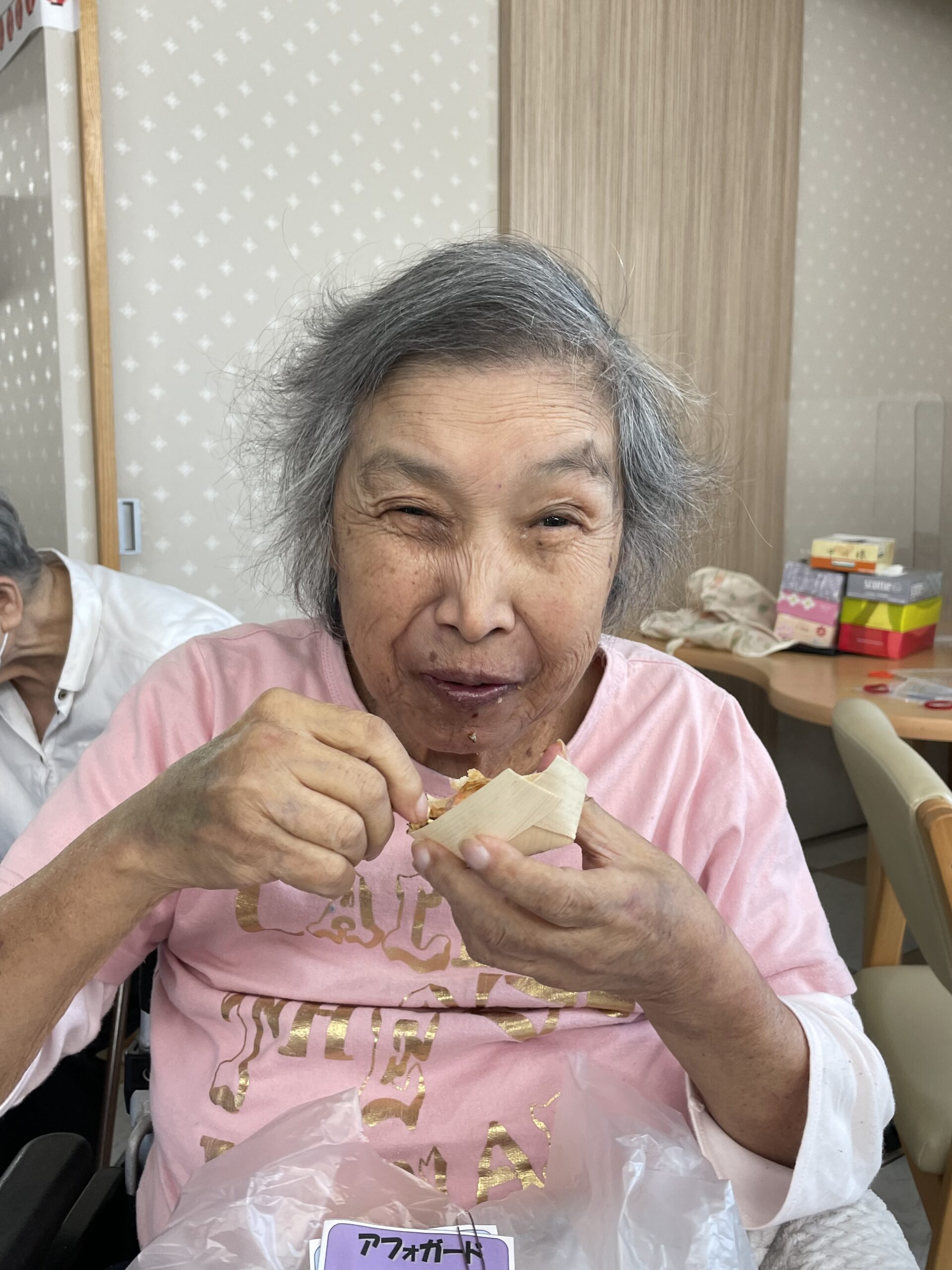 次は… わたがしをお召し上がりいただいているご入居者様のご様子をお届け致します。