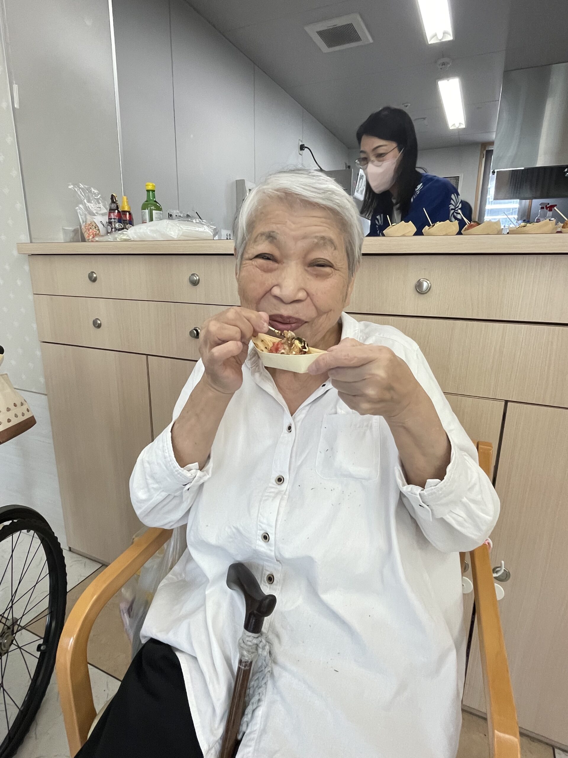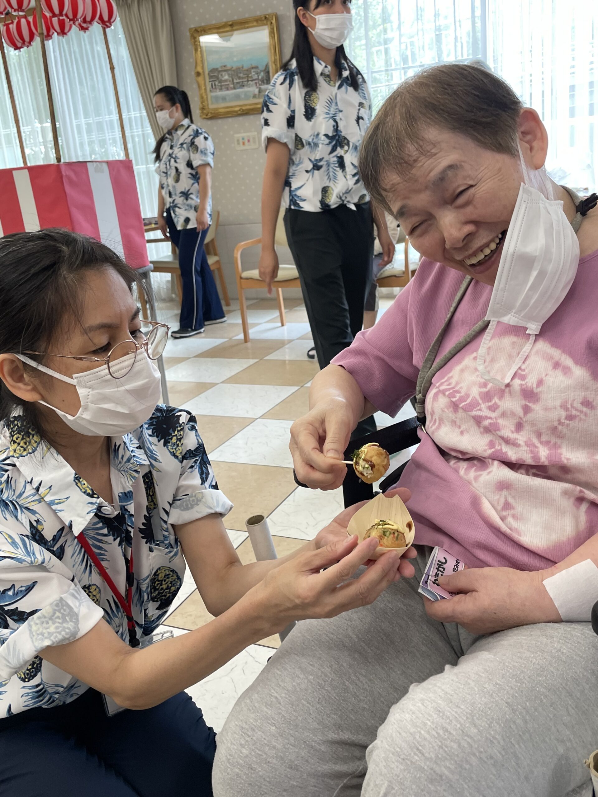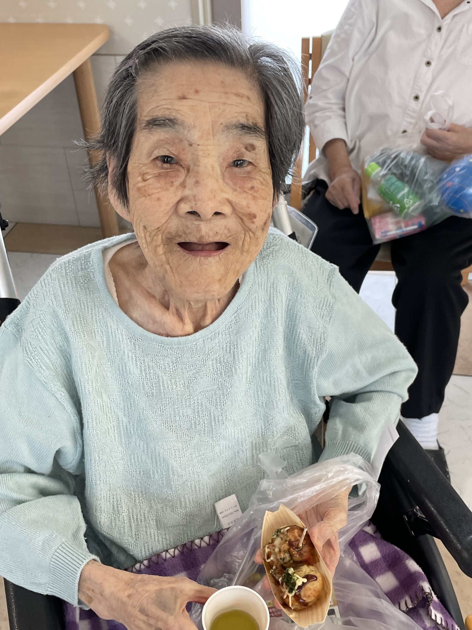 「手伝ってもらってたこ焼きいただきます!」と嬉しそうにおっしゃってくださいました☆ 本当に素敵な笑顔ですね ♪