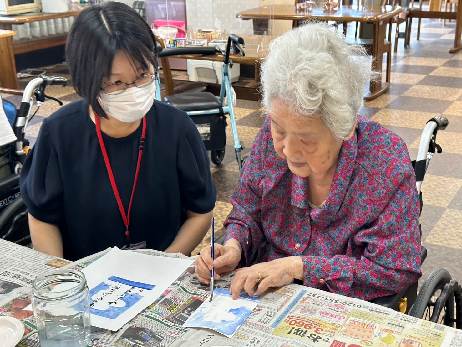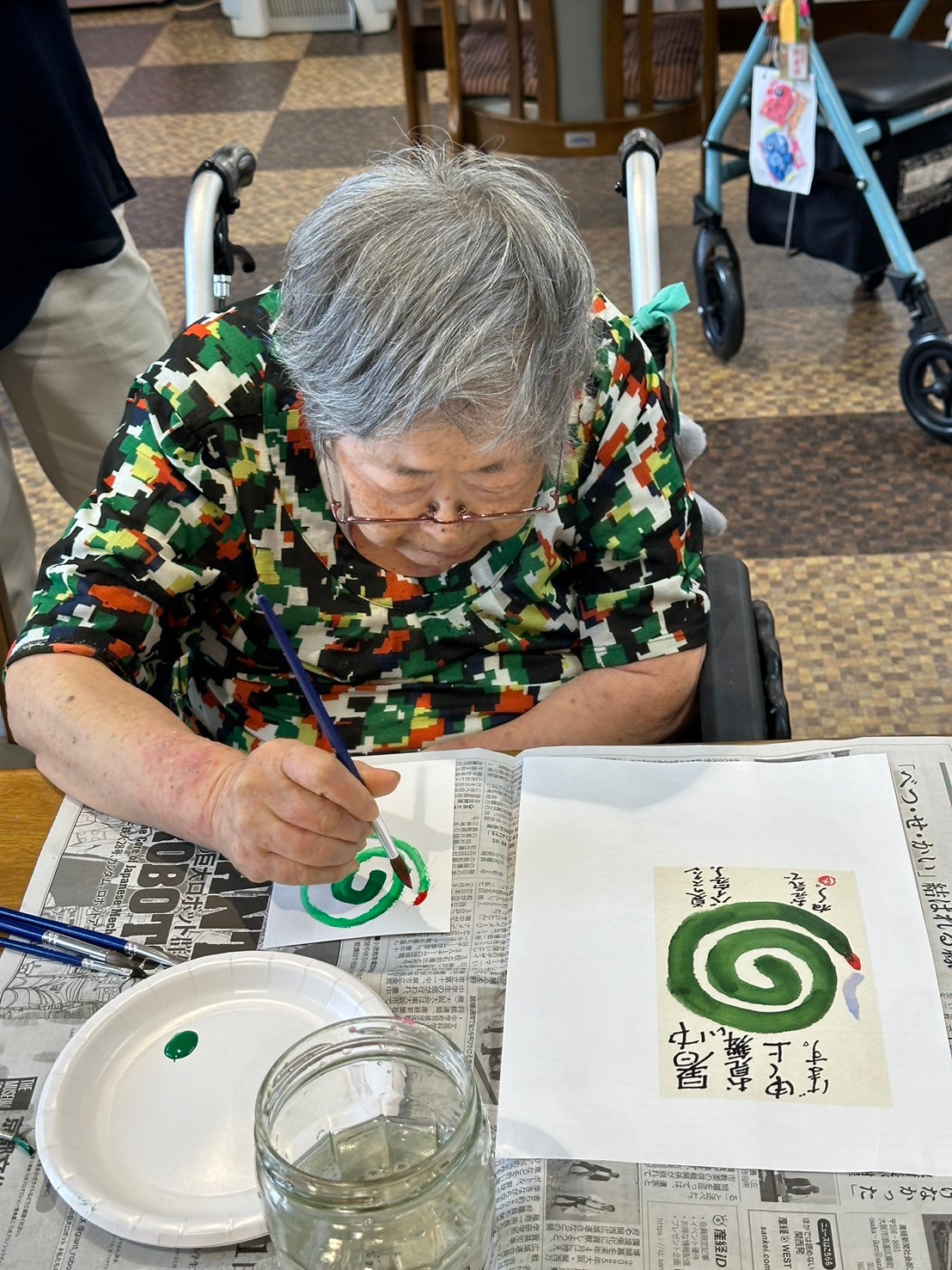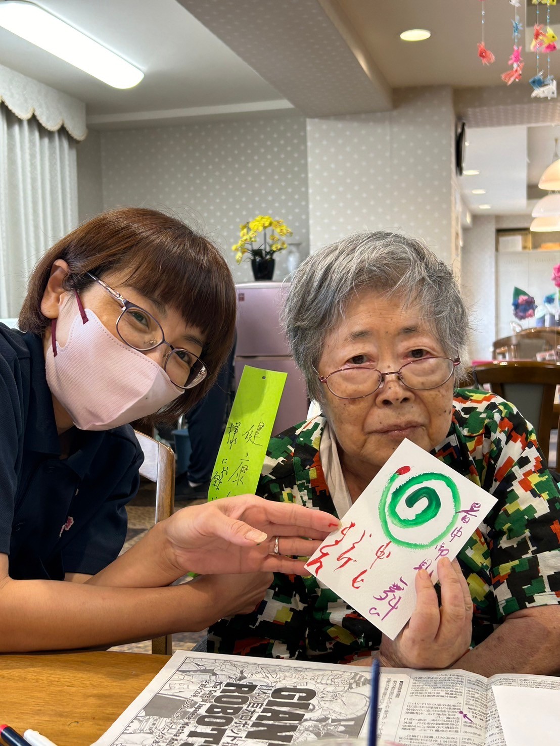「描かれへんわ~!」とおっしゃっていたご入居者様には、蚊取り線香の先の火のついているところのイラストを描いていただきました☆