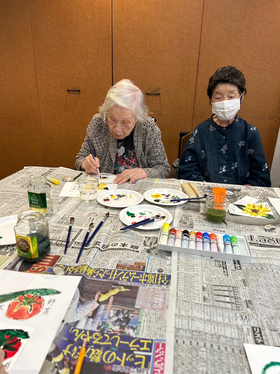 お隣の方とワイワイお話しながら絵手紙がどんどん出来上がっていきます。どんな絵手紙作品が完成するのでしょうか…!