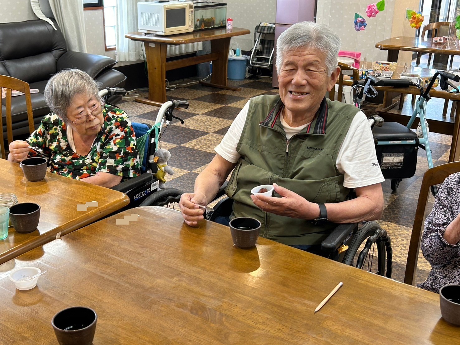 夏にぴったりな「水ようかん」と煎茶でお茶会です ♪ 「美味しいわ~」と嬉しそうにおっしゃってくださいました。