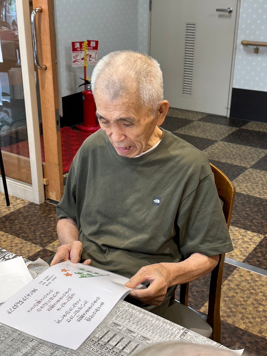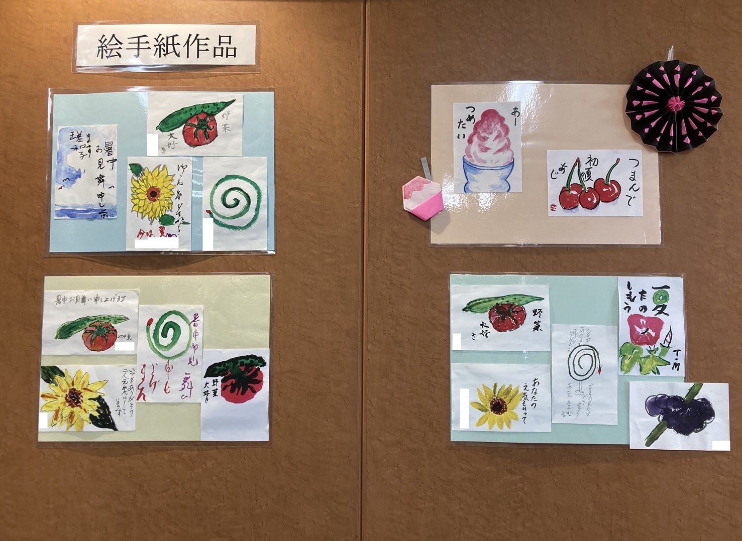 当日ご参加いただけなかったご入居者様の中には、お部屋でお描きになった絵手紙を受付まで後日持ってきてくださった方もいらっしゃいました。