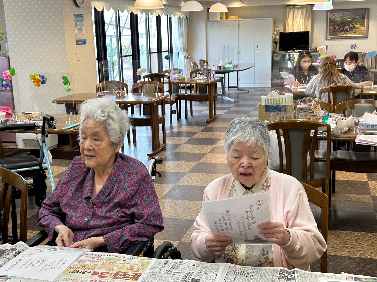 第2回目の今回は… 絵手紙レクリエーションの後に皆様と一緒に歌を唄ったご様子とお茶会の様子をお届け致します。