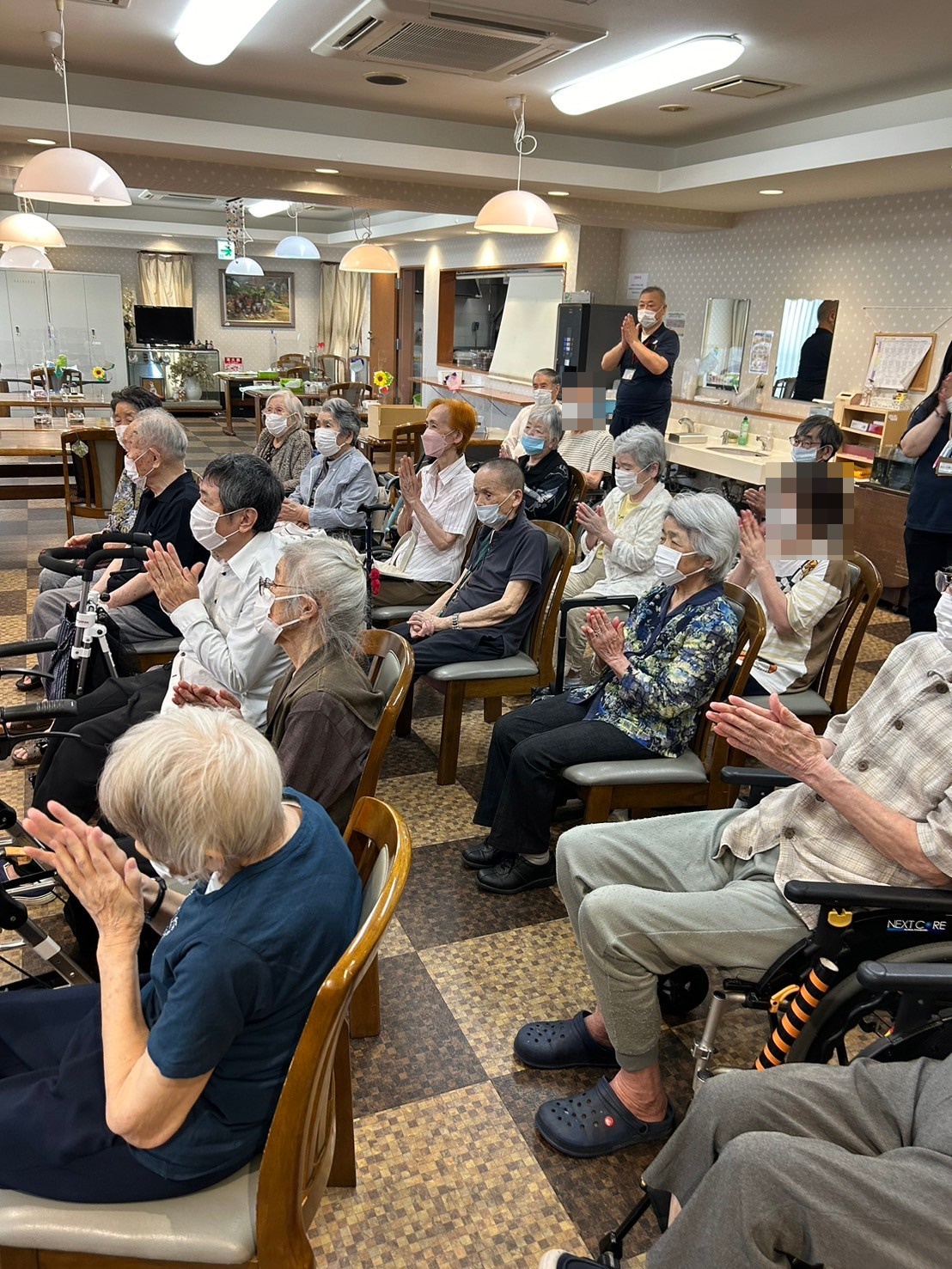 ご披露が終わった後、皆様からは温かい拍手が贈られていました ♪ 「面白かったわ~!」と感想を楽しそうにお話になっていたご入居者様たちです。
