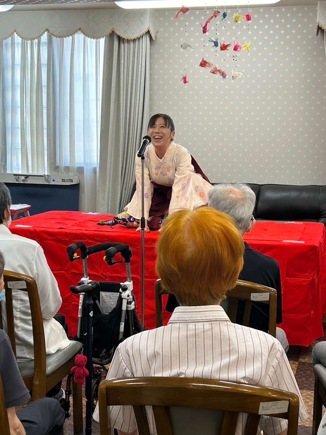 7月下旬にレクリエーションとして女性落語家 月亭八織様をお招きし「落語を楽しむ会 ♪ 」を開催致しました。