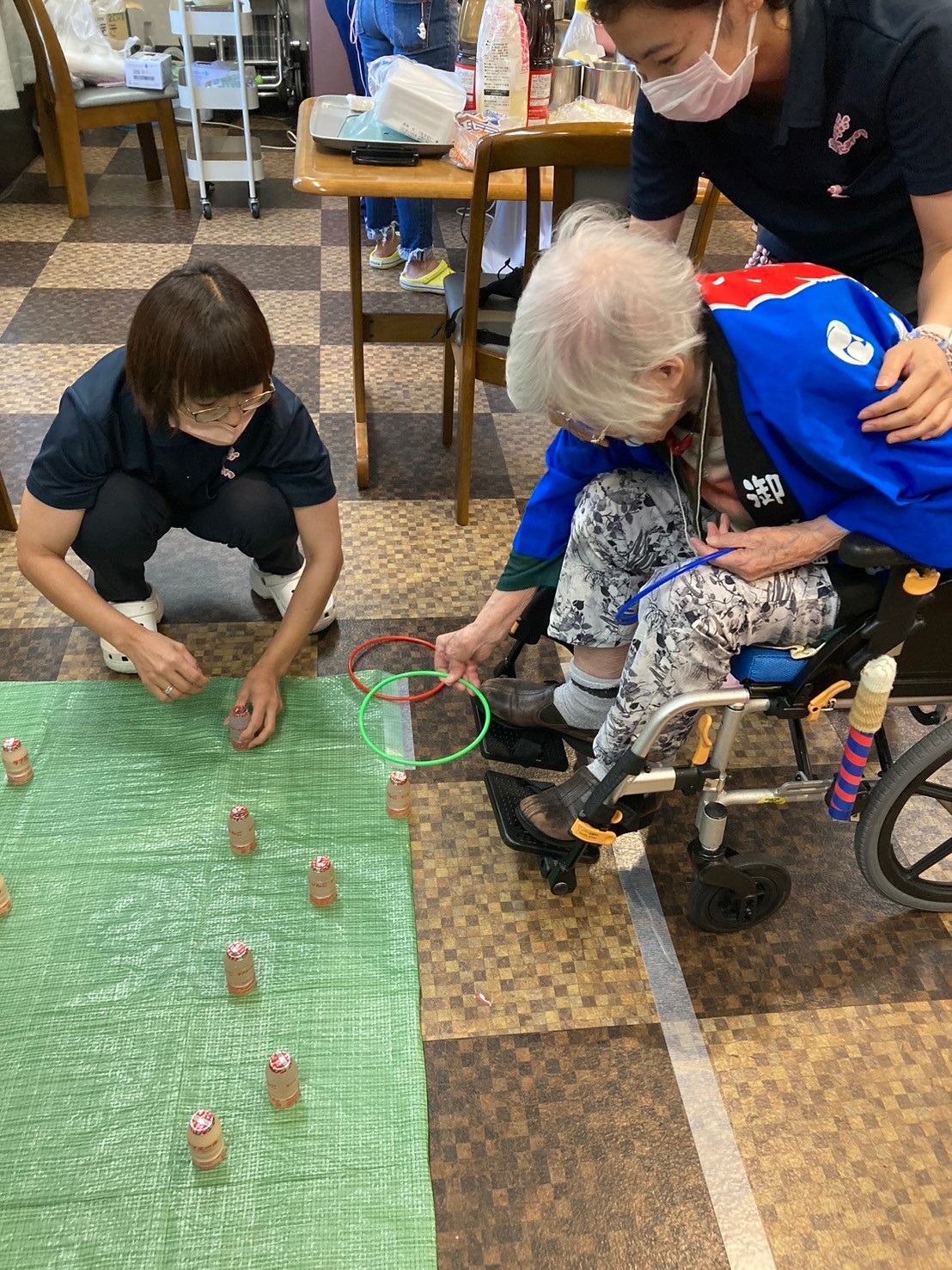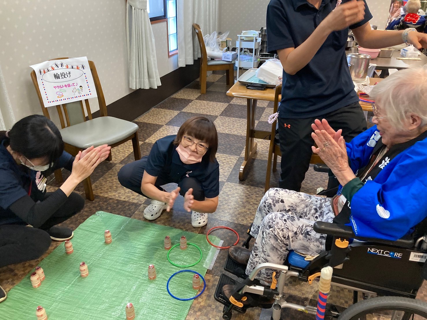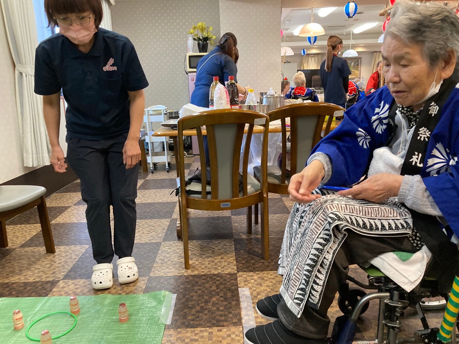 『ヨーヨー釣り』『スパーボールすくい』『輪投げ』に挑戦していただいた皆様のご様子をお届け致しました。皆様「子供時代に帰ったみたいやわ~!!」と真剣に挑戦してくださっていました。「楽しいな~ ♪ 」とにこにこ笑顔でお喜びくださいました☆