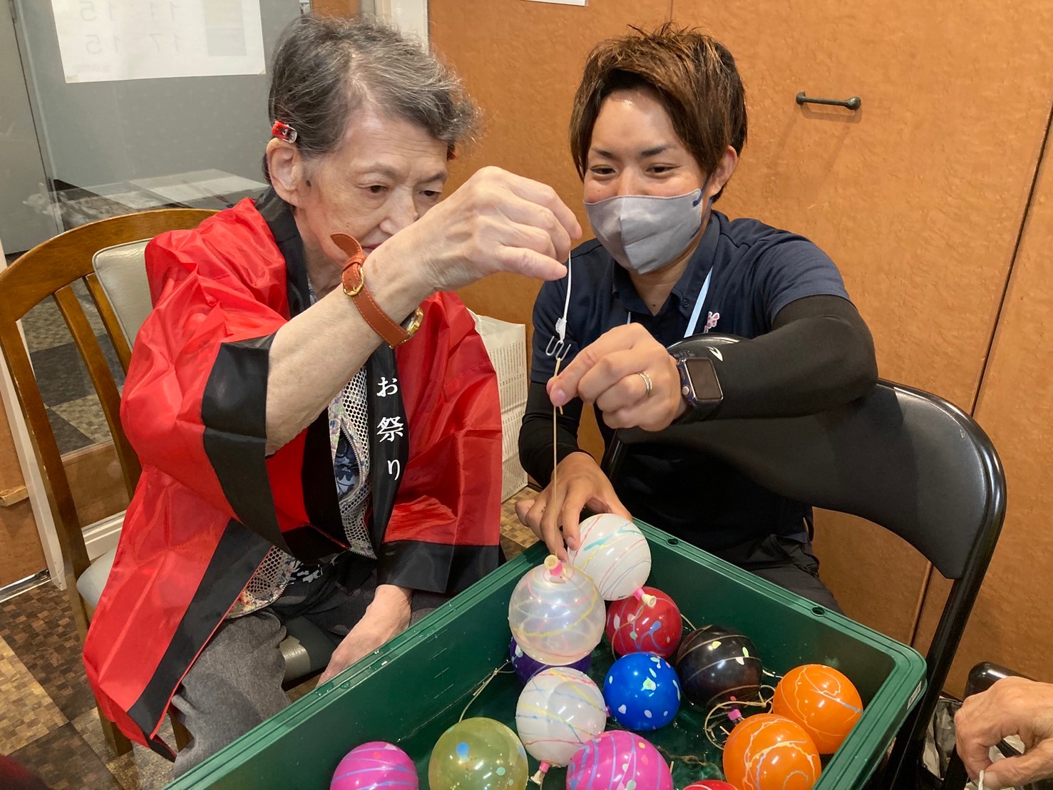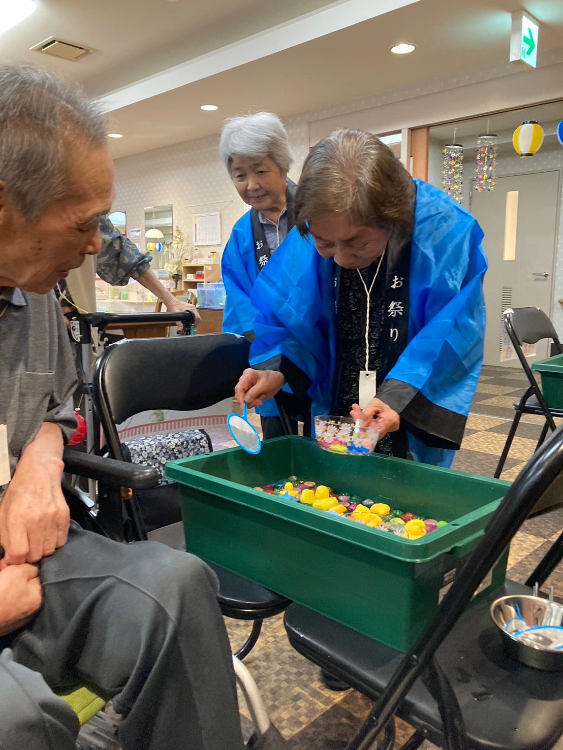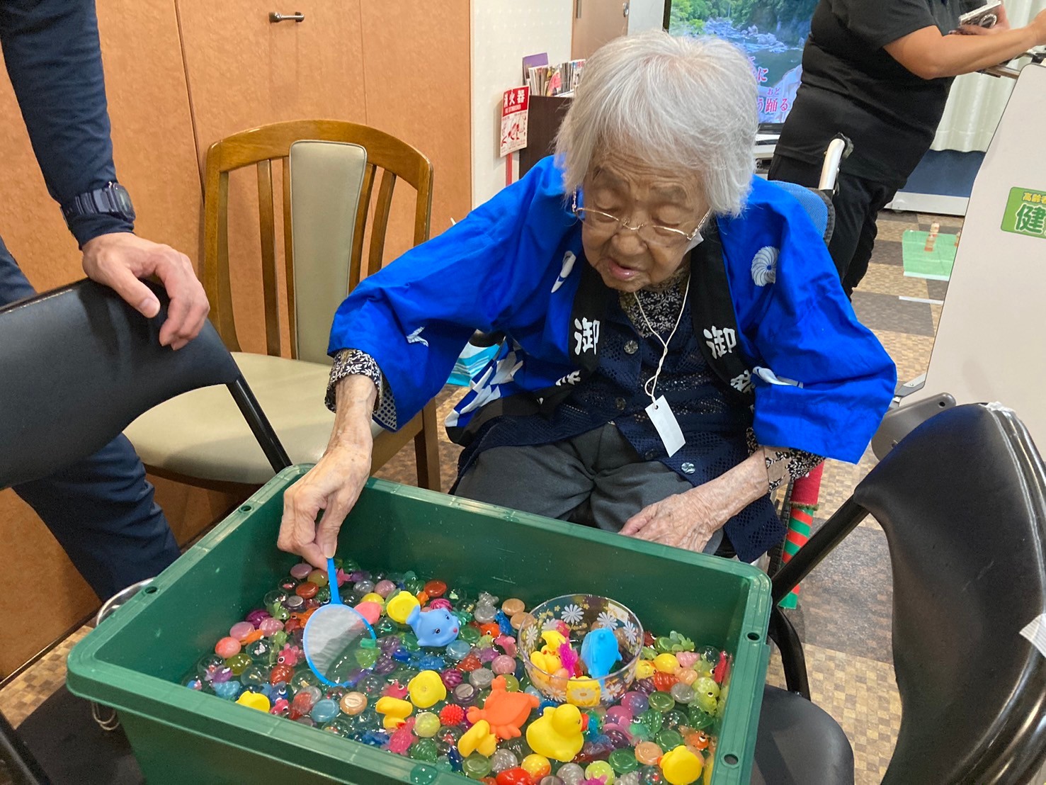 『ヨーヨー釣り』『スパーボールすくい』『輪投げ』に挑戦していただいた皆様のご様子をお届け致しました。皆様「子供時代に帰ったみたいやわ~!!」と真剣に挑戦してくださっていました。「楽しいな~ ♪ 」とにこにこ笑顔でお喜びくださいました☆