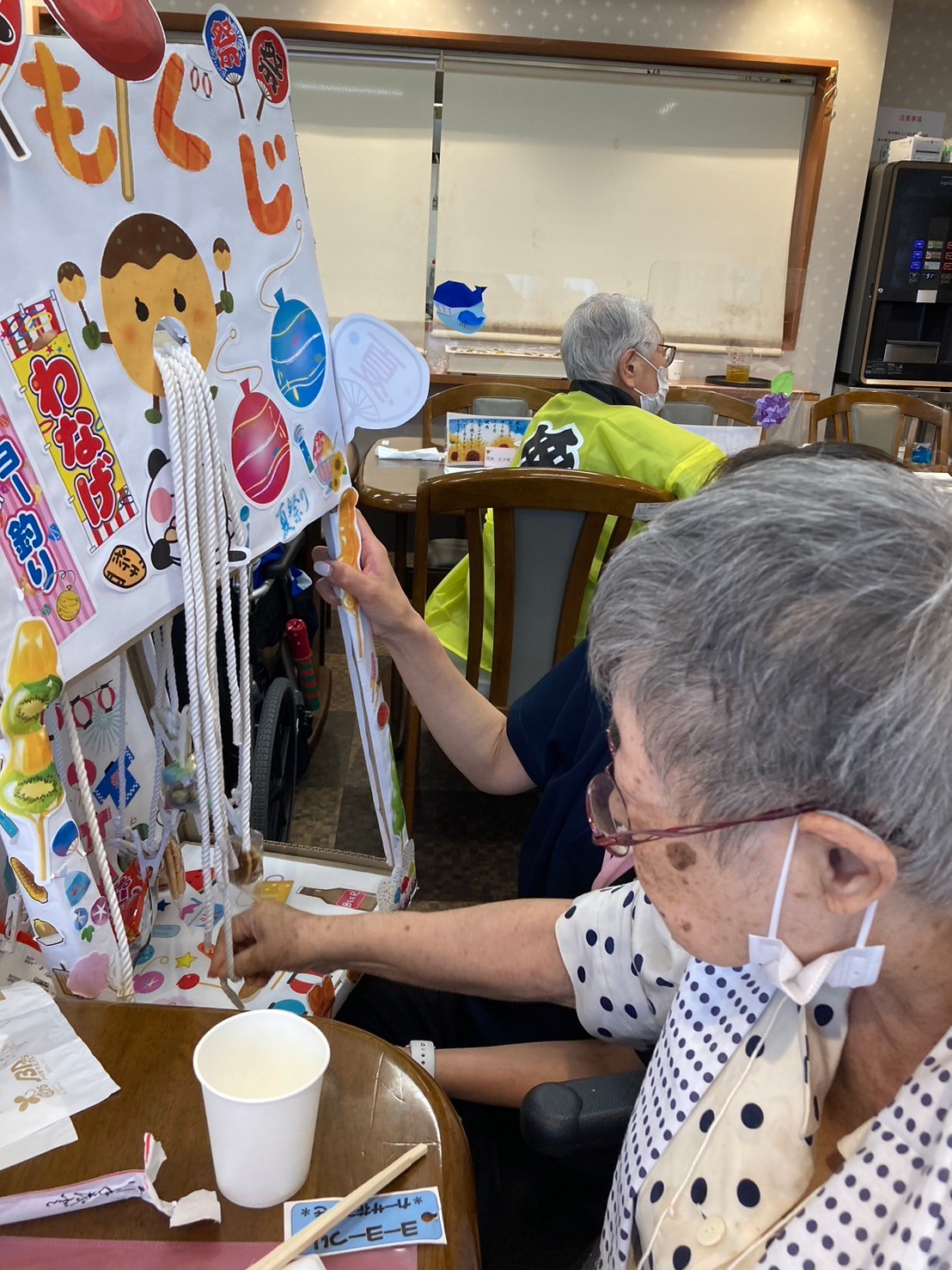 「どれが釣れるかしら…?」と紐を引っ張るお力もお優しいこちらのご入居者様です ♪
