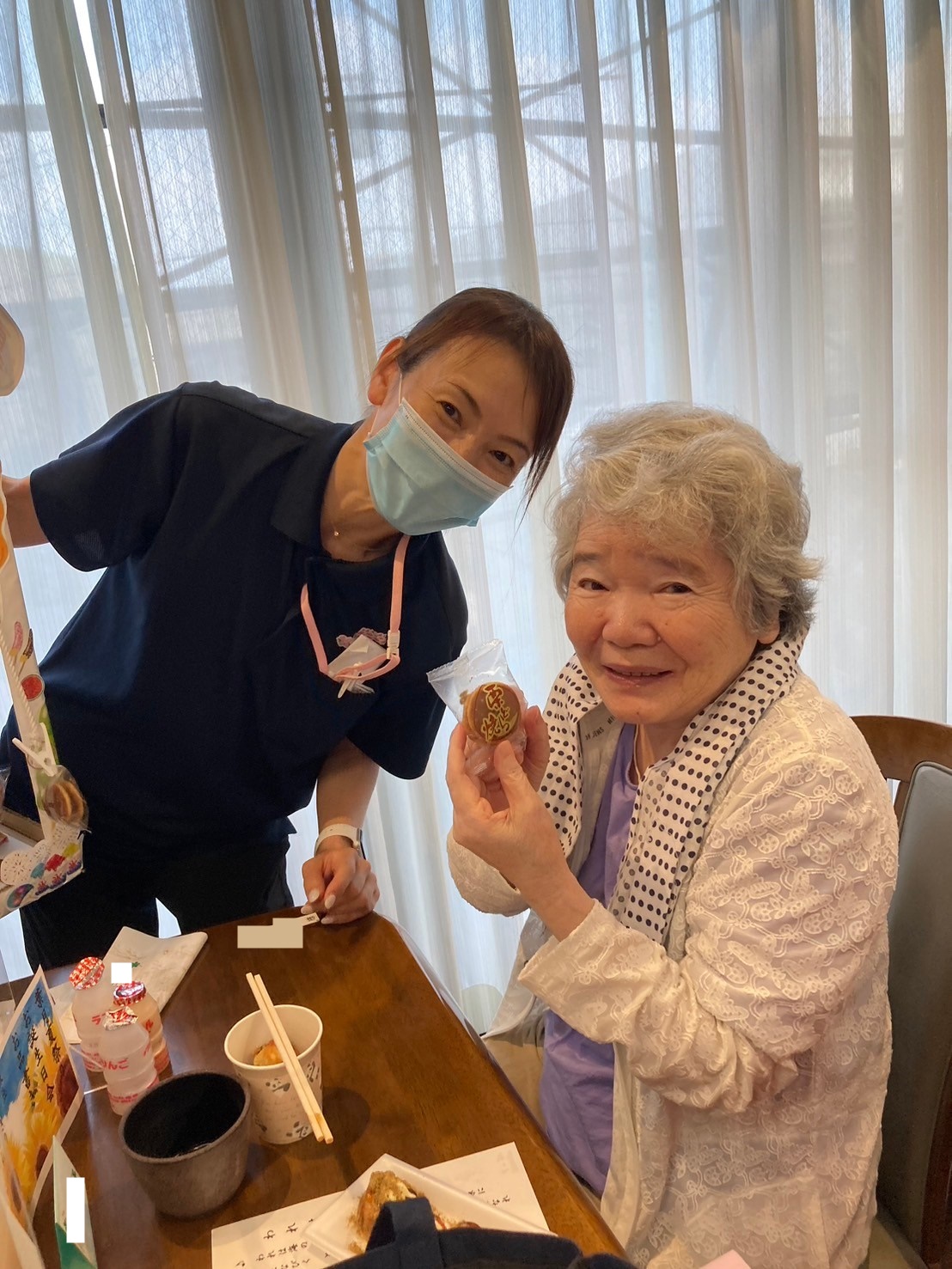 こちらのご入居者様はベビーカステラをお召し上がりになっていました。「甘くて美味しいわ ♪ 」とにっこりと優しい笑顔で答えてくださいました☆