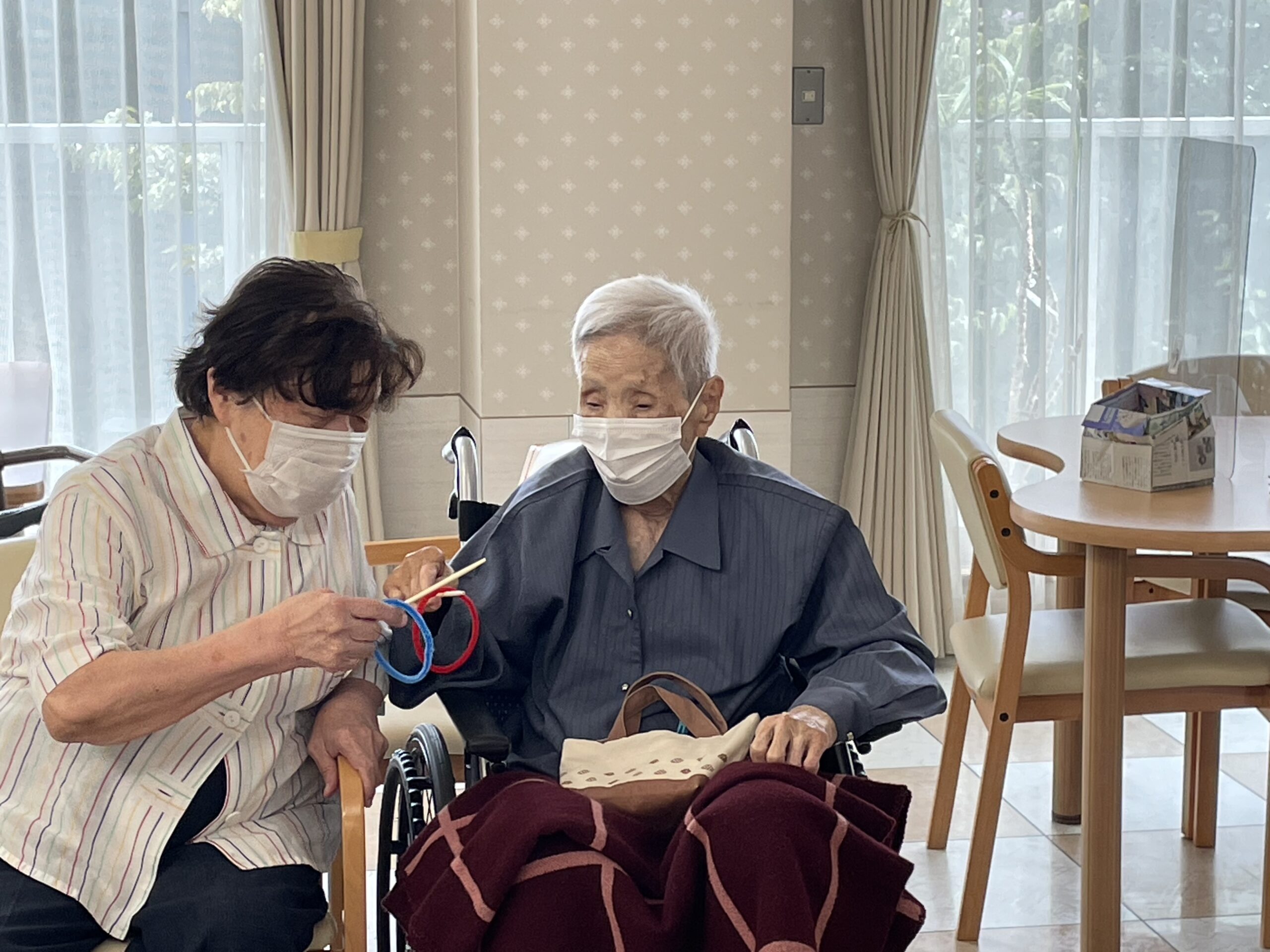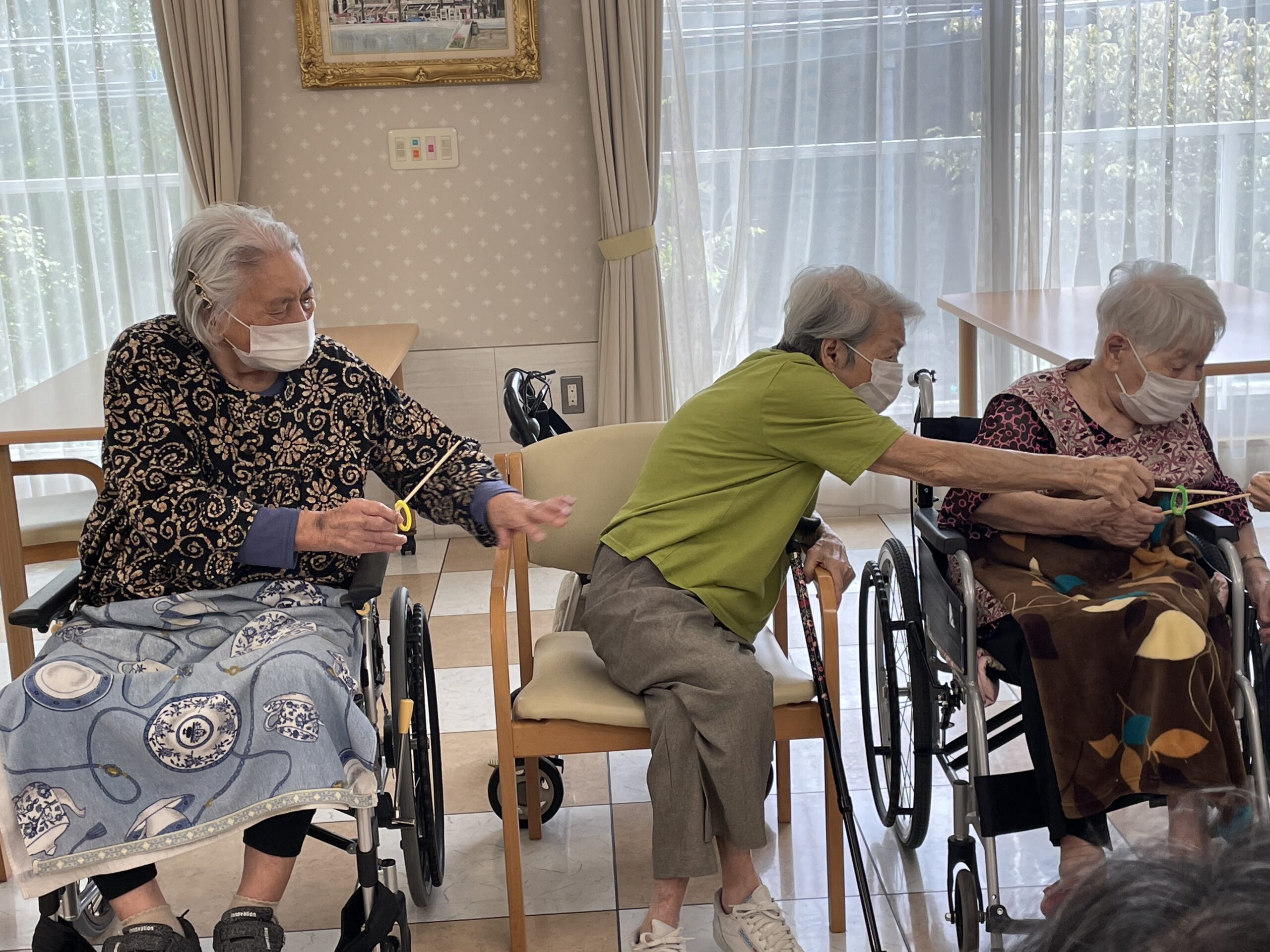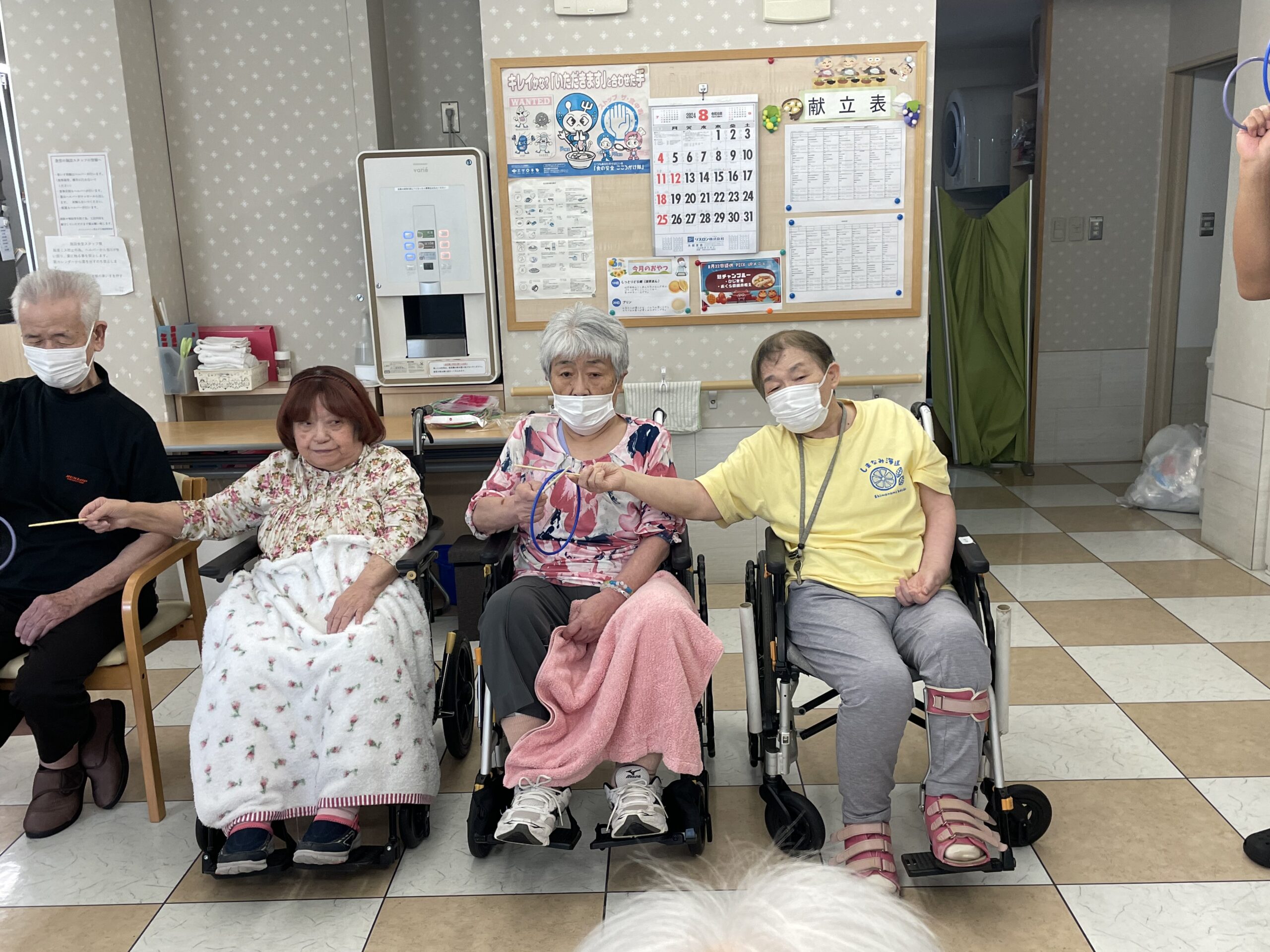 斜めにしてお隣の方へ渡してあげるところがお優しいご入居者様です☆ スルスルっと輪っかが落ちていきます ♪