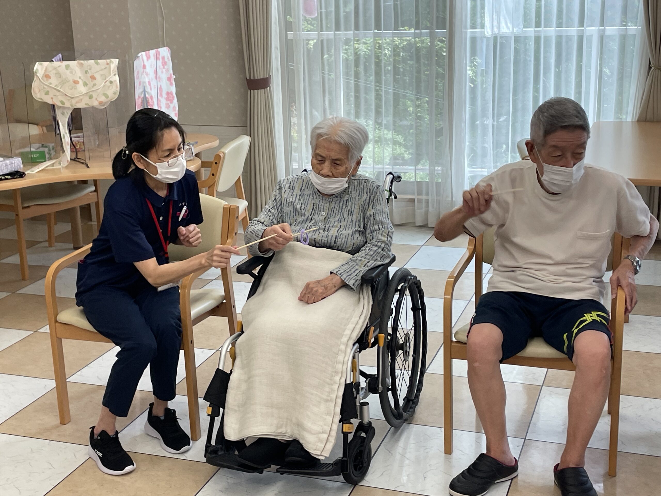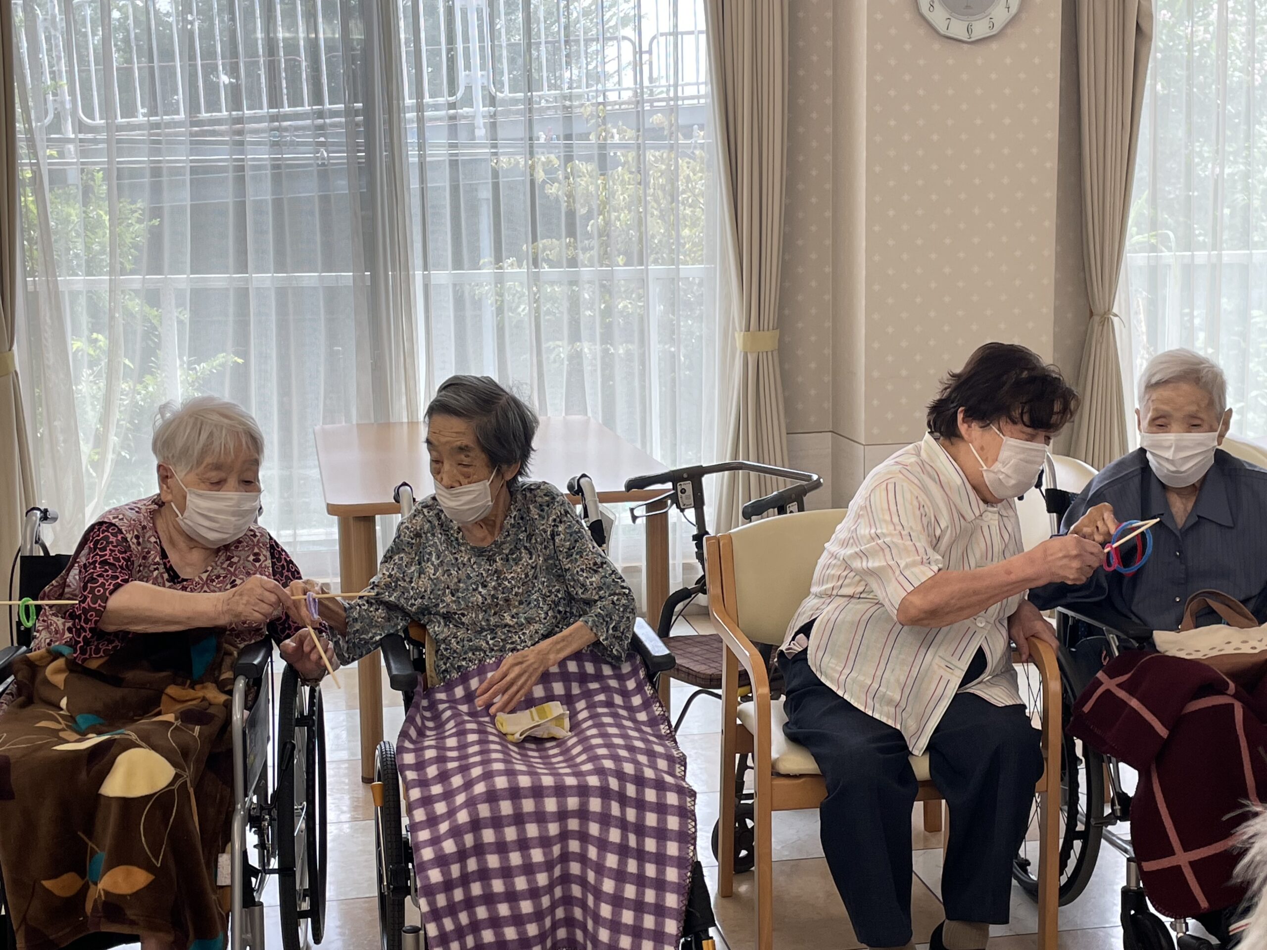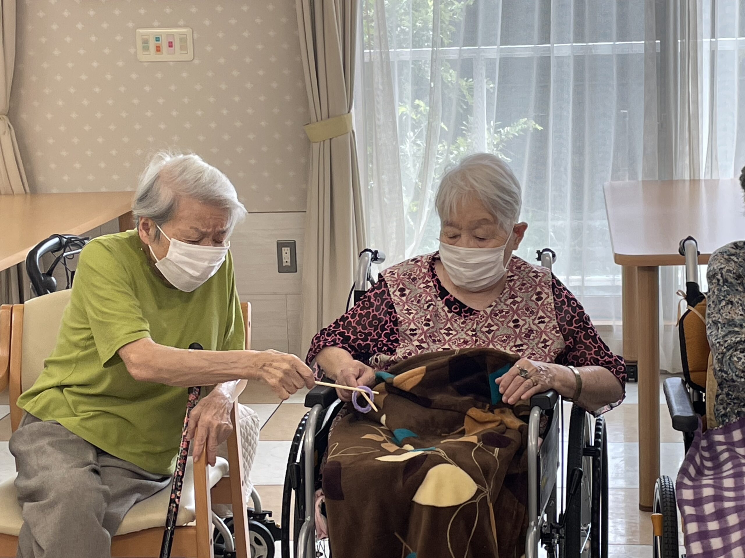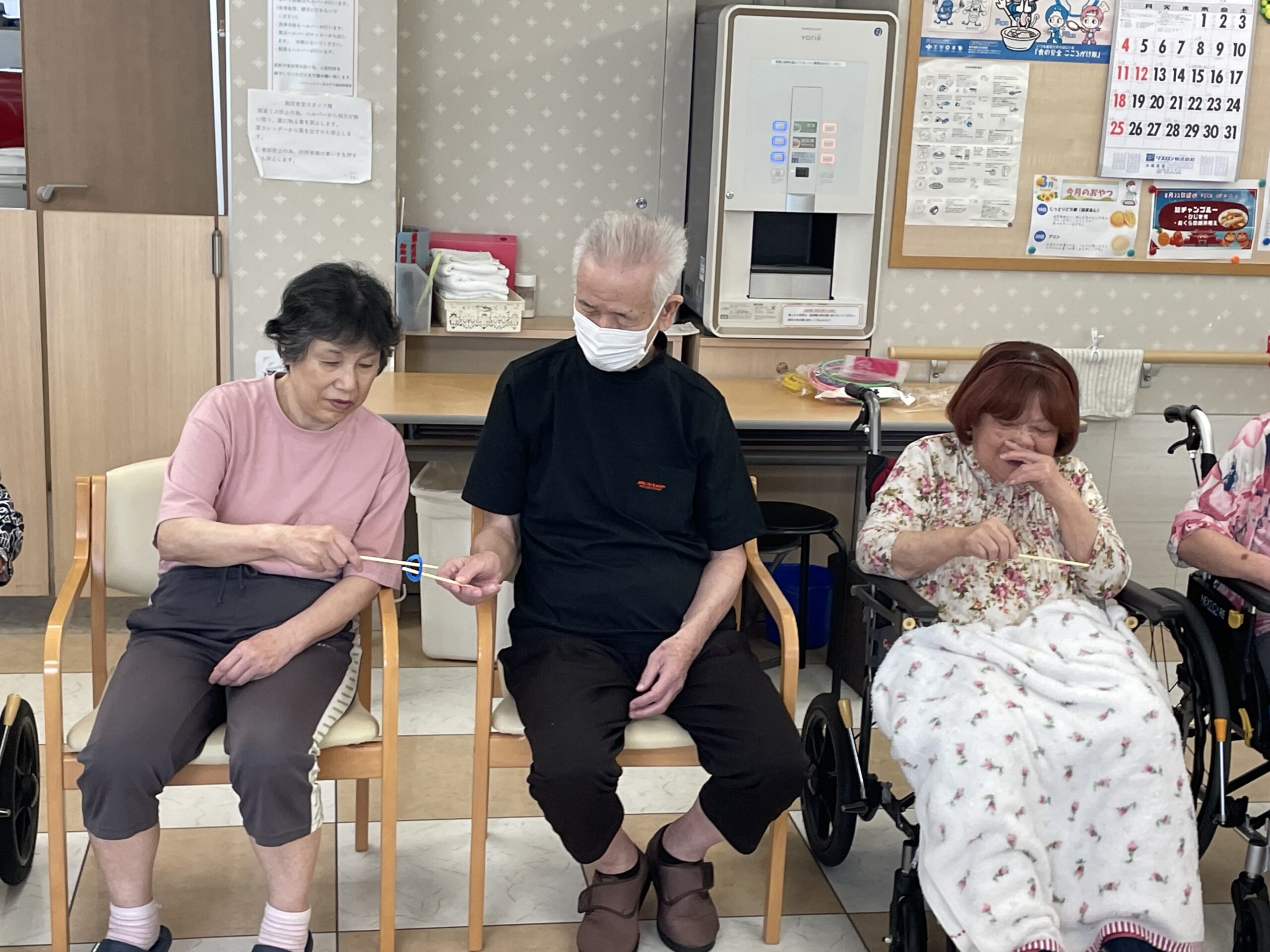 斜めにしてお隣の方へ渡してあげるところがお優しいご入居者様です☆ スルスルっと輪っかが落ちていきます ♪