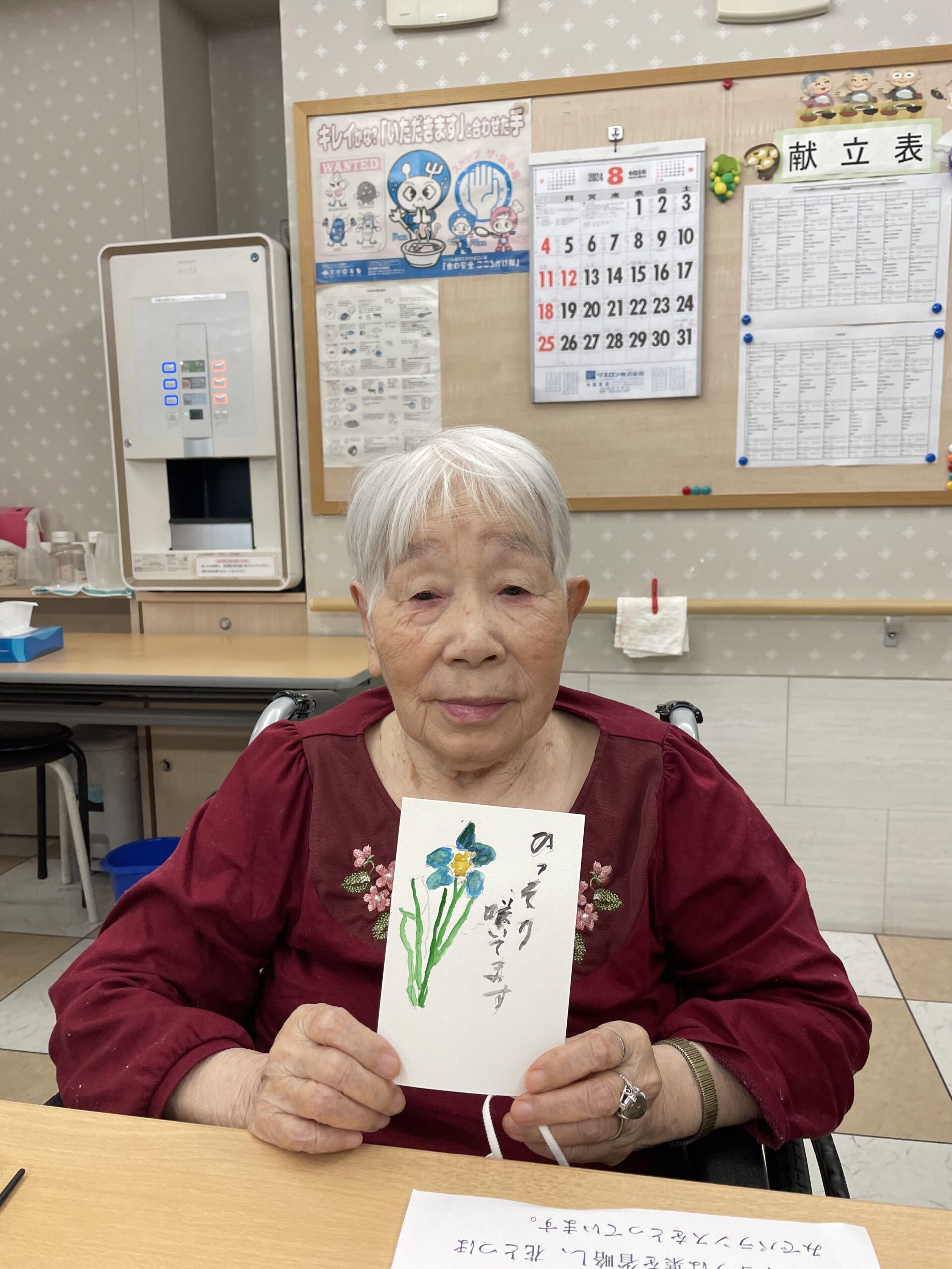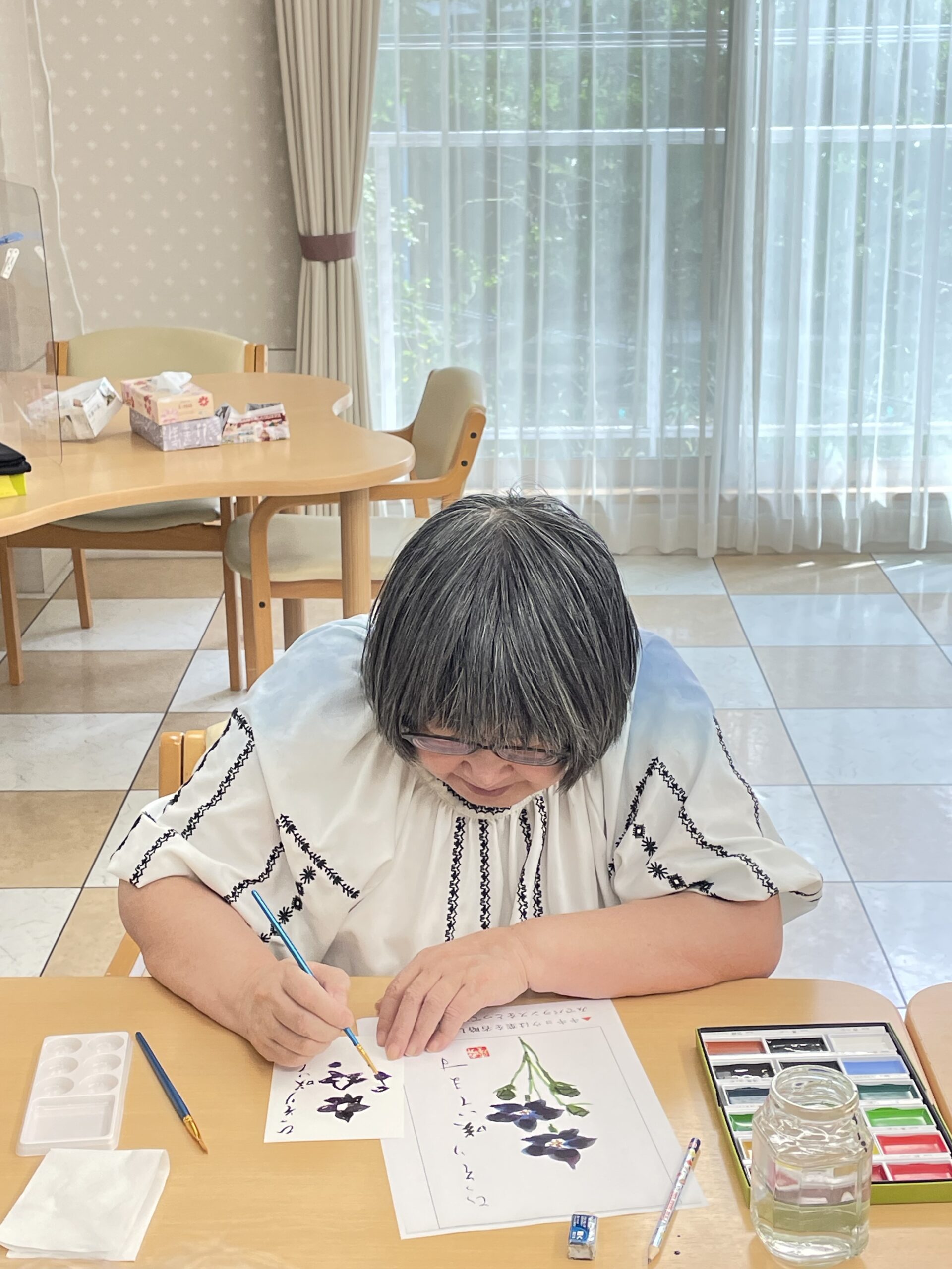 固形絵具に水を多めに混ぜて、柔らかなタッチで描いていらっしゃいます ♪ お優しいご入居者様が表れた素敵な絵手紙ですね☆