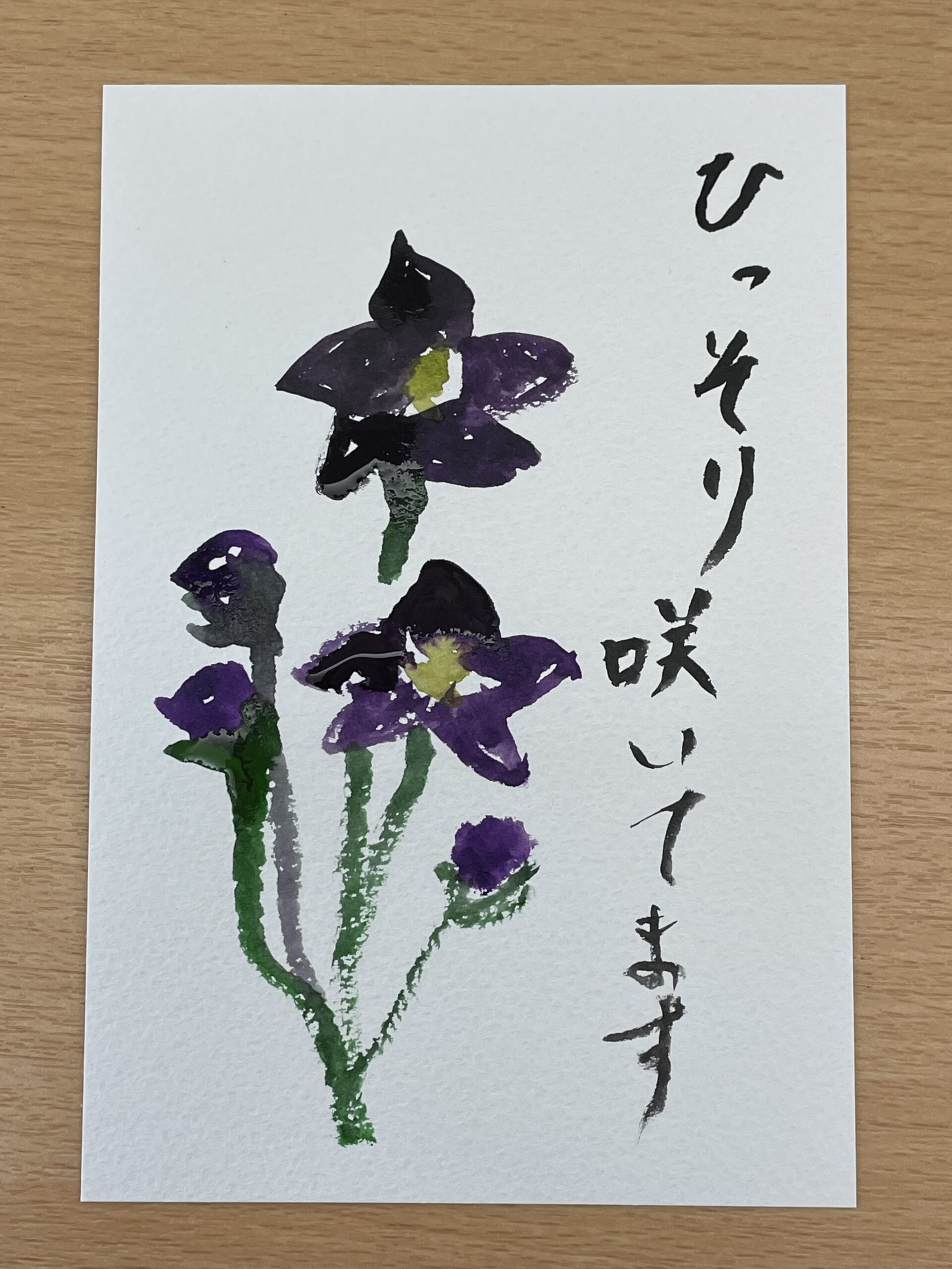 まるで水墨画の様なタッチで描かれたキキョウの紫色がとても綺麗ですね ♪ 「お人柄を表すような優しい絵手紙ですね!」とお声掛けをすると「恥ずかしいわぁ」と照れていらっしゃいました☆
