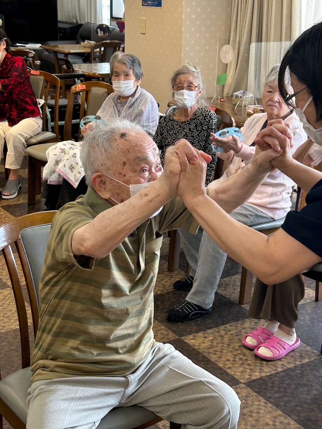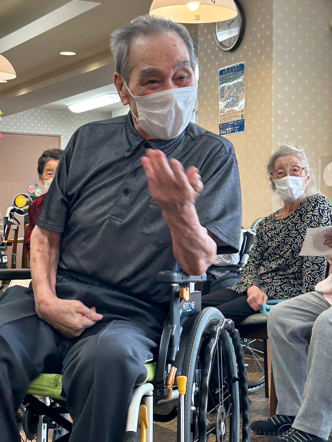 「我こそは!と思う方、お願いします!!」と募ると、男性の最高年齢95歳でいらっしゃる方が「よっしゃ~!!」と名乗り出てくださいました。