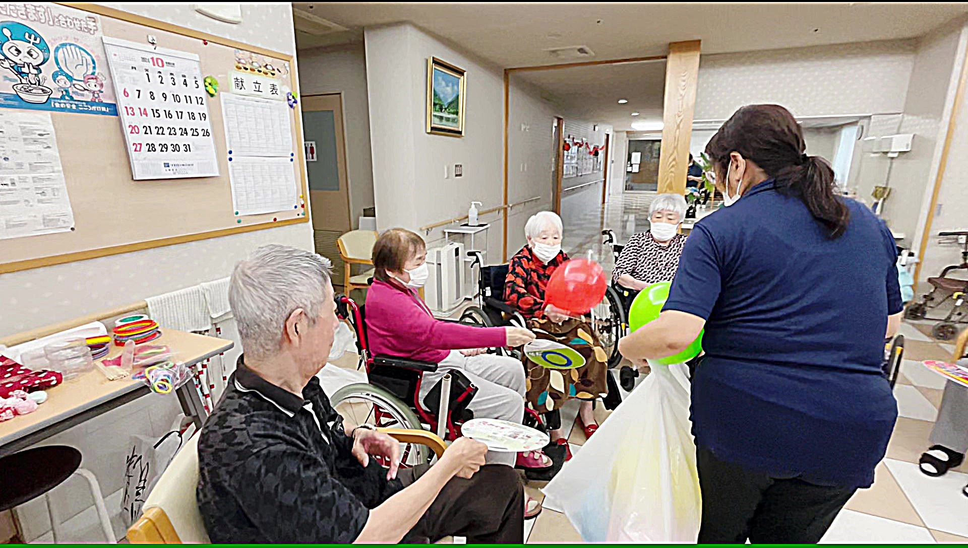 ヘルプ要員として参加したスタッフからご入居者様へ ♪ 順番はまだかまだか…と皆様待っています。