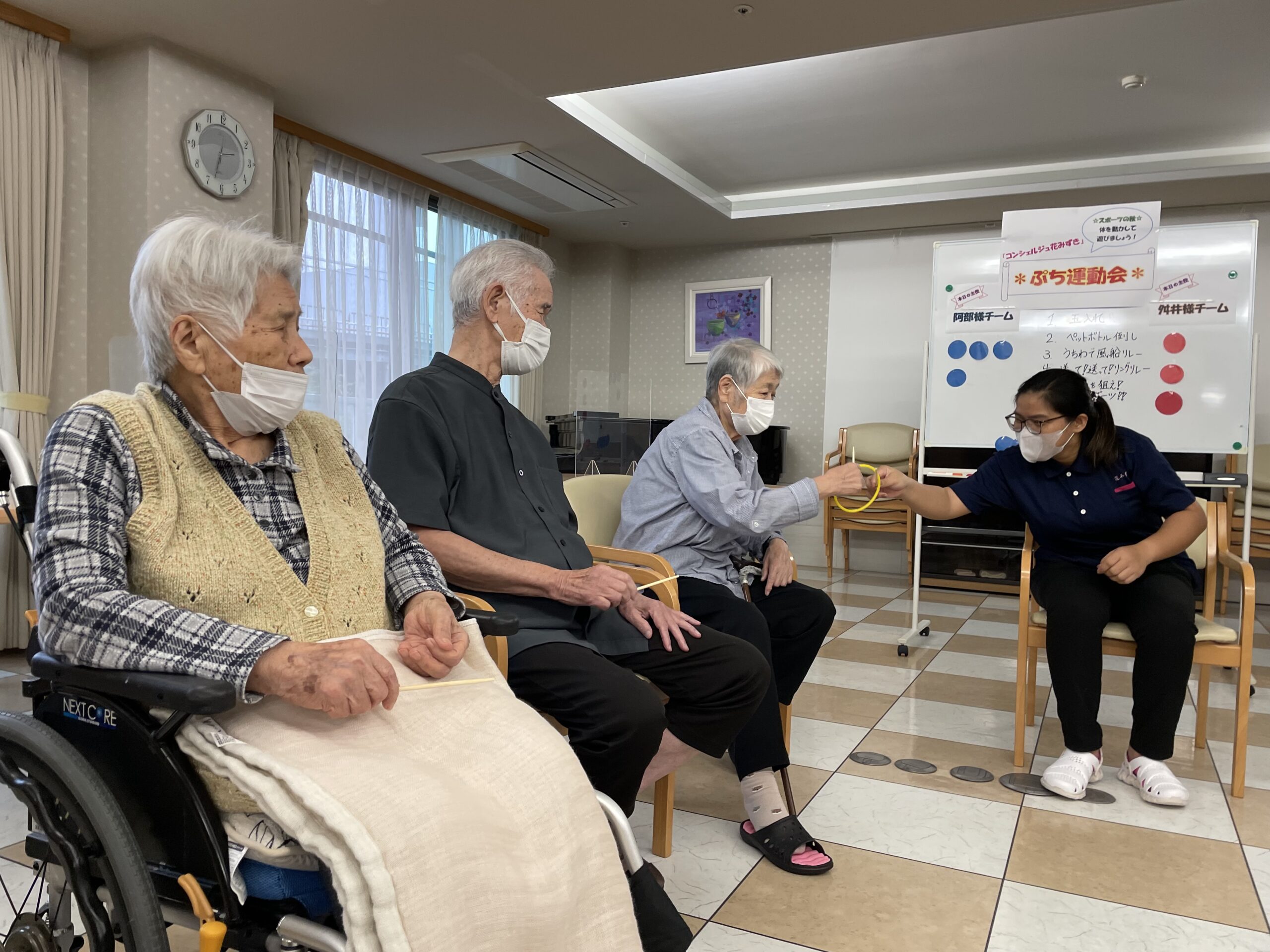 コンシェルジュ花みずき「ぷち運動会」も残すところ、後1ゲームです☆どちらのチームが勝つのでしょうか??!