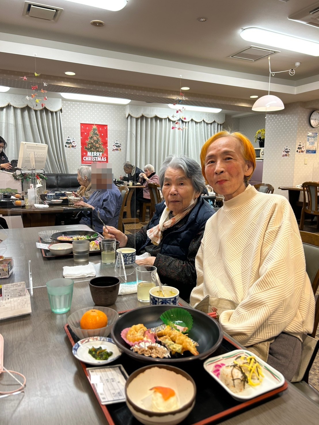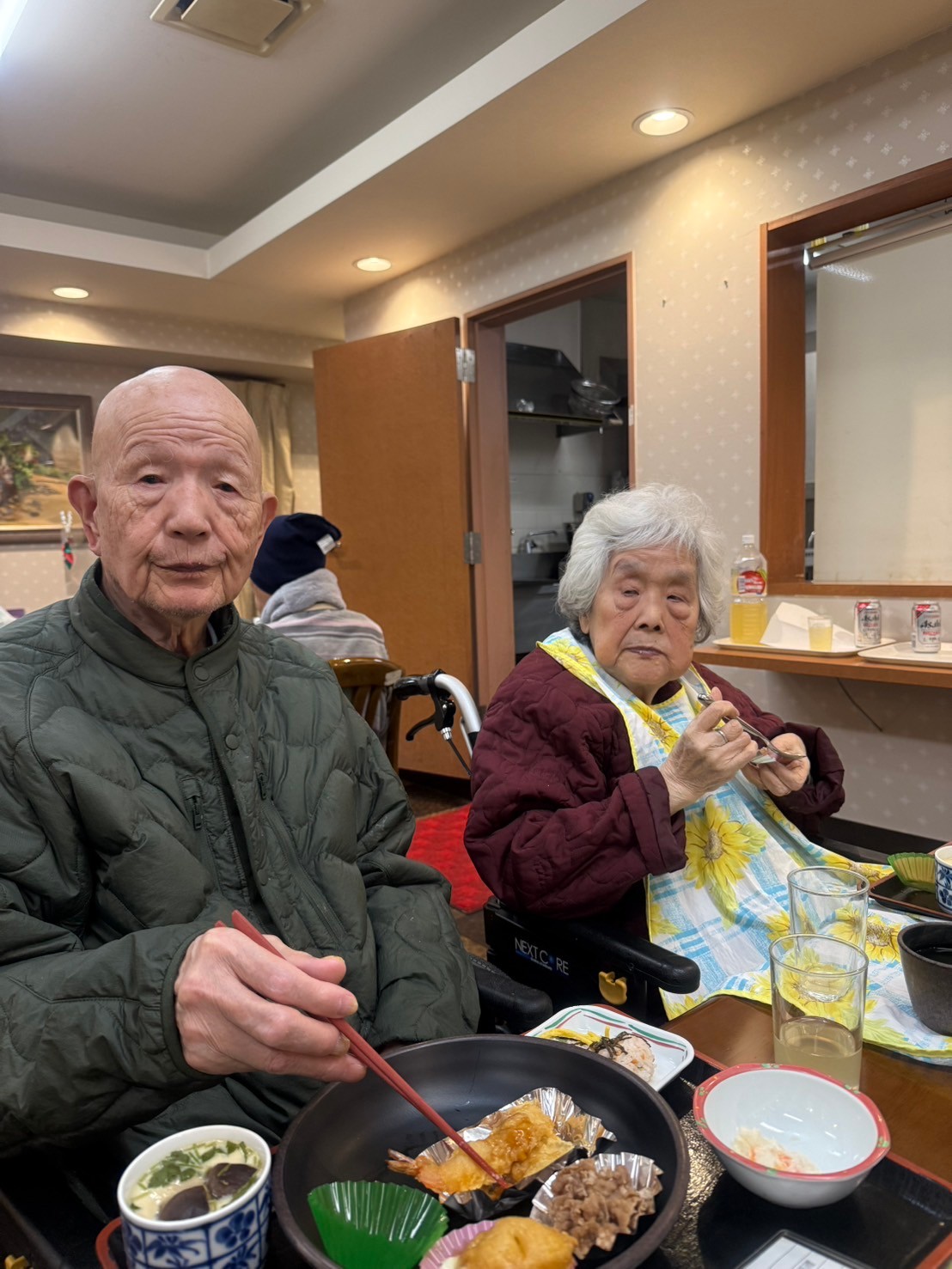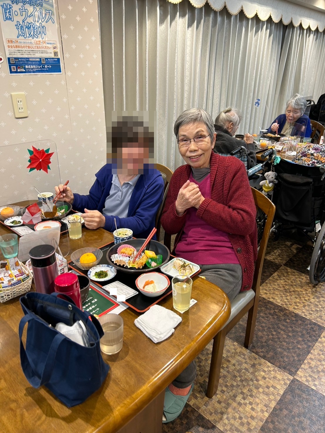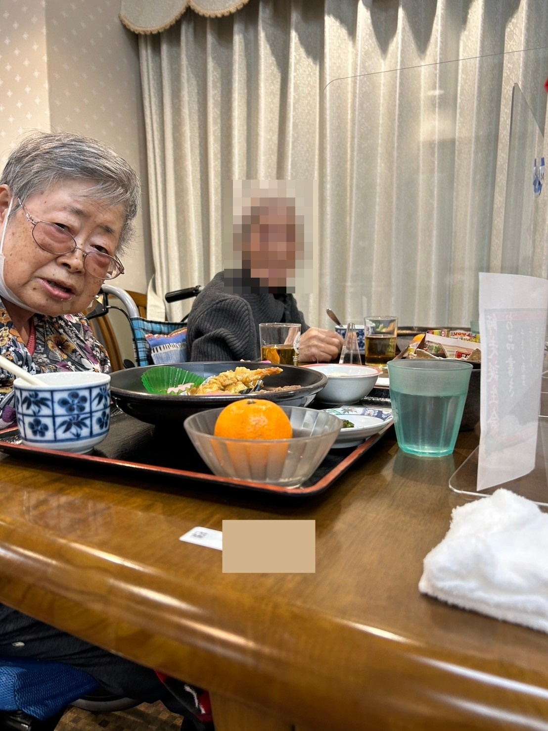 お誕生日会にお集まりいただいた他のご入居者様の皆様が特別食をお召し上がりいただいているご様子をご紹介致します。