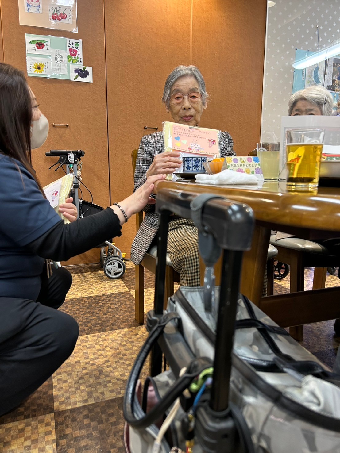 おめでとうございます!とお声掛けをすると「あ~ら!もう103歳なの!!」とご本人様もビックリされていました☆ いつまでもお若くてお美しい素敵な方です ♪