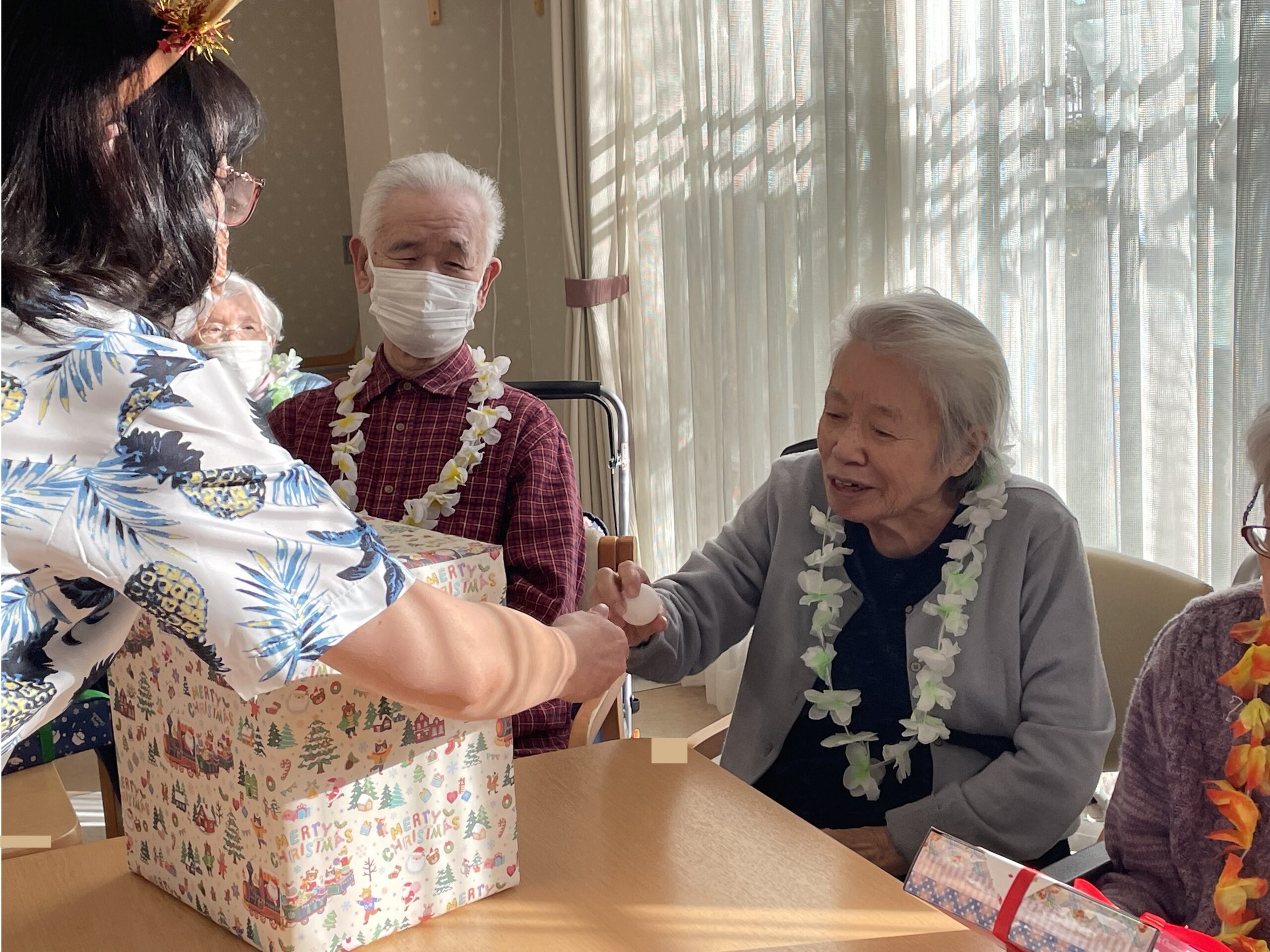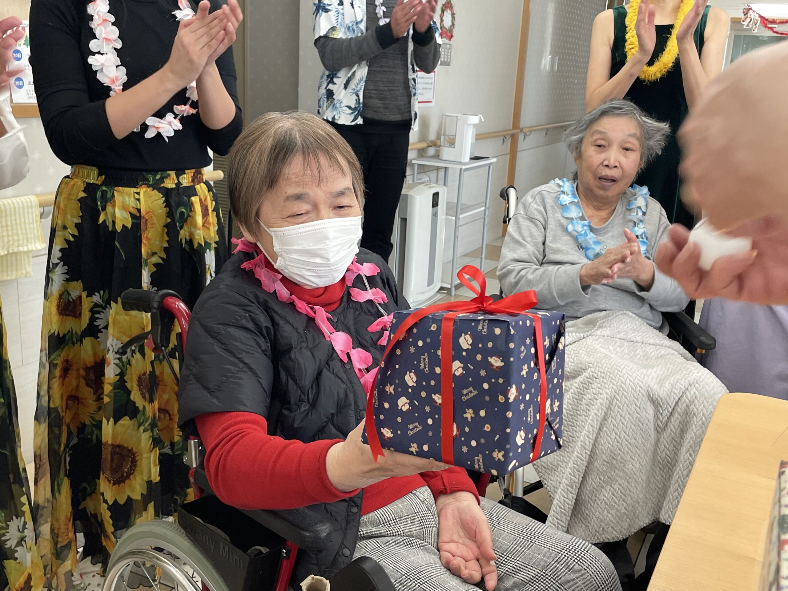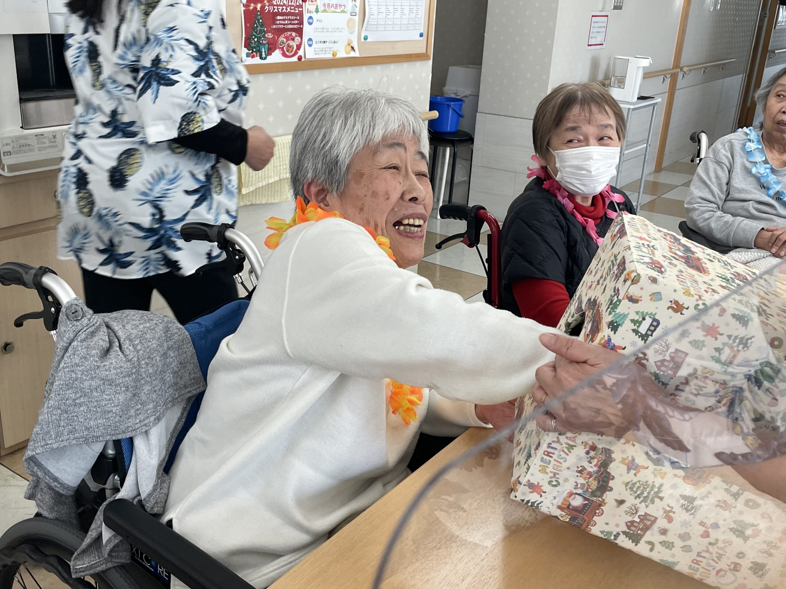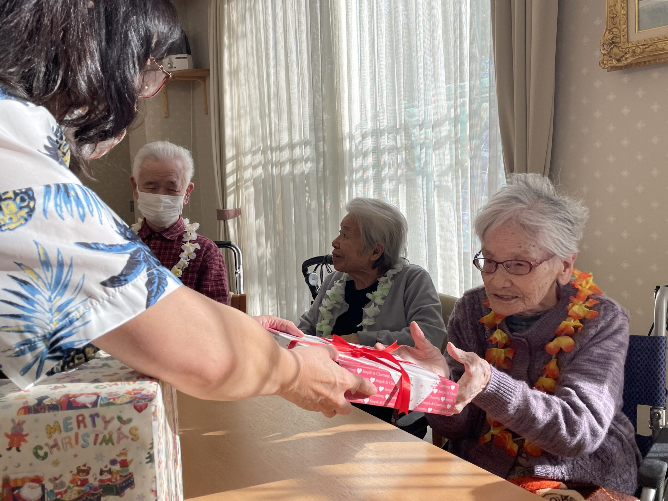 「メリークリスマス!」と当施設管理者から贈られたプレゼントをまるで拝むようにお受け取りくださいました☆ 「嬉しいです!」とおっしゃってくださって、私たちスタッフも嬉しいです ♪