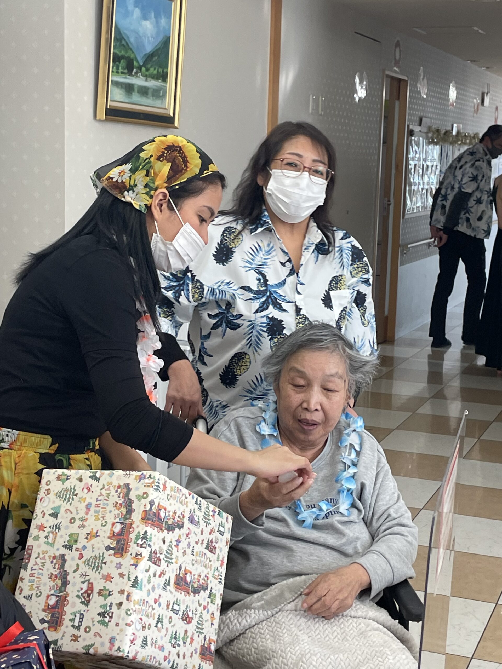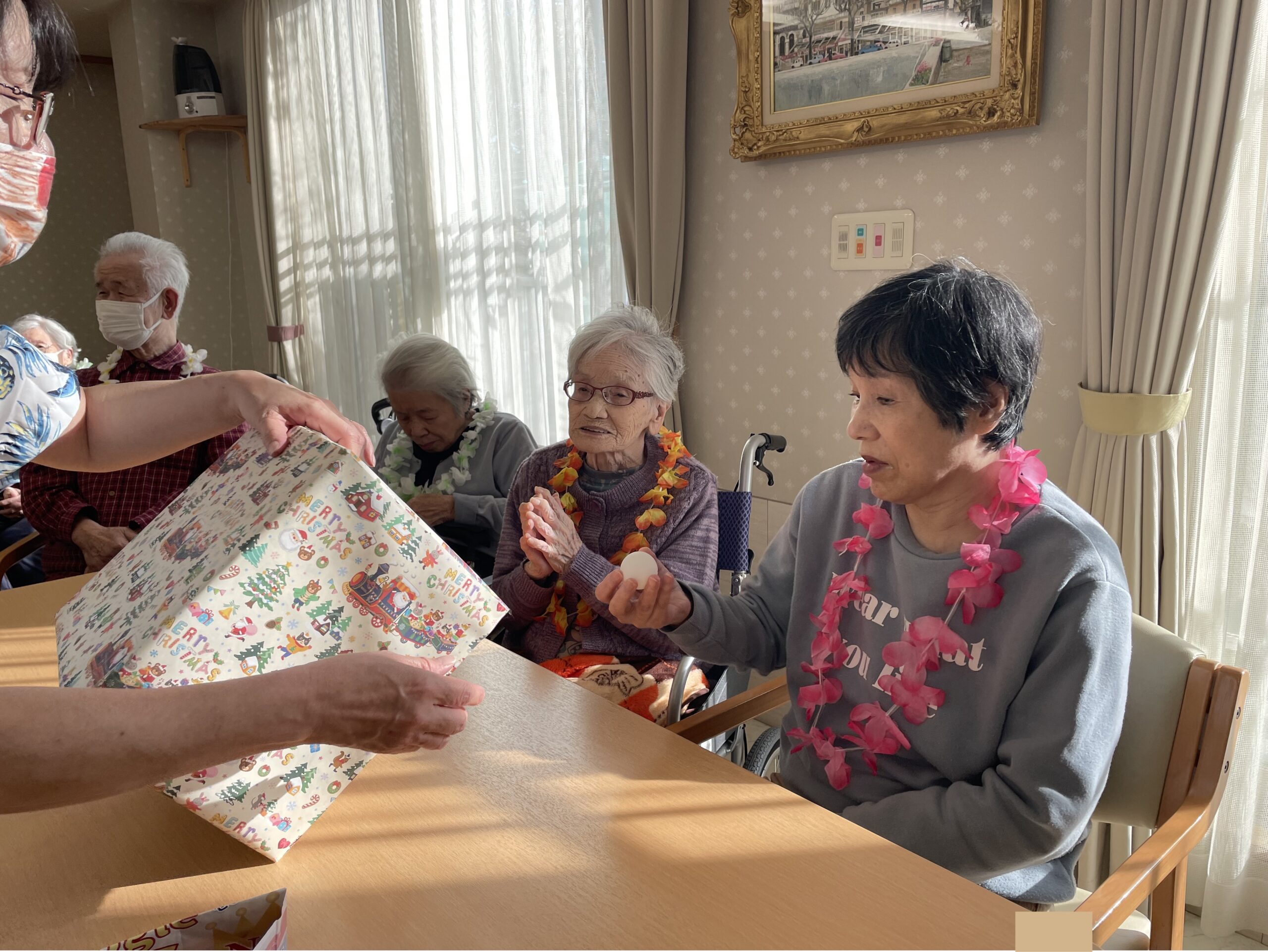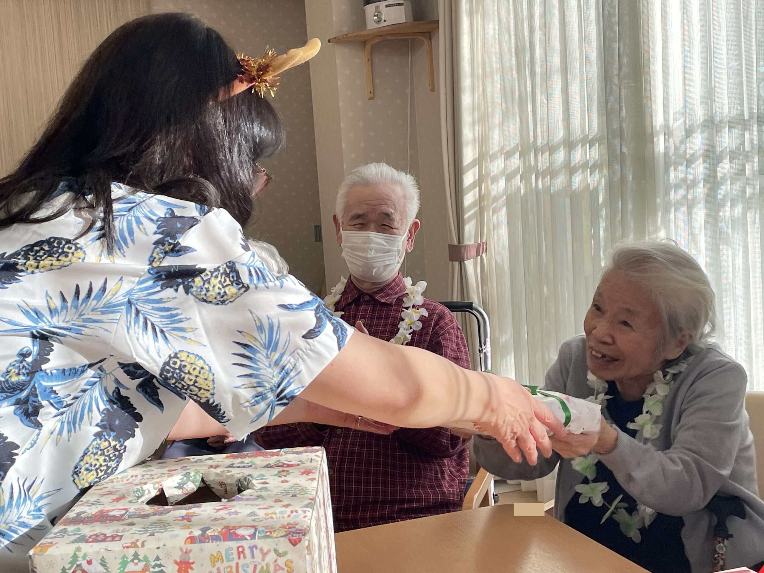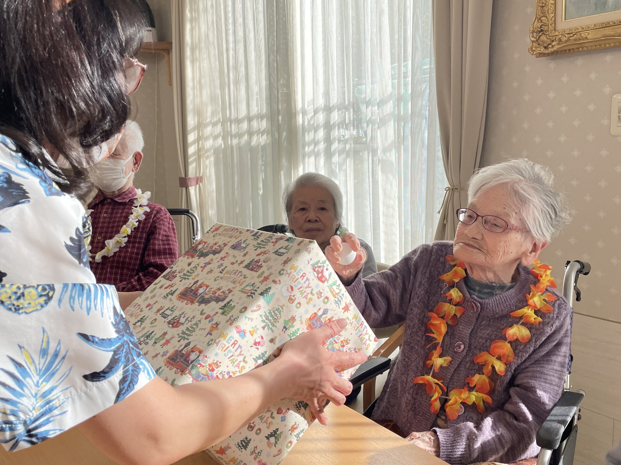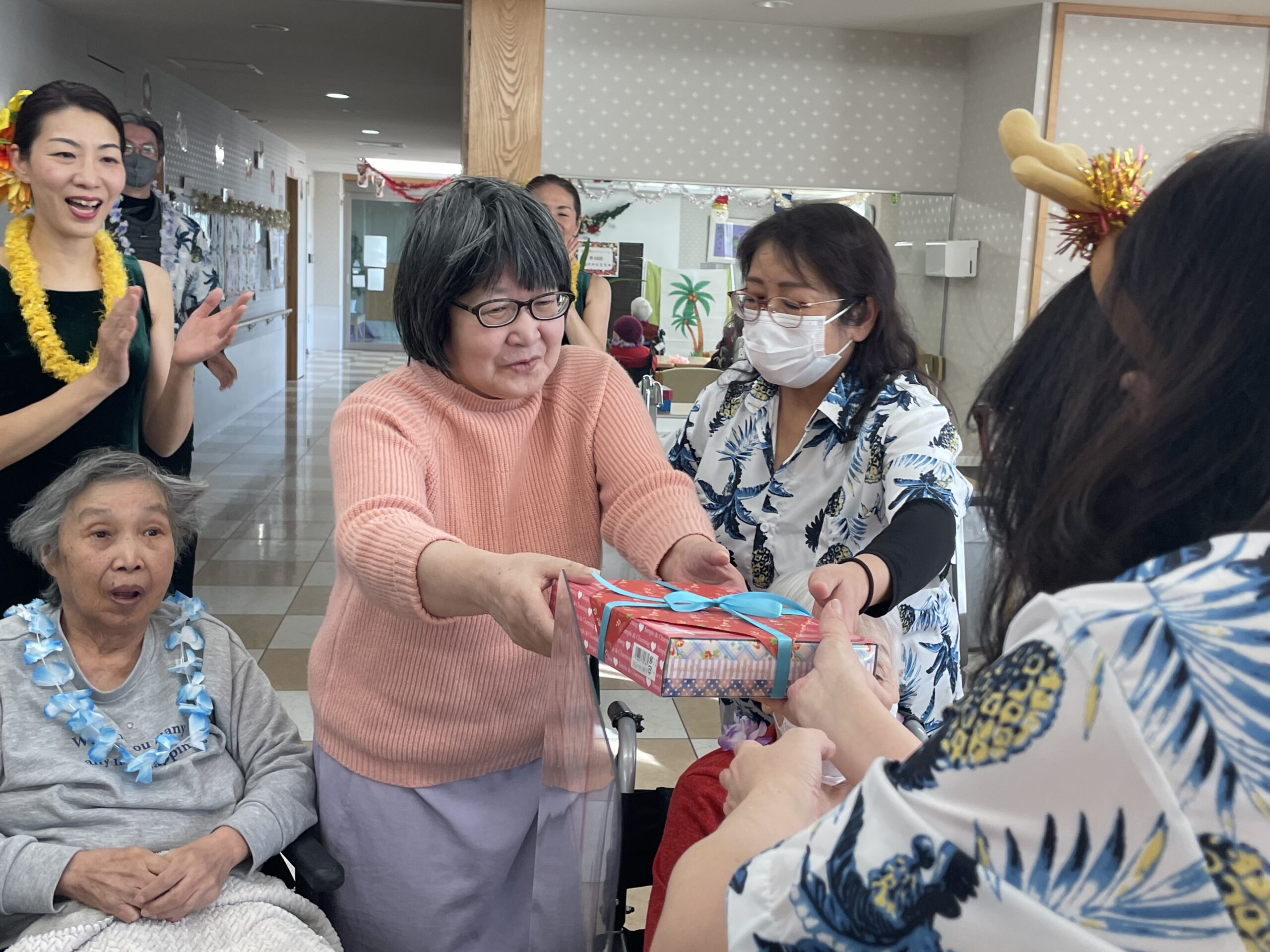 「メリークリスマス!」と当施設管理者から贈られたプレゼントをまるで拝むようにお受け取りくださいました☆ 「嬉しいです!」とおっしゃってくださって、私たちスタッフも嬉しいです ♪