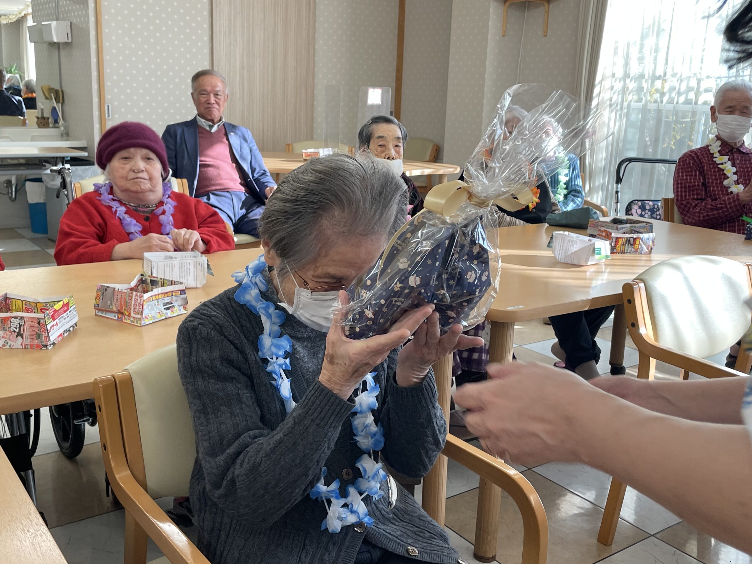 ピンクのお洋服がとってもお似合いのご入居者様にピッタリな☆可愛らしいプレゼントが当たりましたね ♪ おめでとうございます!