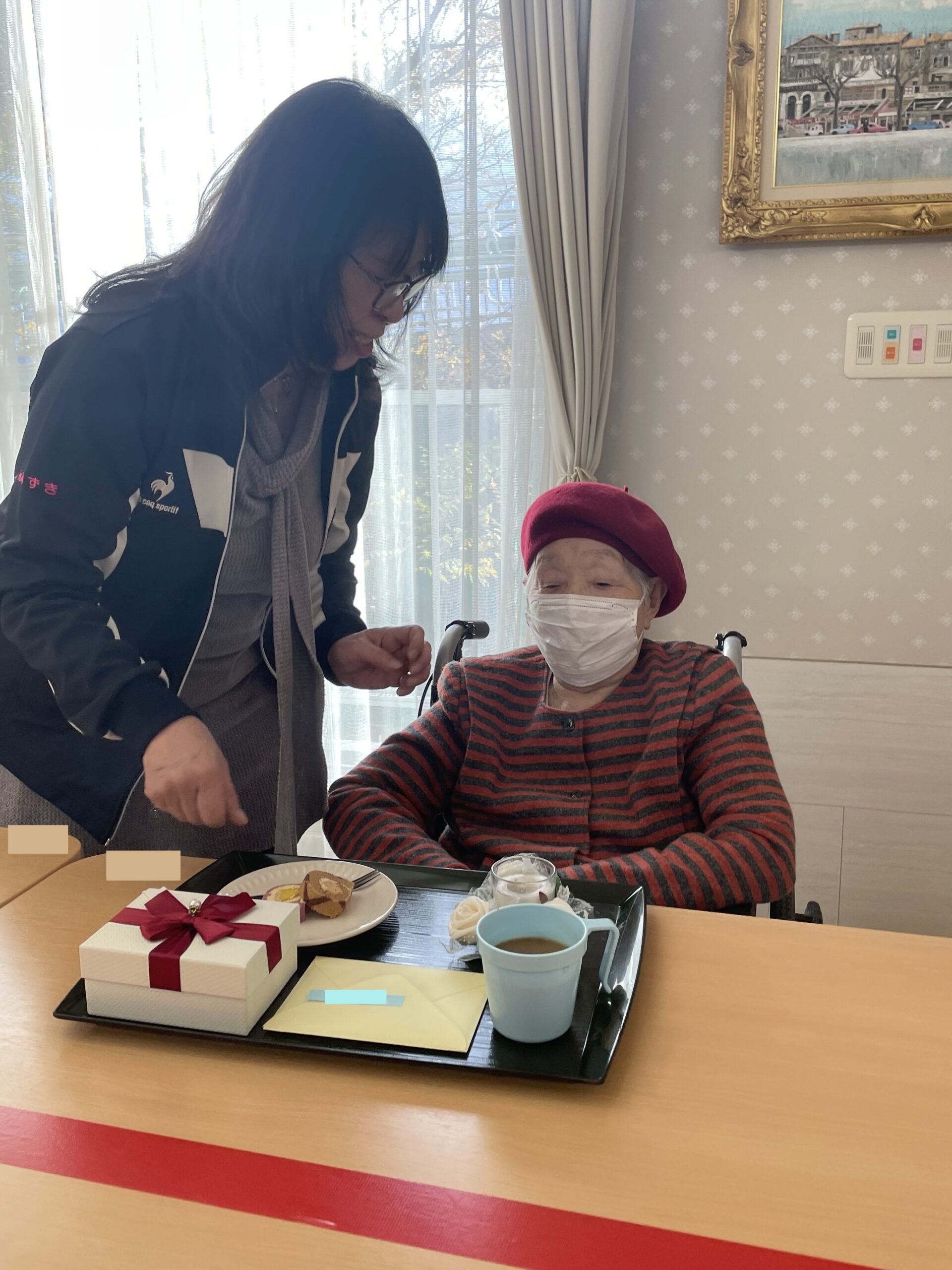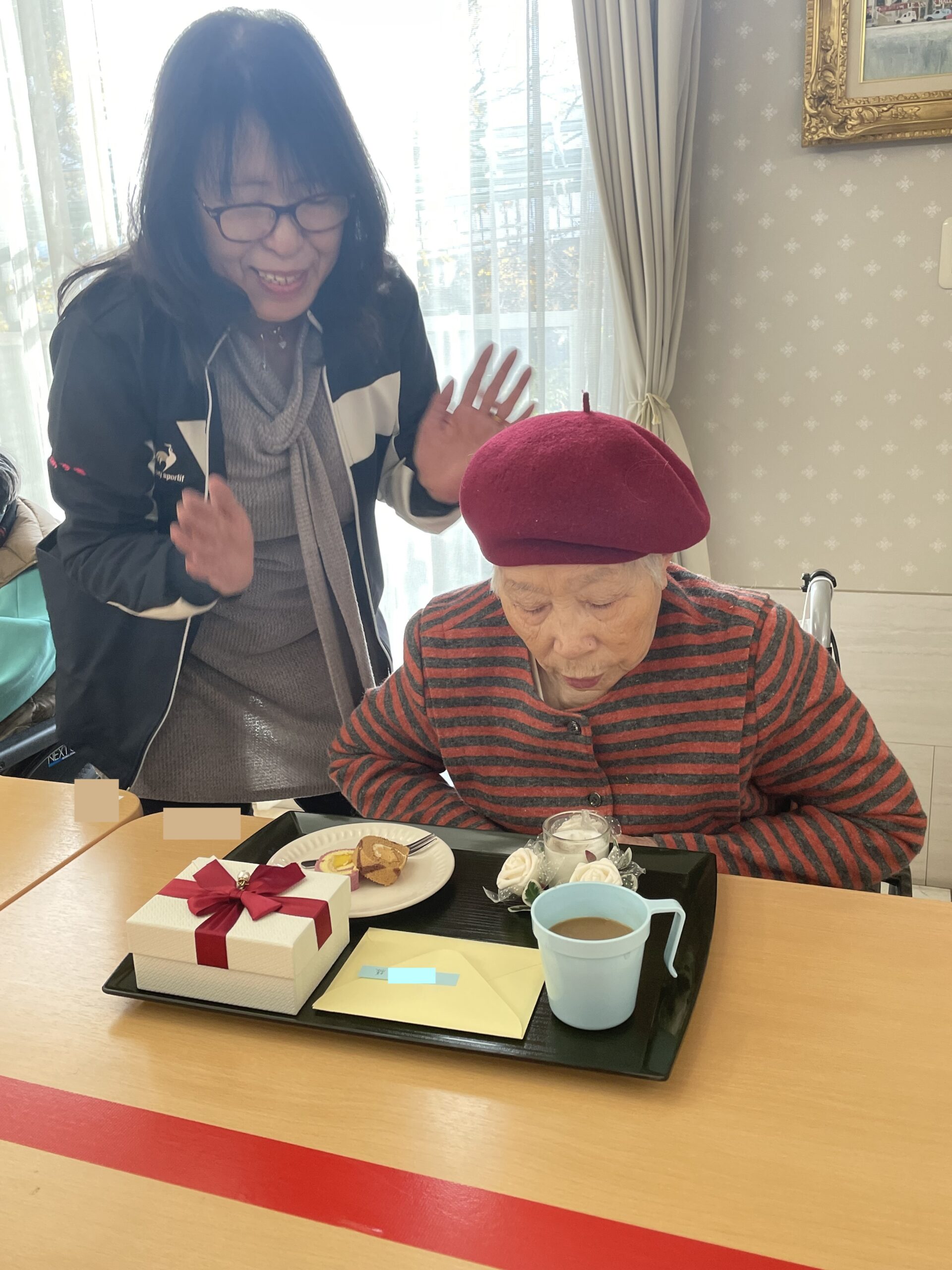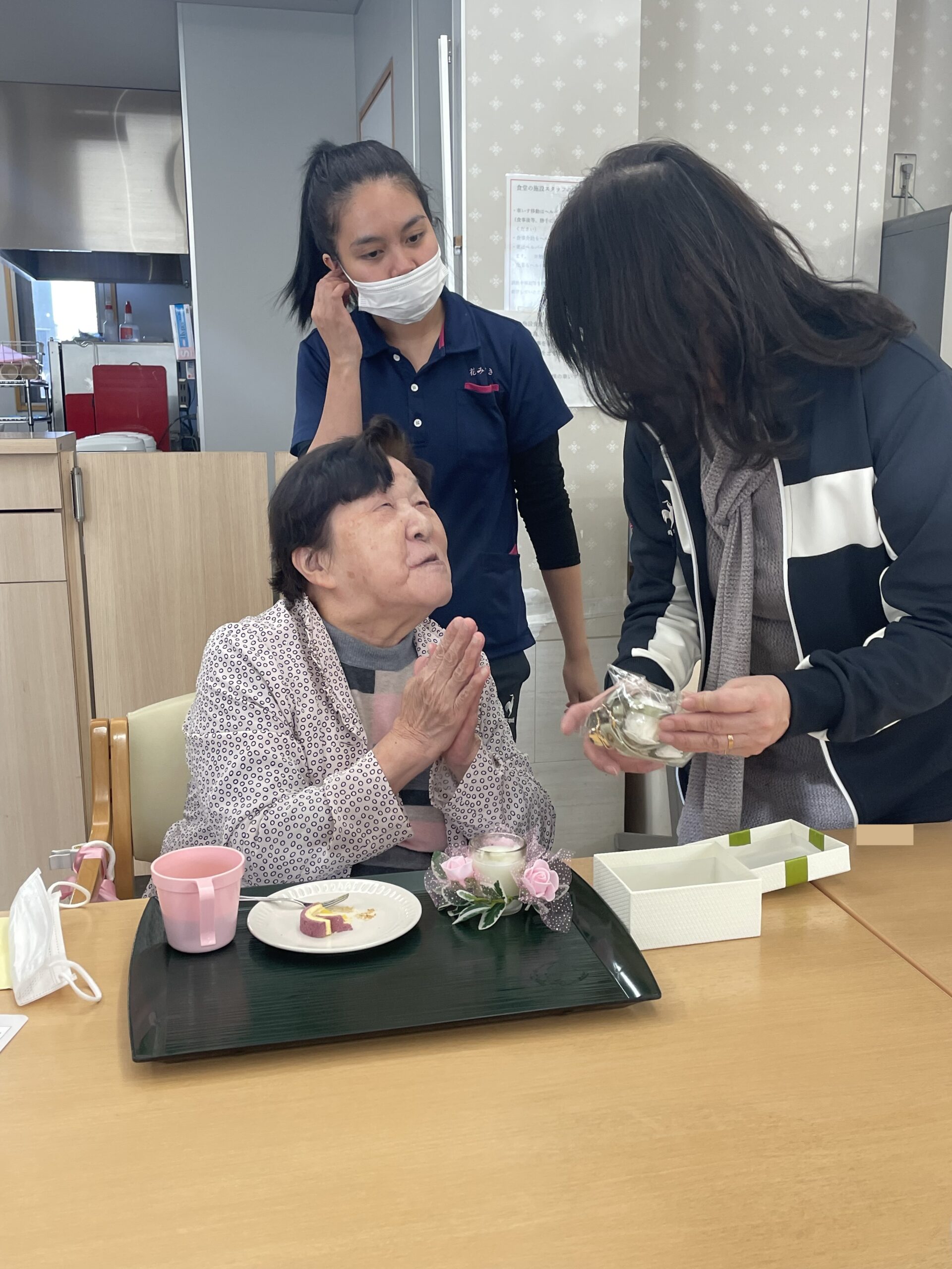 「〇〇さん!お誕生日おめでとうございます!」と施設管理者がお声がけすると「私?ほ~!…」と驚かれていました ♪