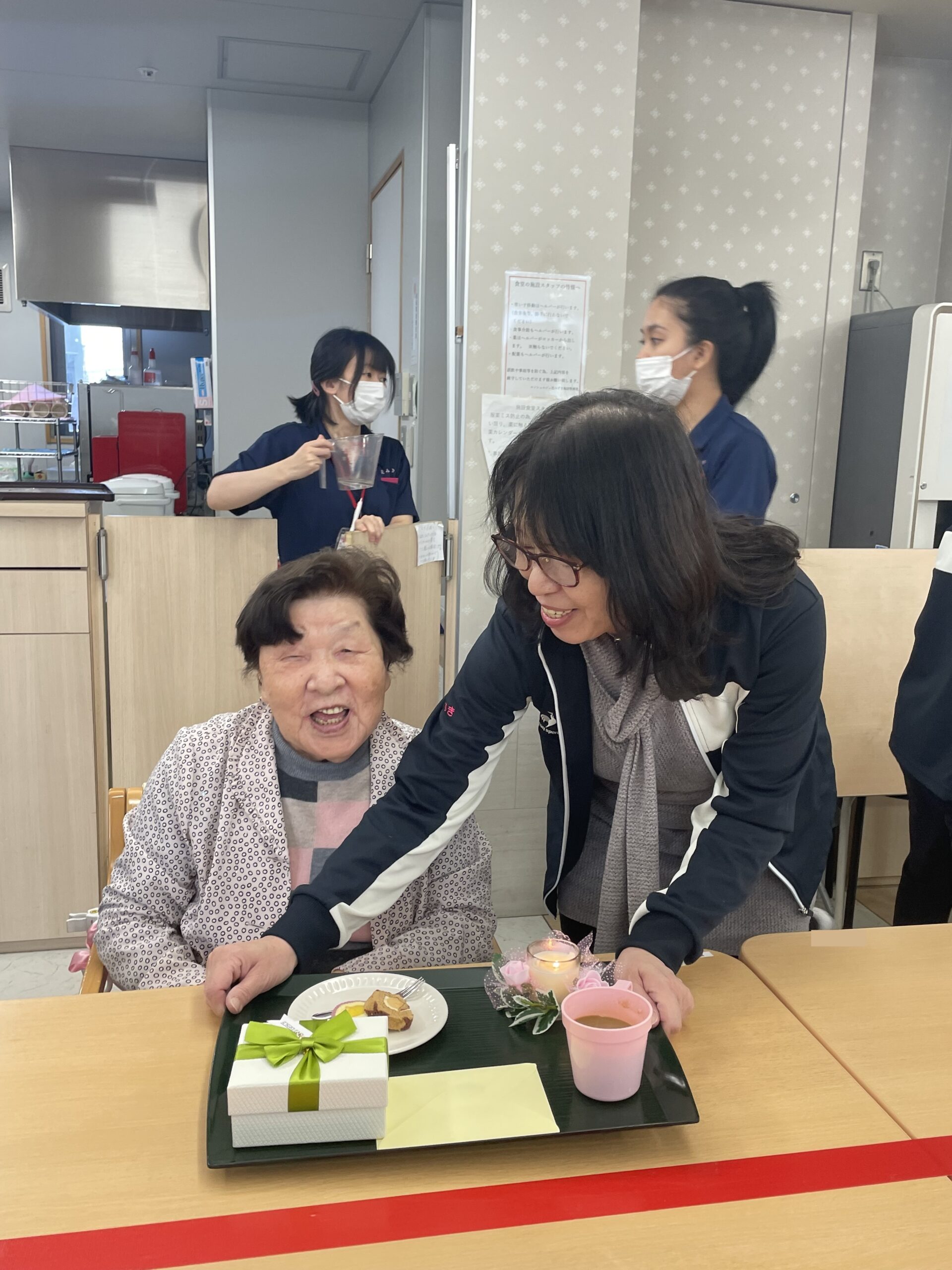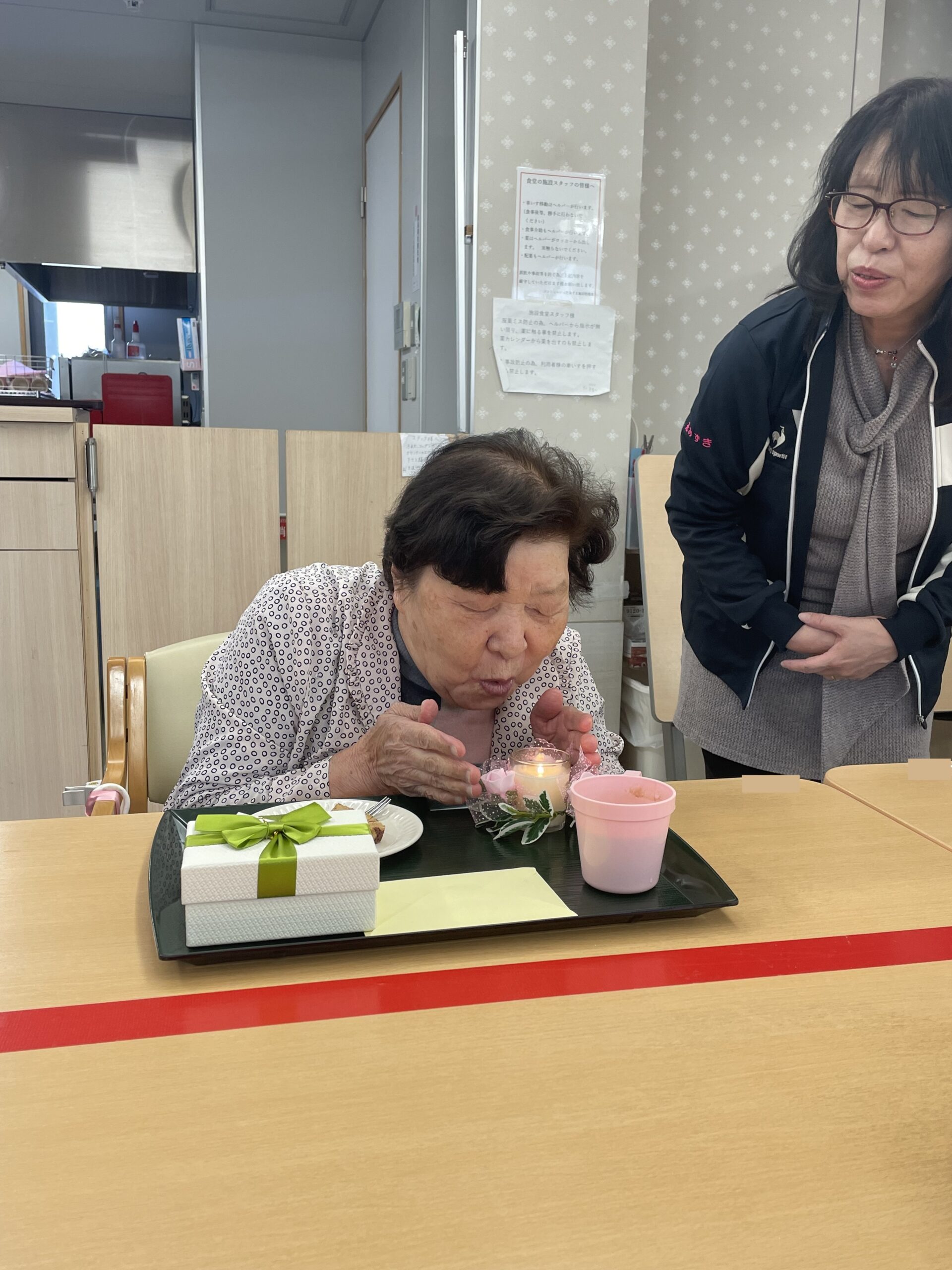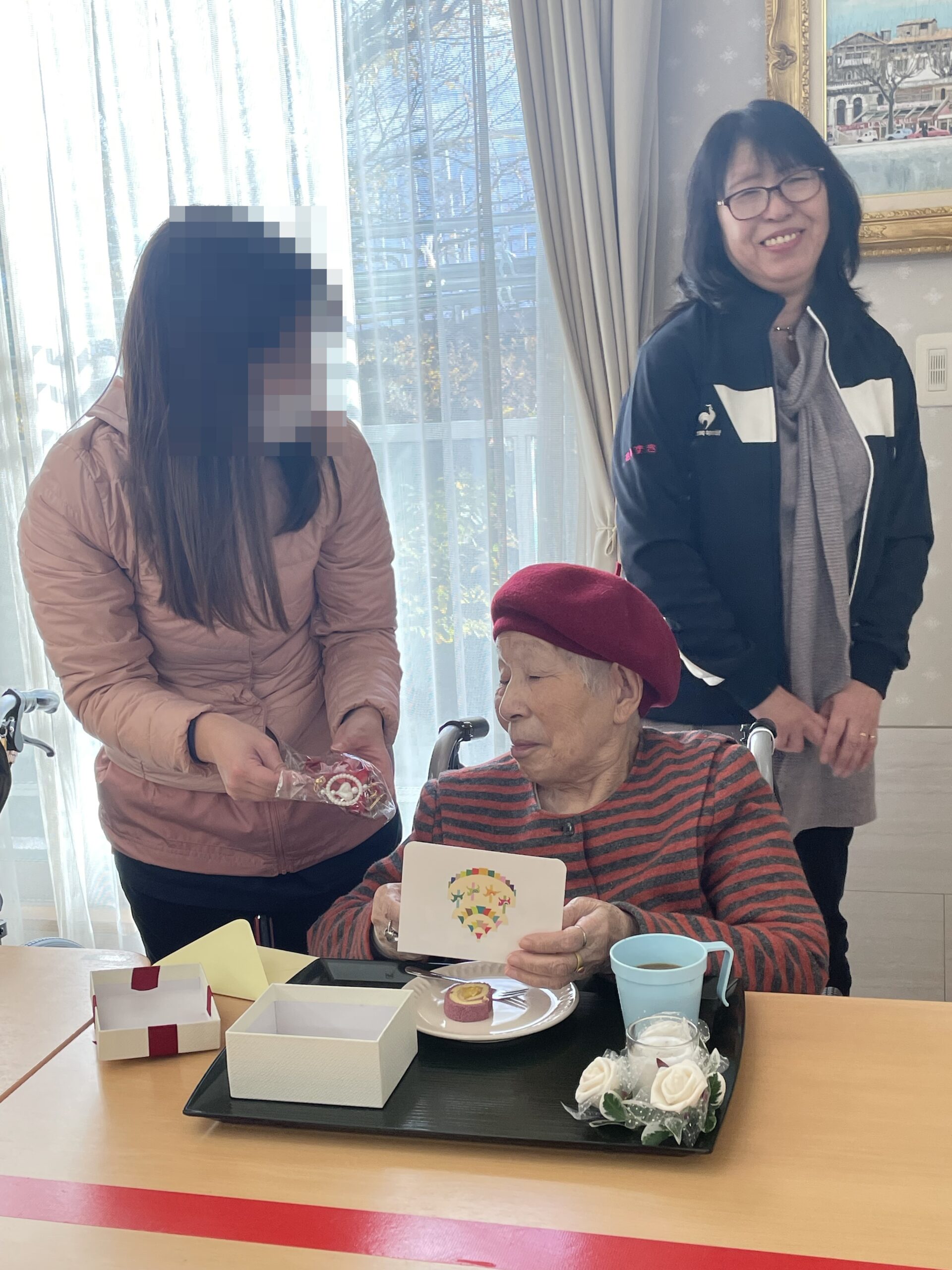 「〇〇さん!お誕生日おめでとうございます!」と施設管理者がお声がけすると「私?ほ~!…」と驚かれていました ♪