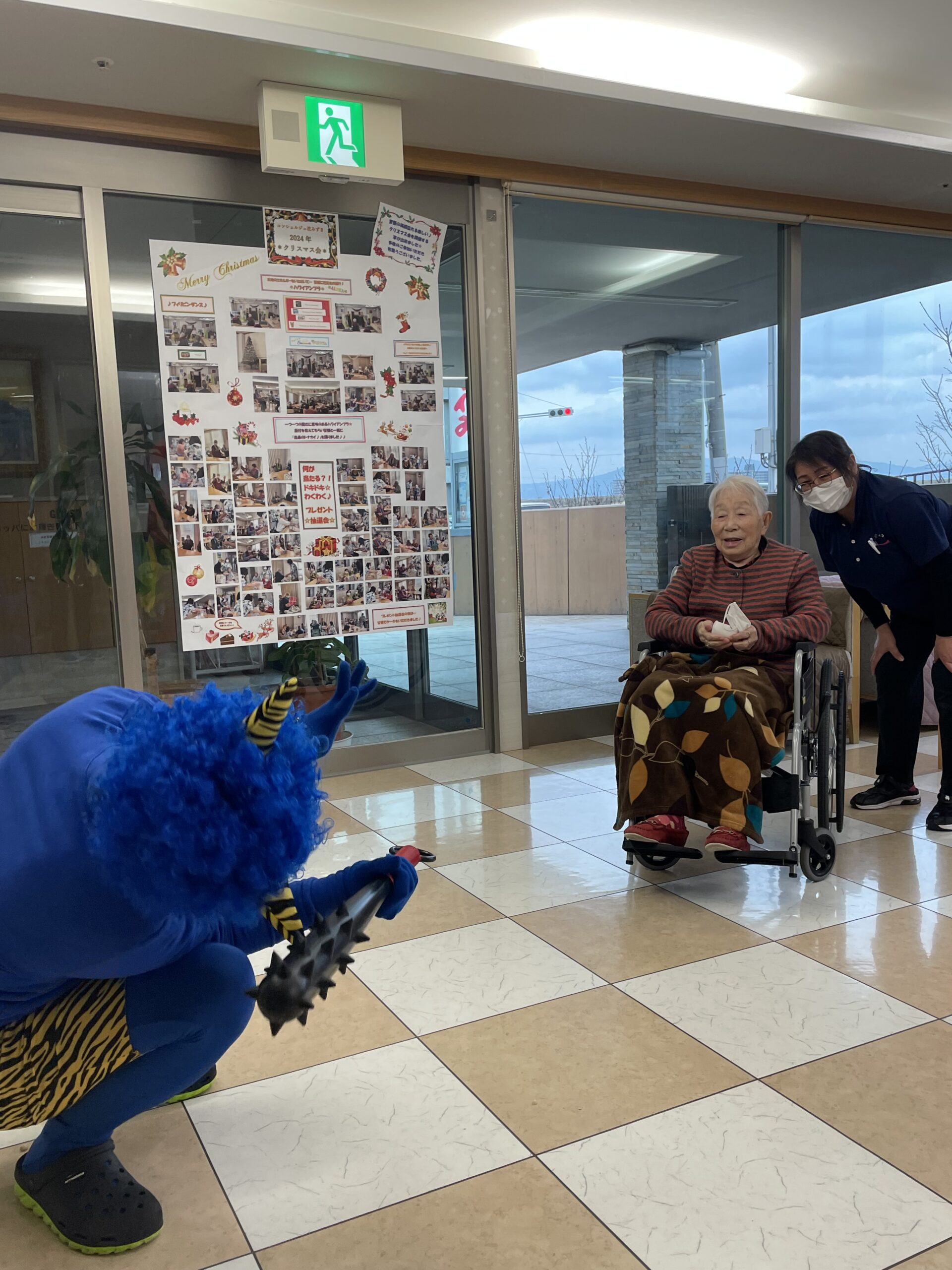 スタッフから大人気のこちらのご入居者様☆ 鬼達からも「〇〇さ~ん!!頑張って~!!」と思わず優しい鬼に変わっていました(笑)