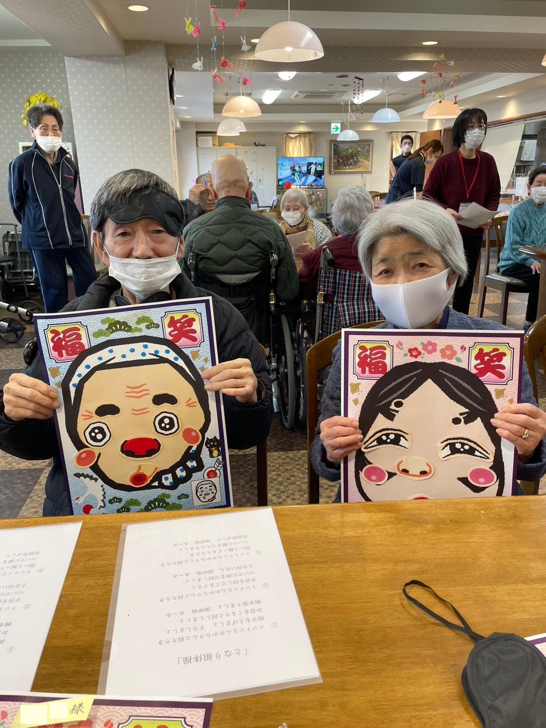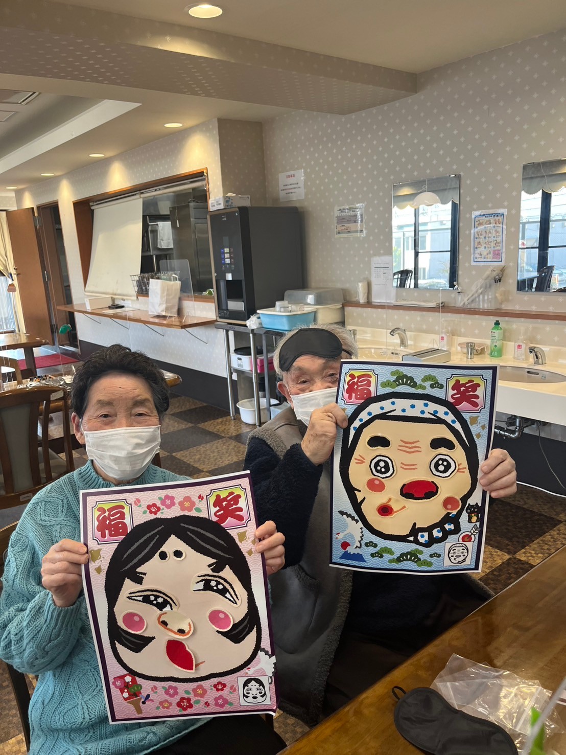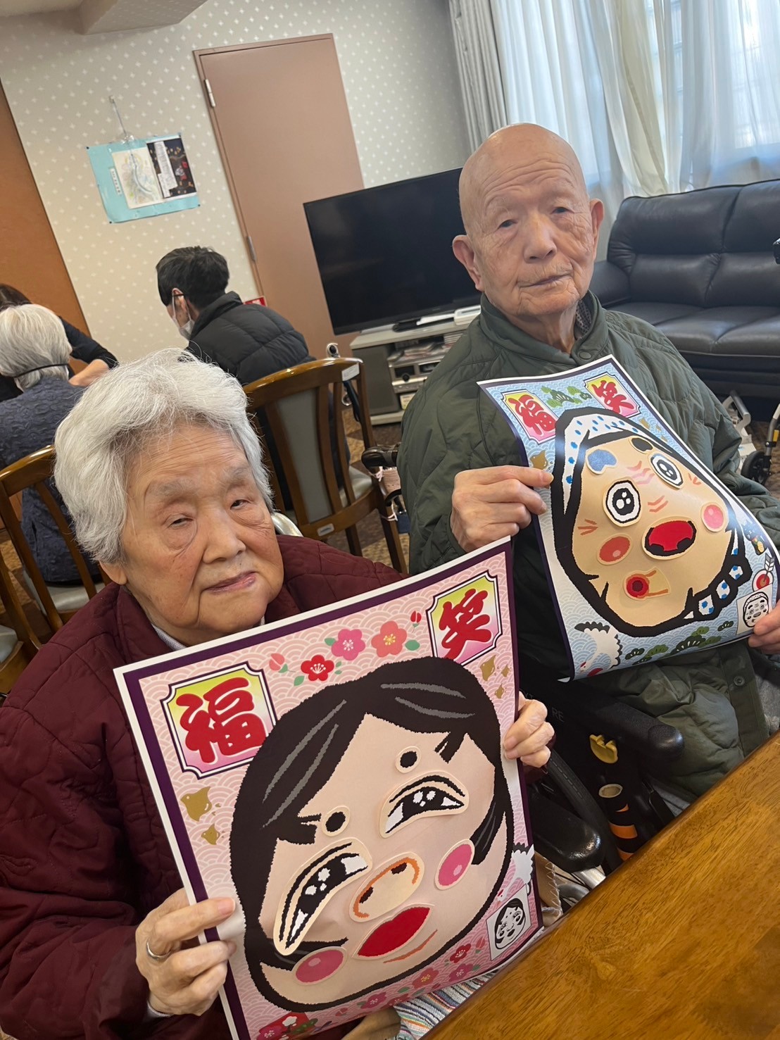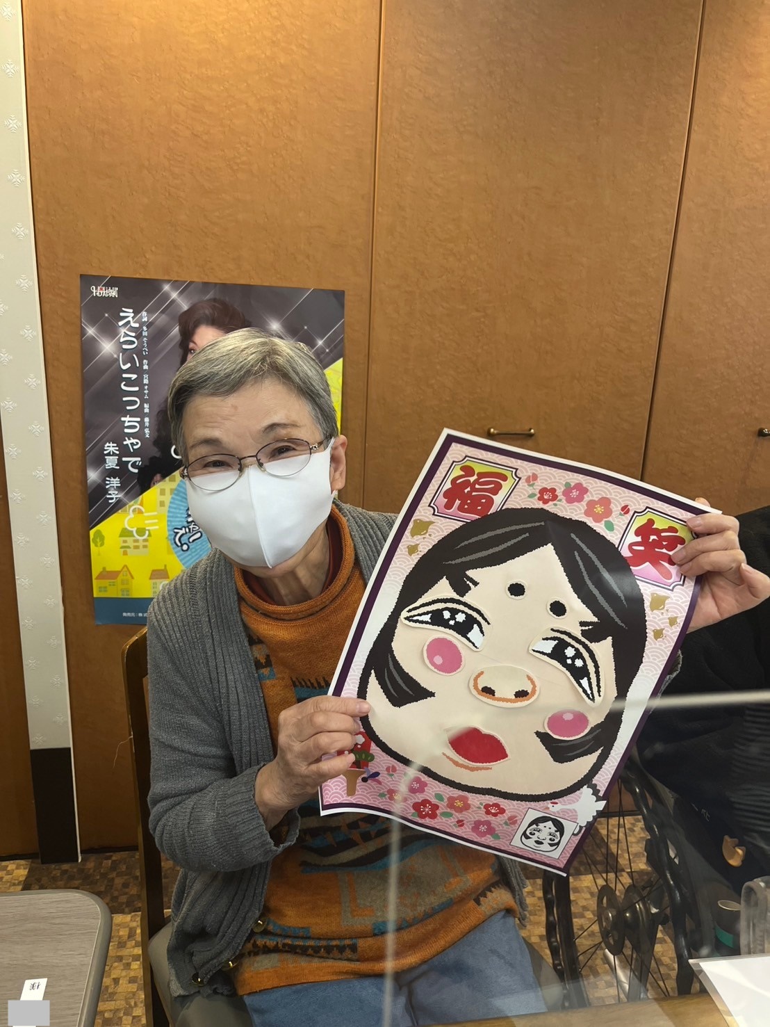 コンシェルジュ花みずきが開催しているお正月遊びの中に『福笑い』がありましたので、カーサ花みずきでも開催しました☆