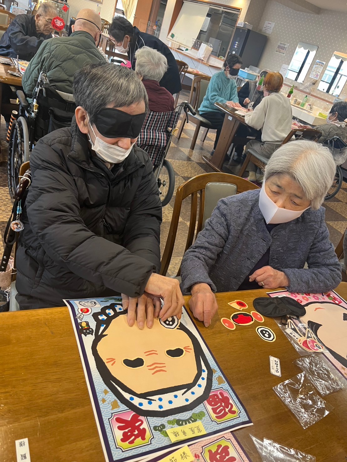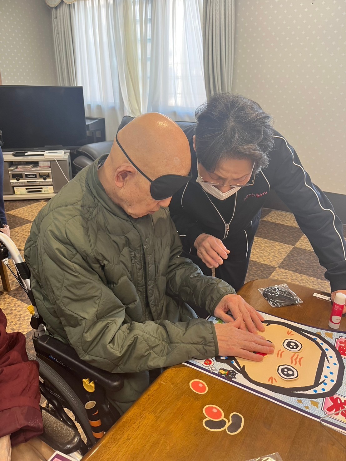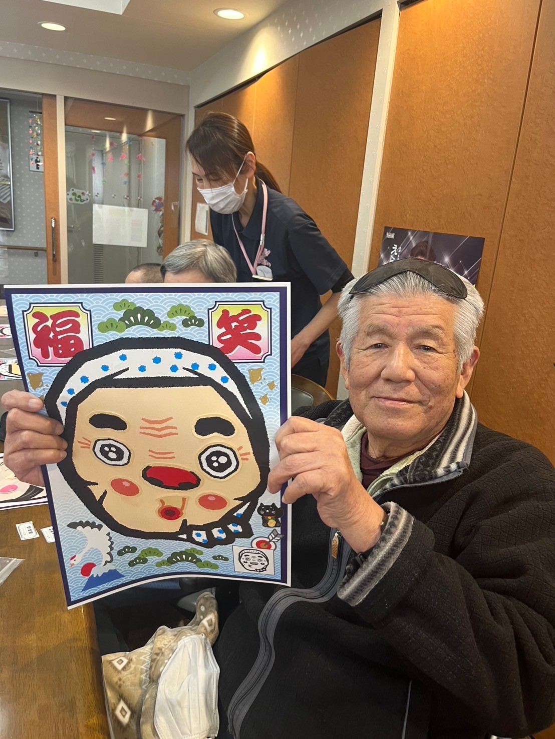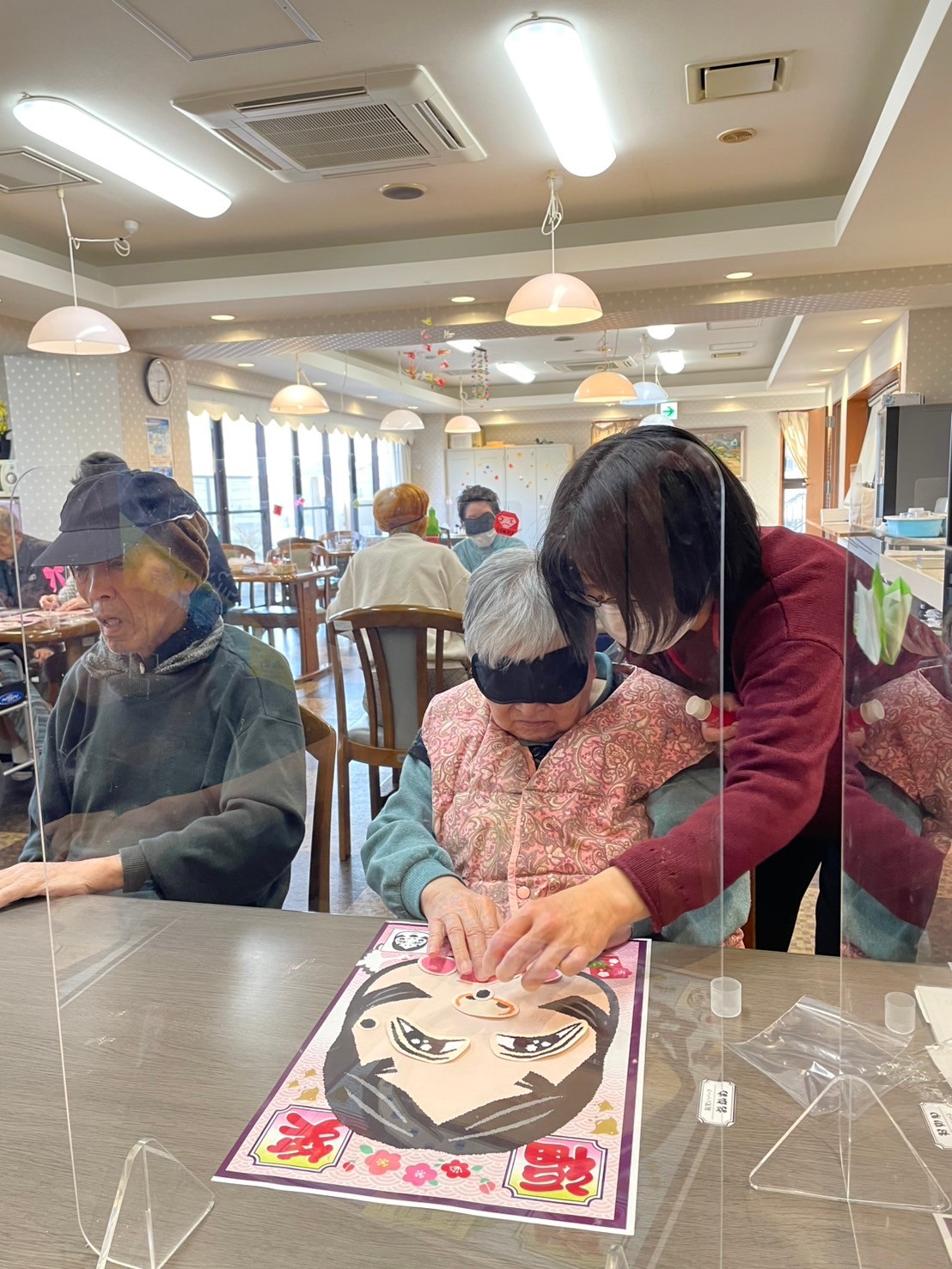 コンシェルジュ花みずきが開催しているお正月遊びの中に『福笑い』がありましたので、カーサ花みずきでも開催しました☆