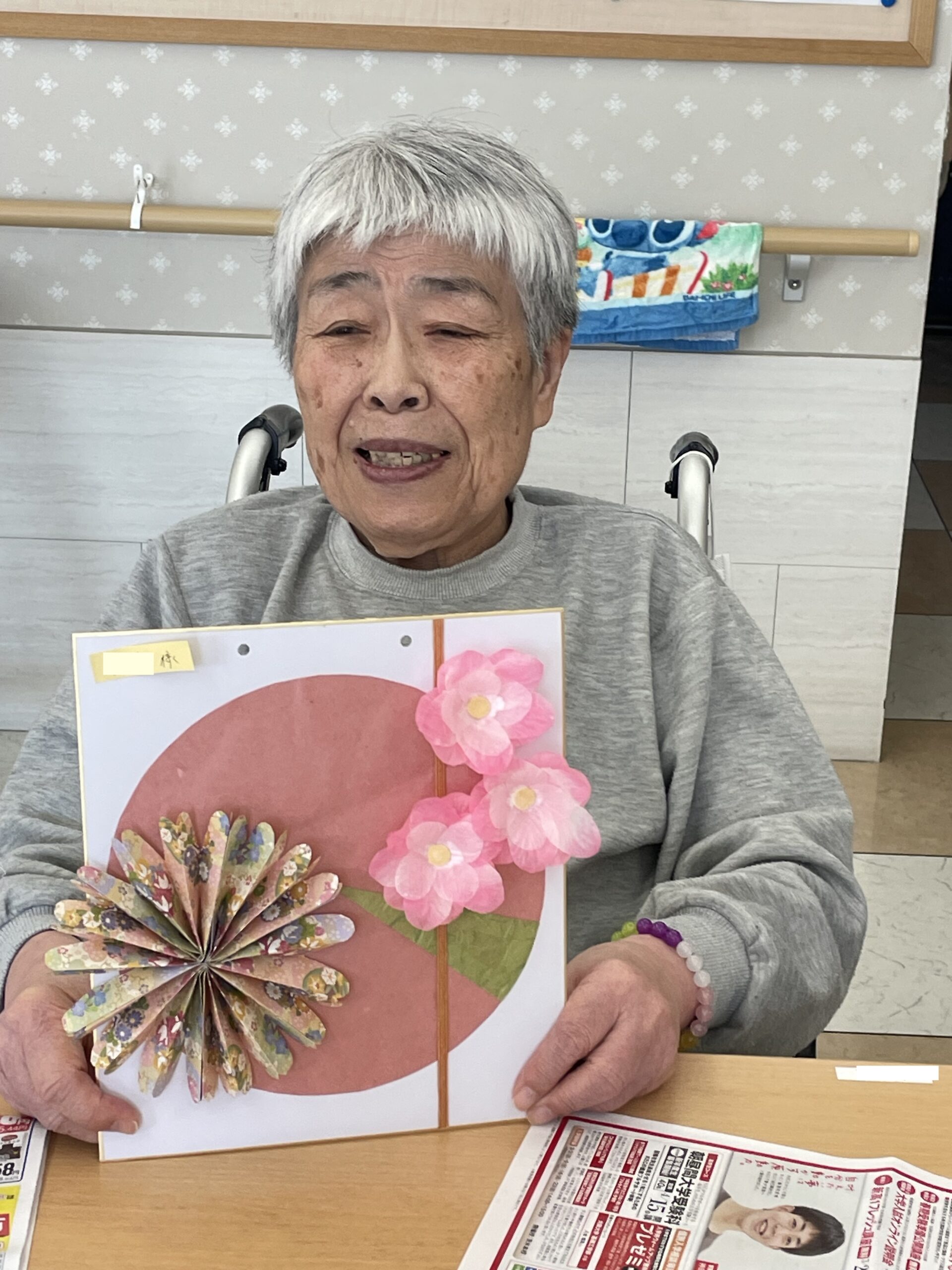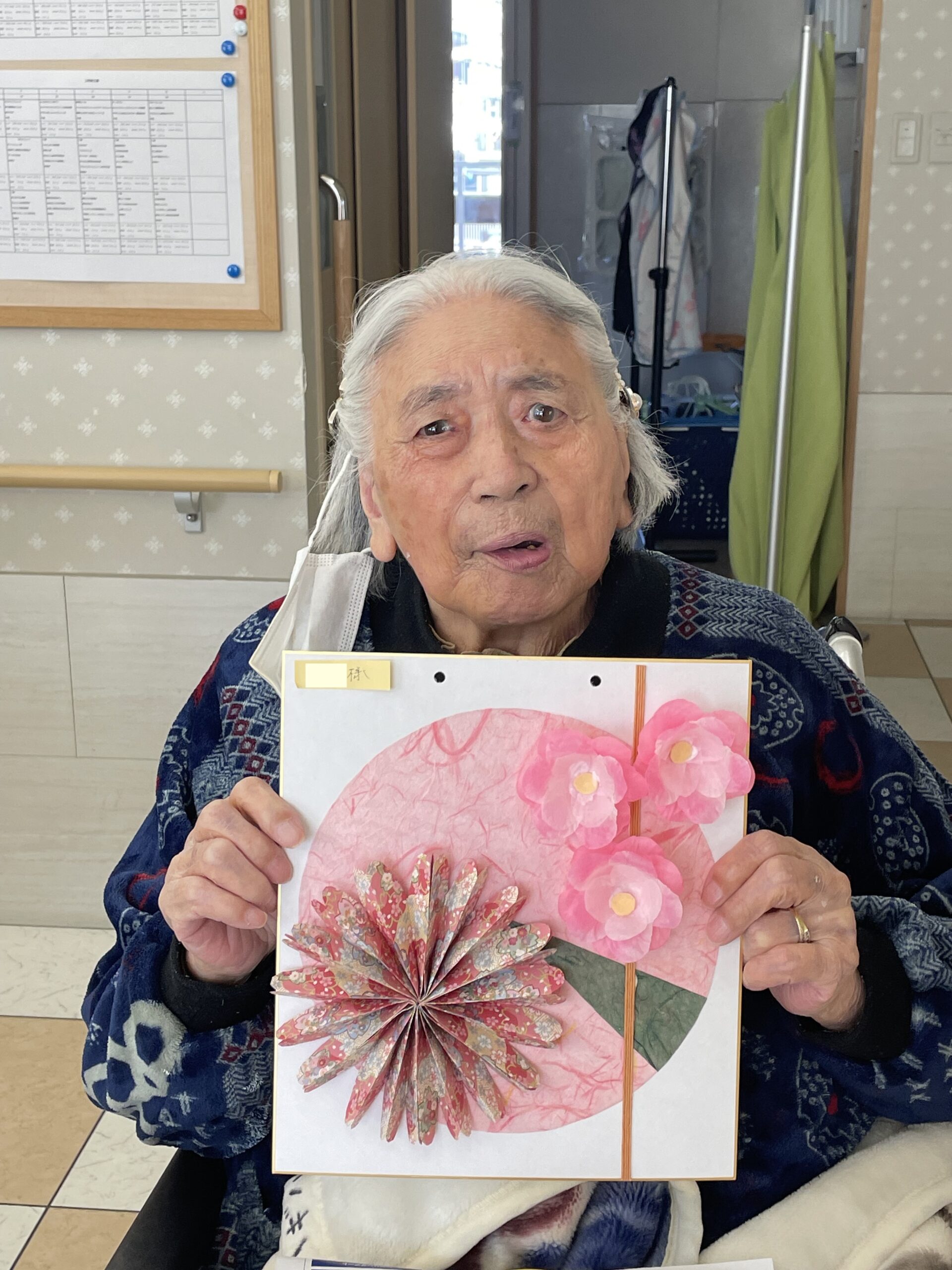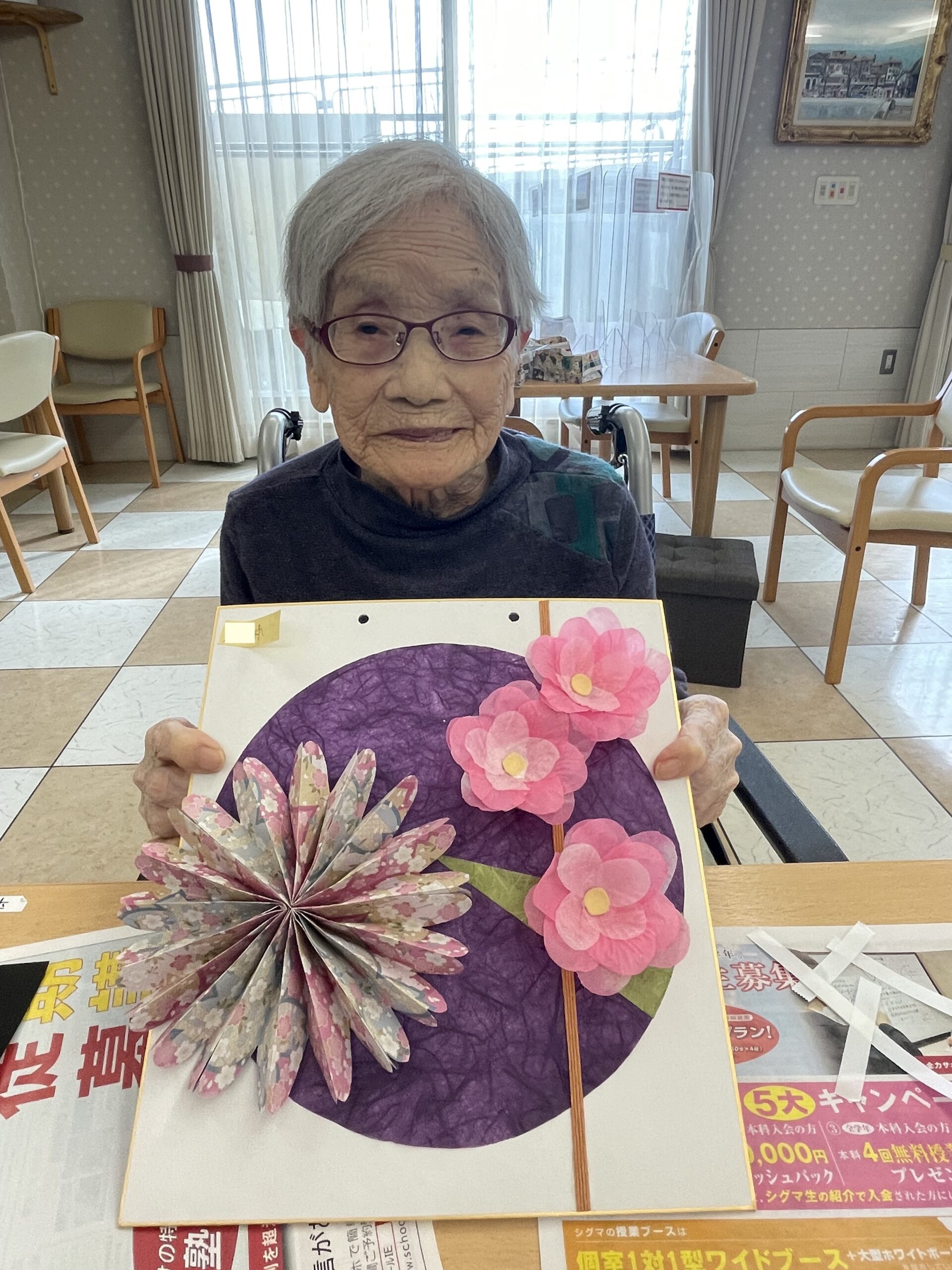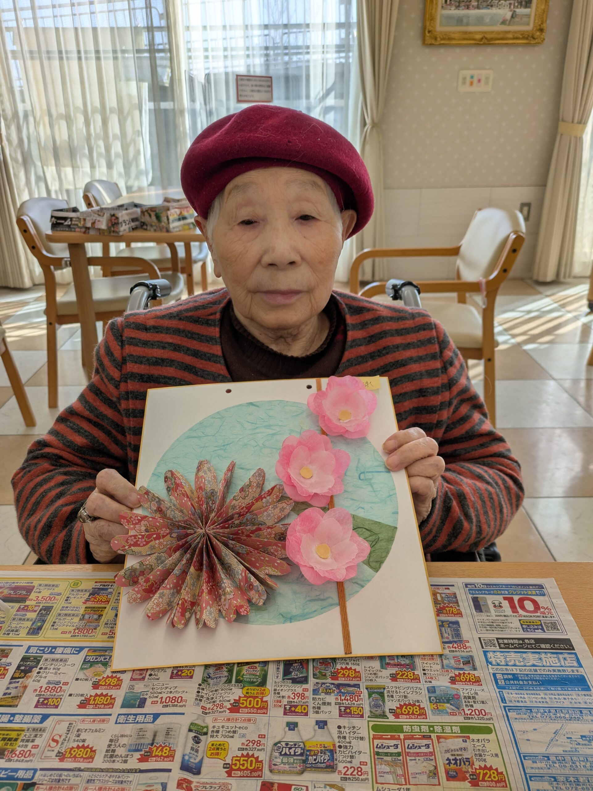 「上手くできたわ!」と嬉しそうに完成したひな祭り飾りをスタッフに見せてくださいました☆ とっても華やかで素敵ですね ♪