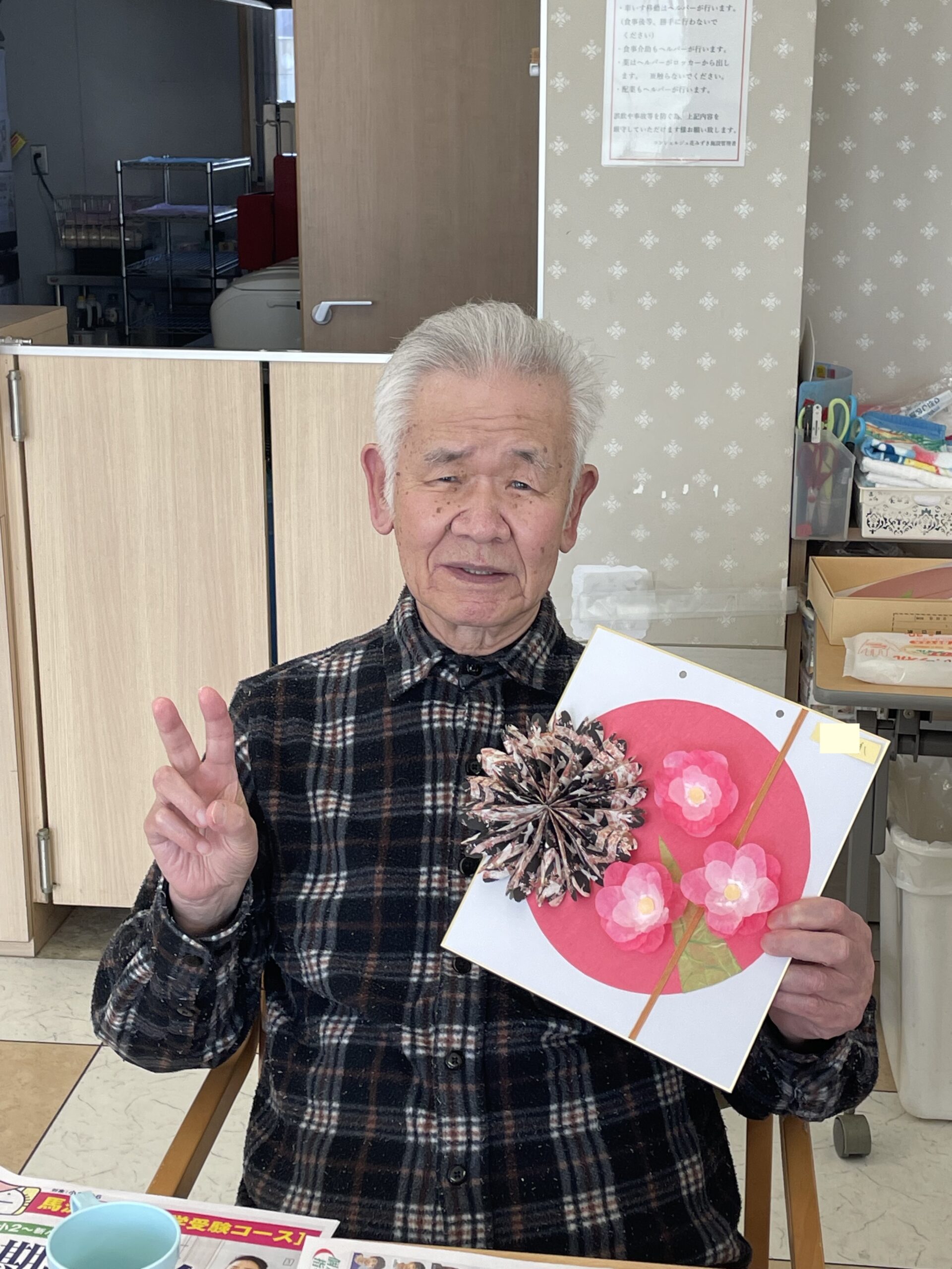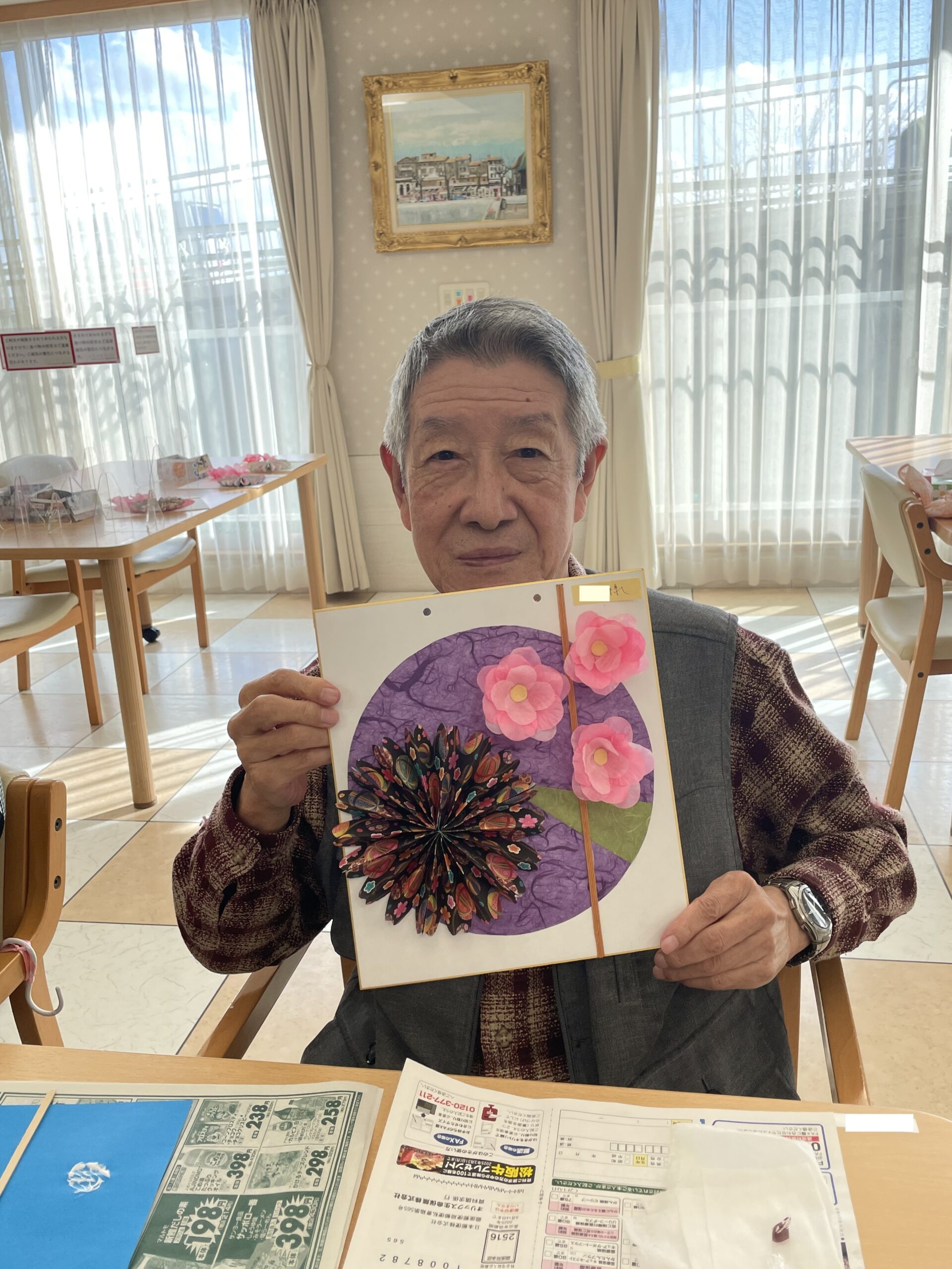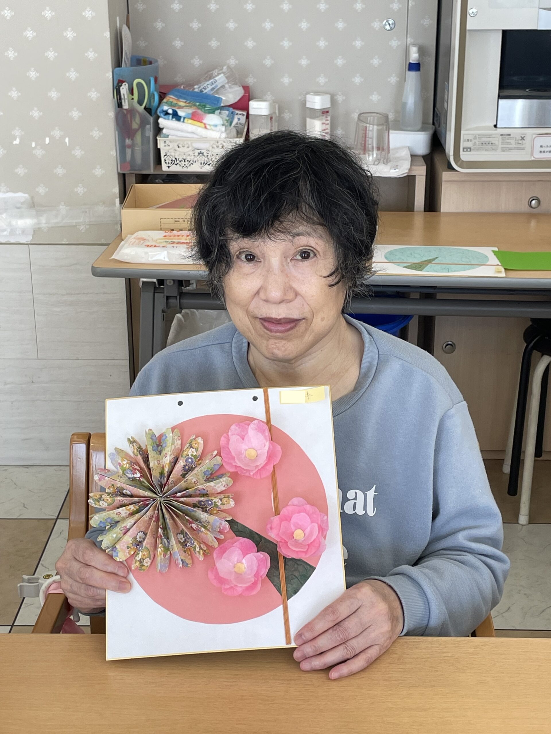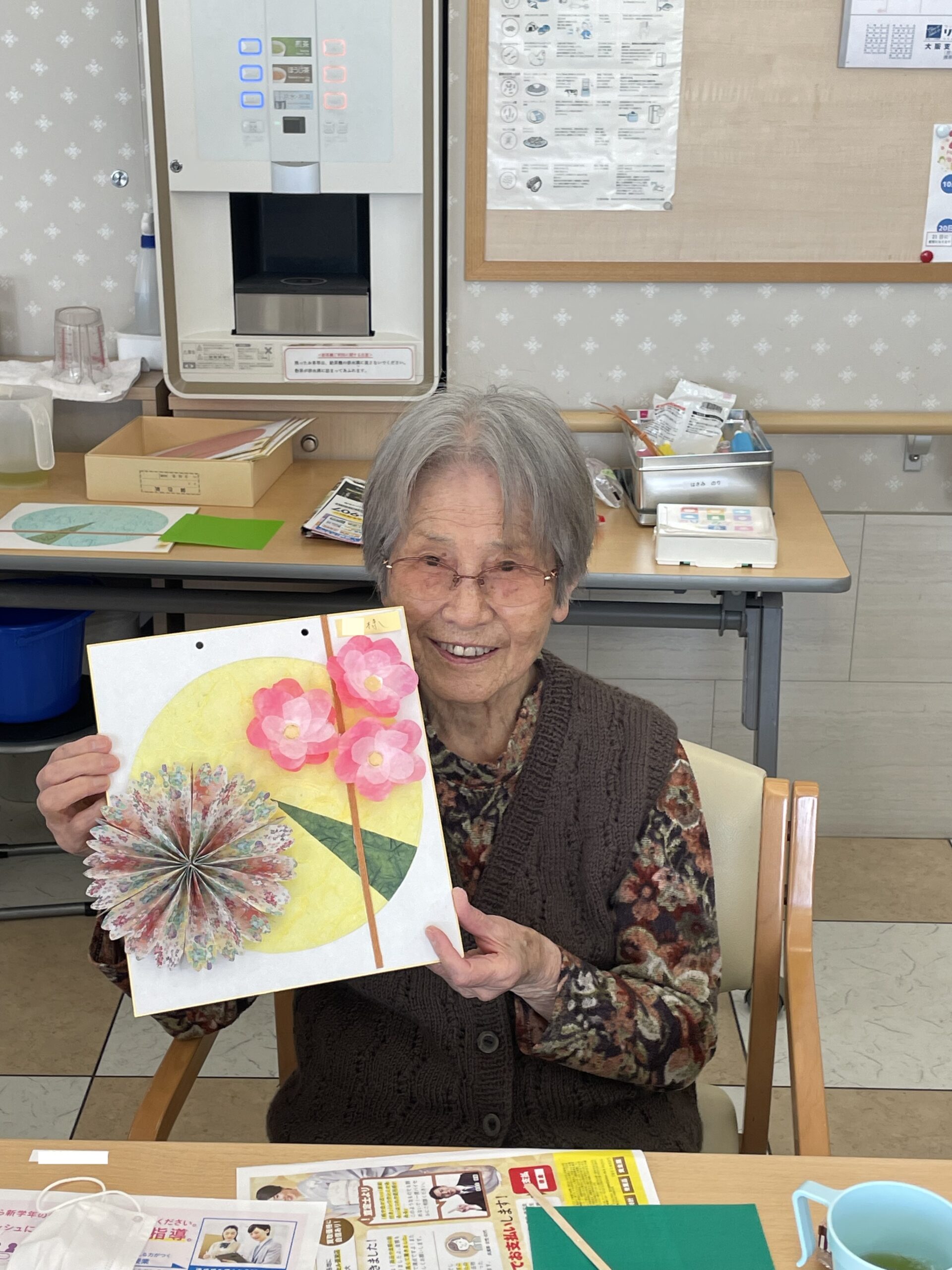 「上手くできたわ!」と嬉しそうに完成したひな祭り飾りをスタッフに見せてくださいました☆ とっても華やかで素敵ですね ♪