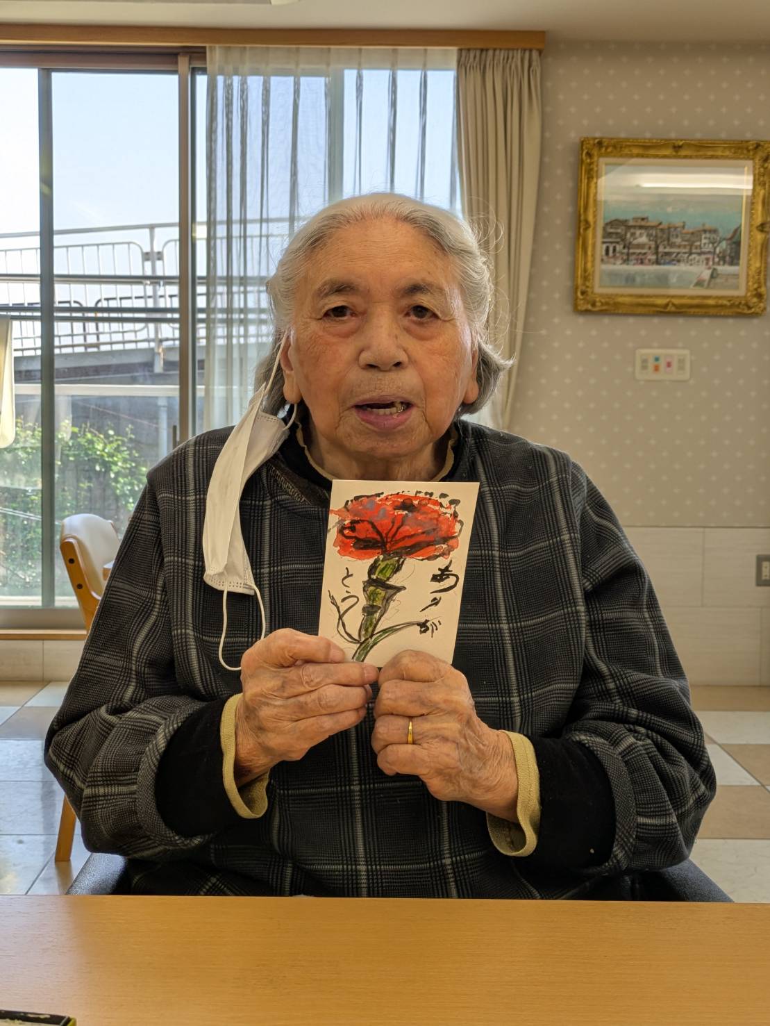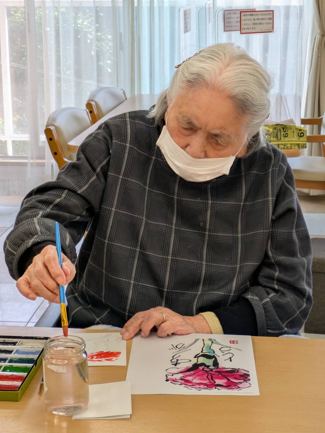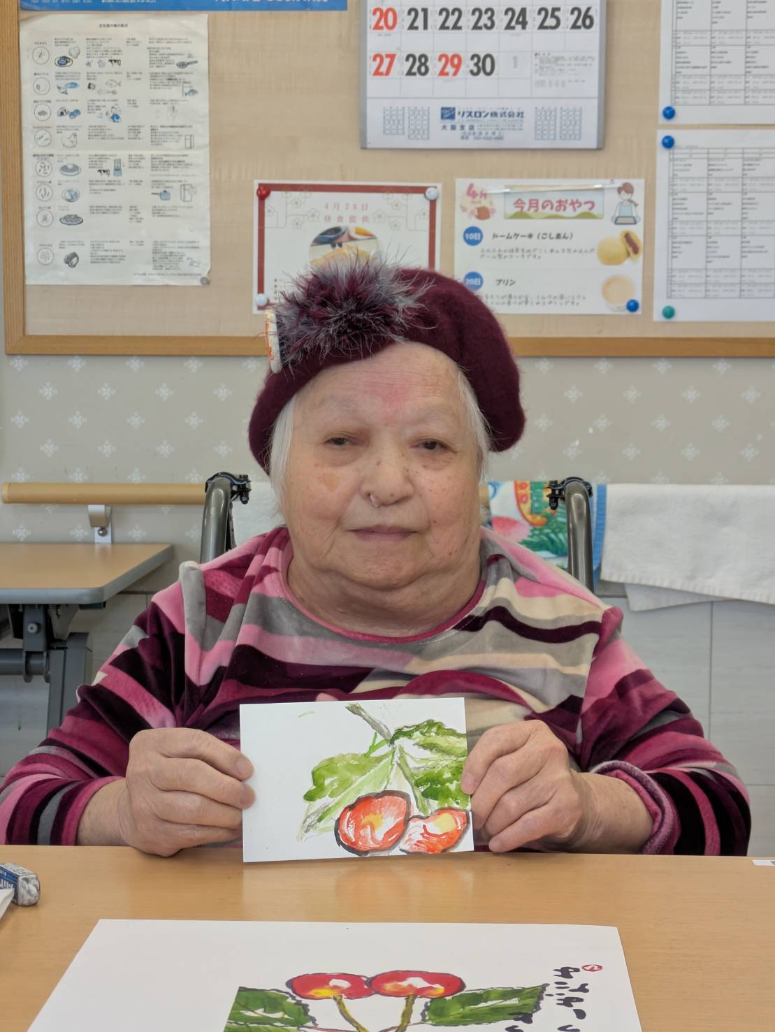 少人数での開催となりましたが絵手紙が大好きなご入居者様がご参加くださいました。ご参加いただいた皆様のご様子と完成した作品をご紹介致します ♪
