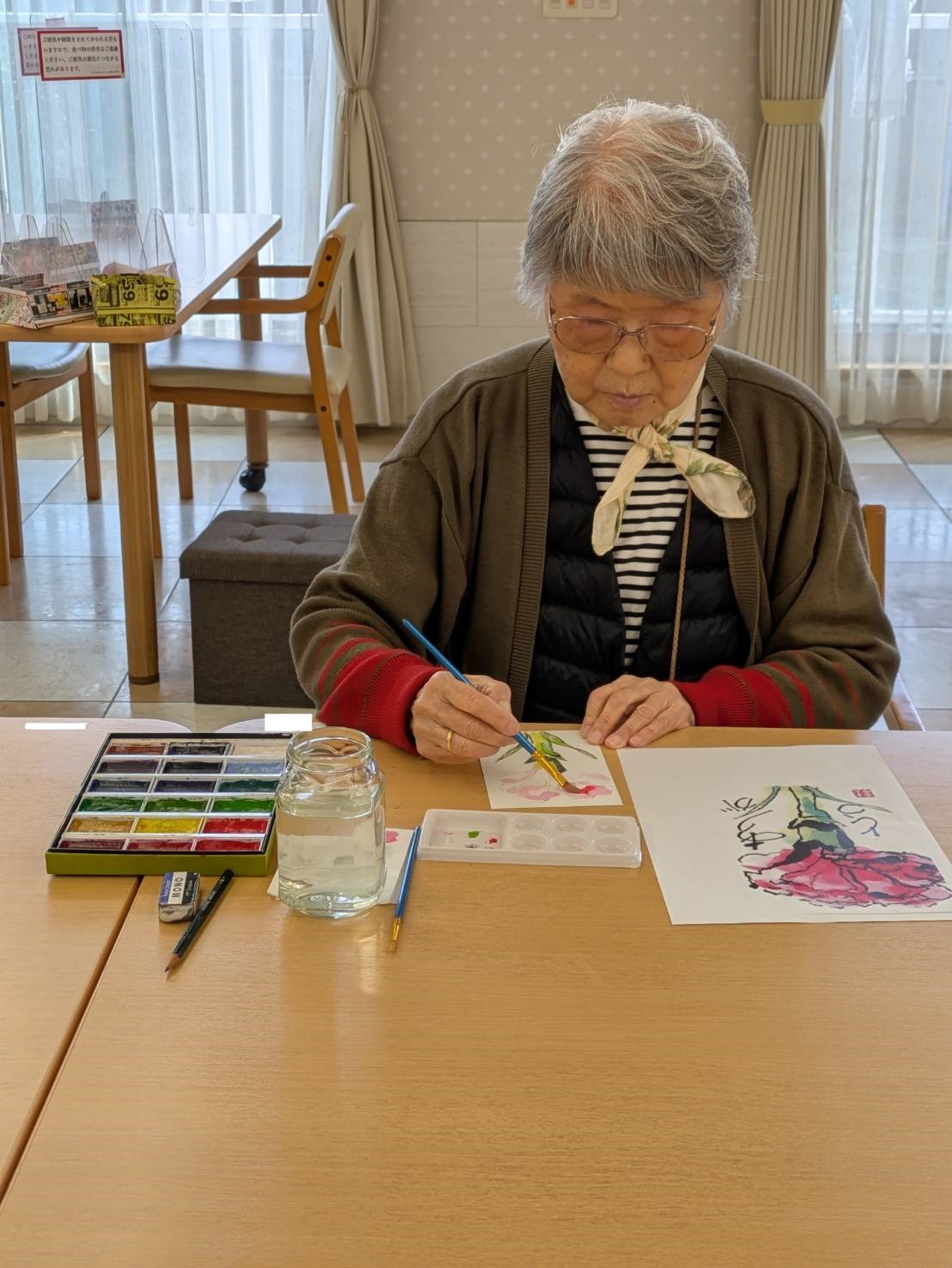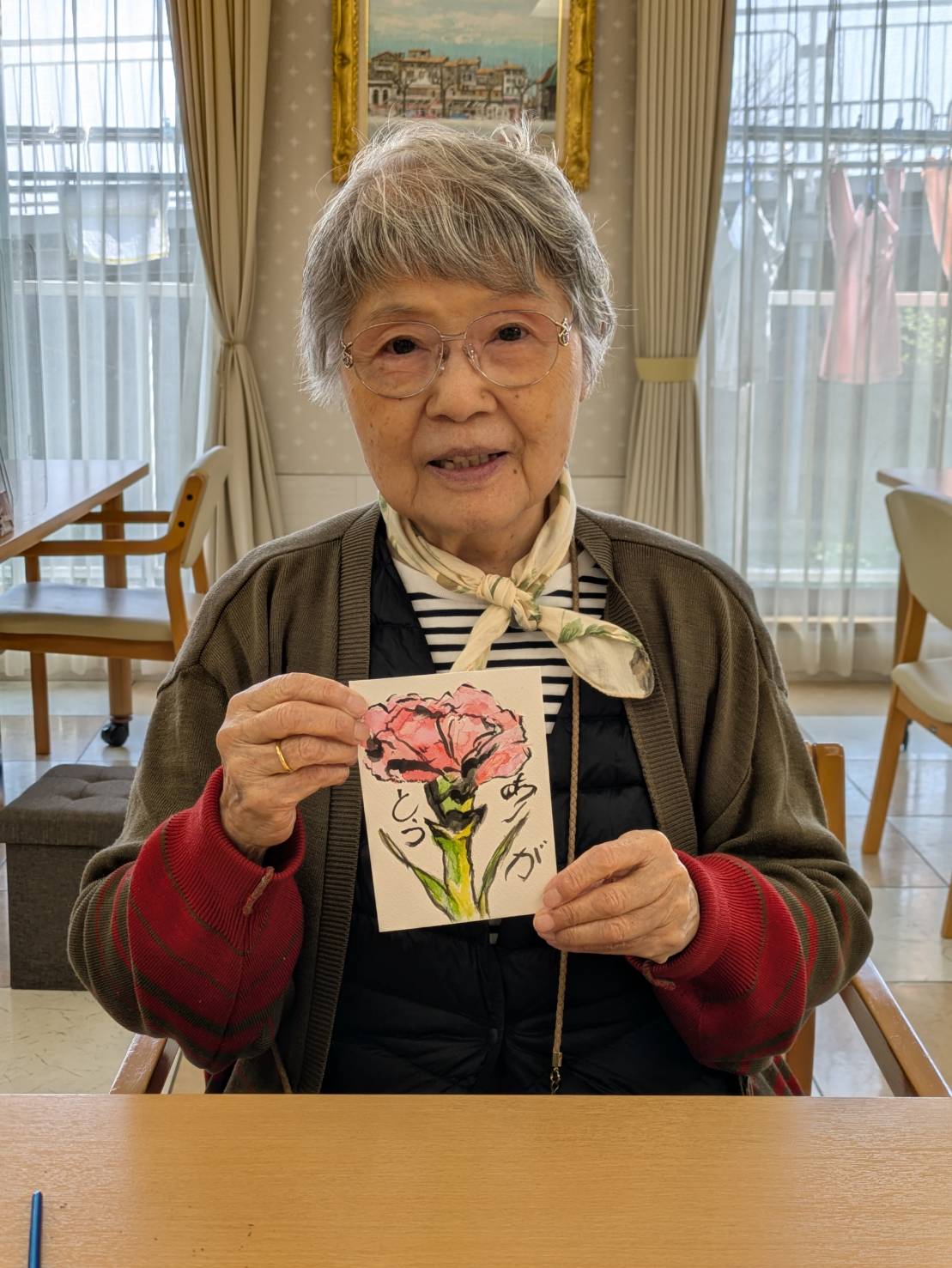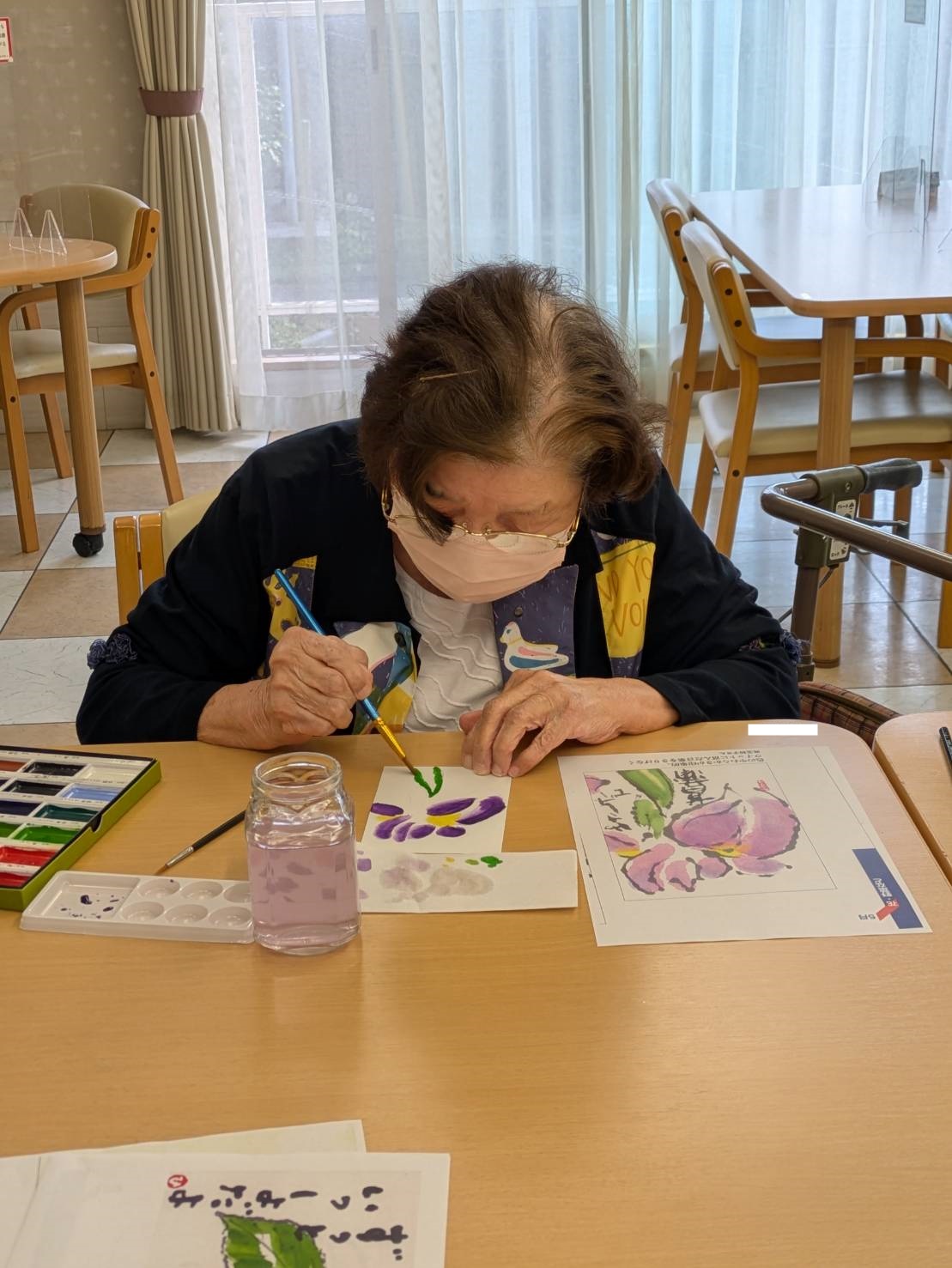 コンシェルジュ花みずきでは、4月に5月の草花や季節の行事を題材にした絵手紙レクリエーションを開催することができました。
