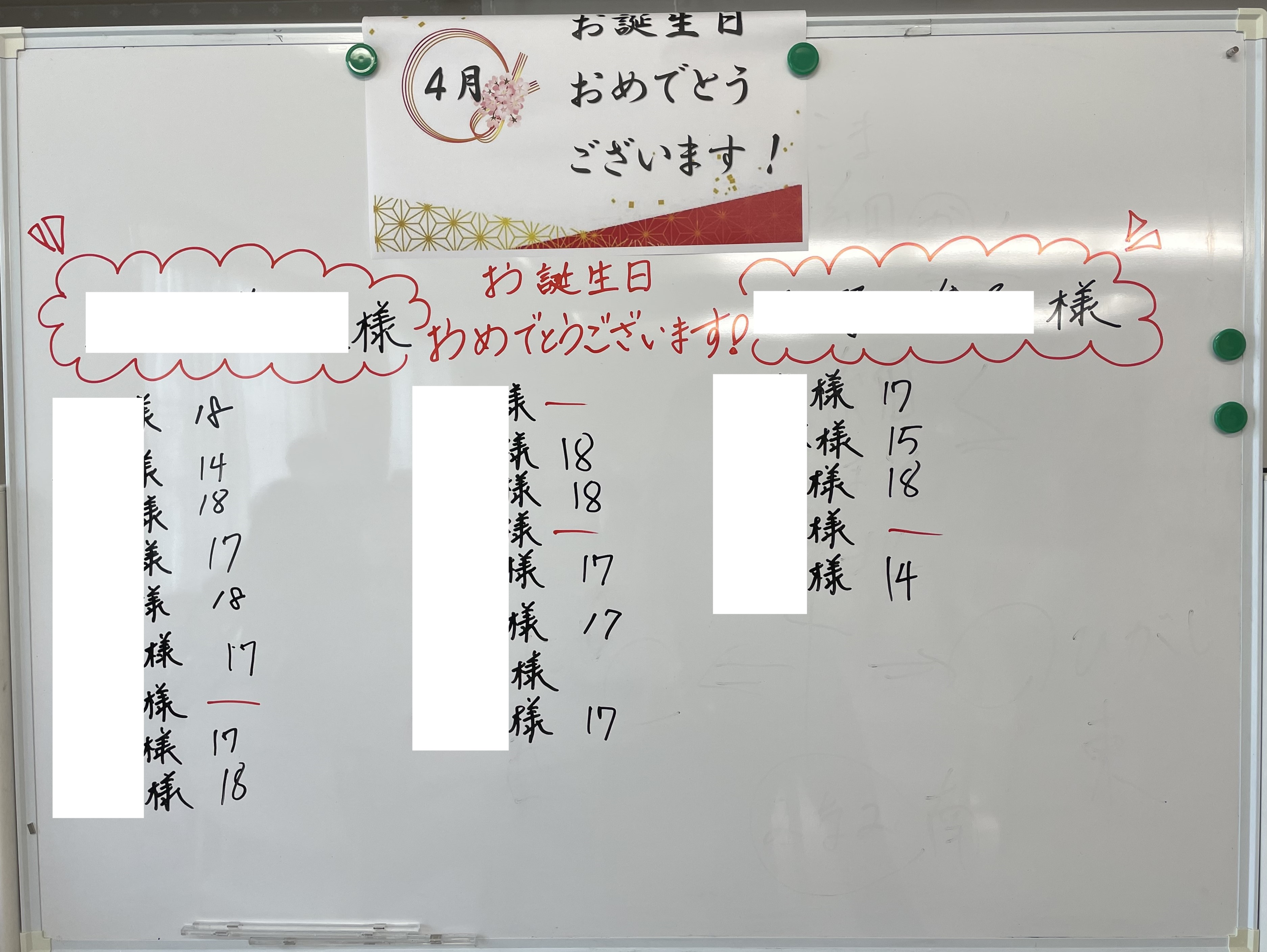 この後4は月生まれの方のお誕生日のお祝いです。その様子は次回のコンシェルジュ花みずき通信でお届け致します。お楽しみに…☆