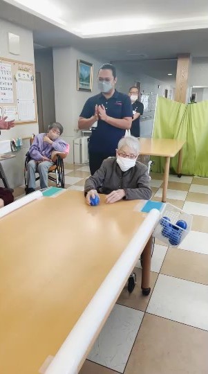 「私は若い頃スポーツ万能だったから!任せて!」と楽しそうにご参加をされていました♪転がってくるボールにも素早く反応されているところが流石です!