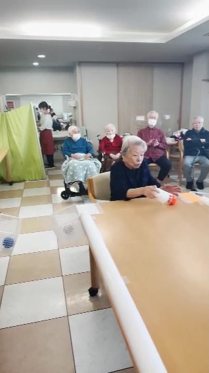 いつの間にかコップを使わずに手でボールをキャッチしてゴールに入れていくご入居者様も?! 全然良いんです♪