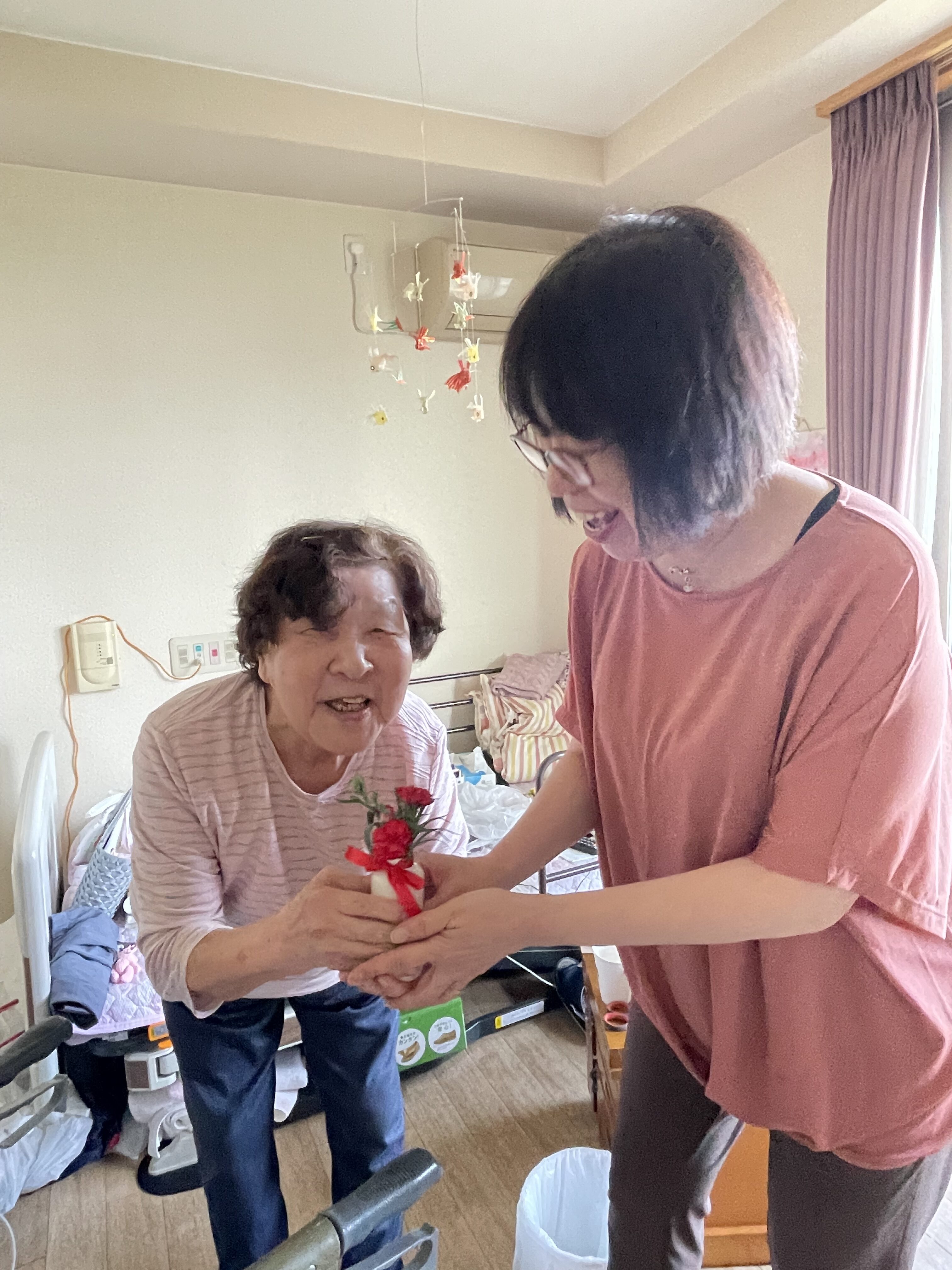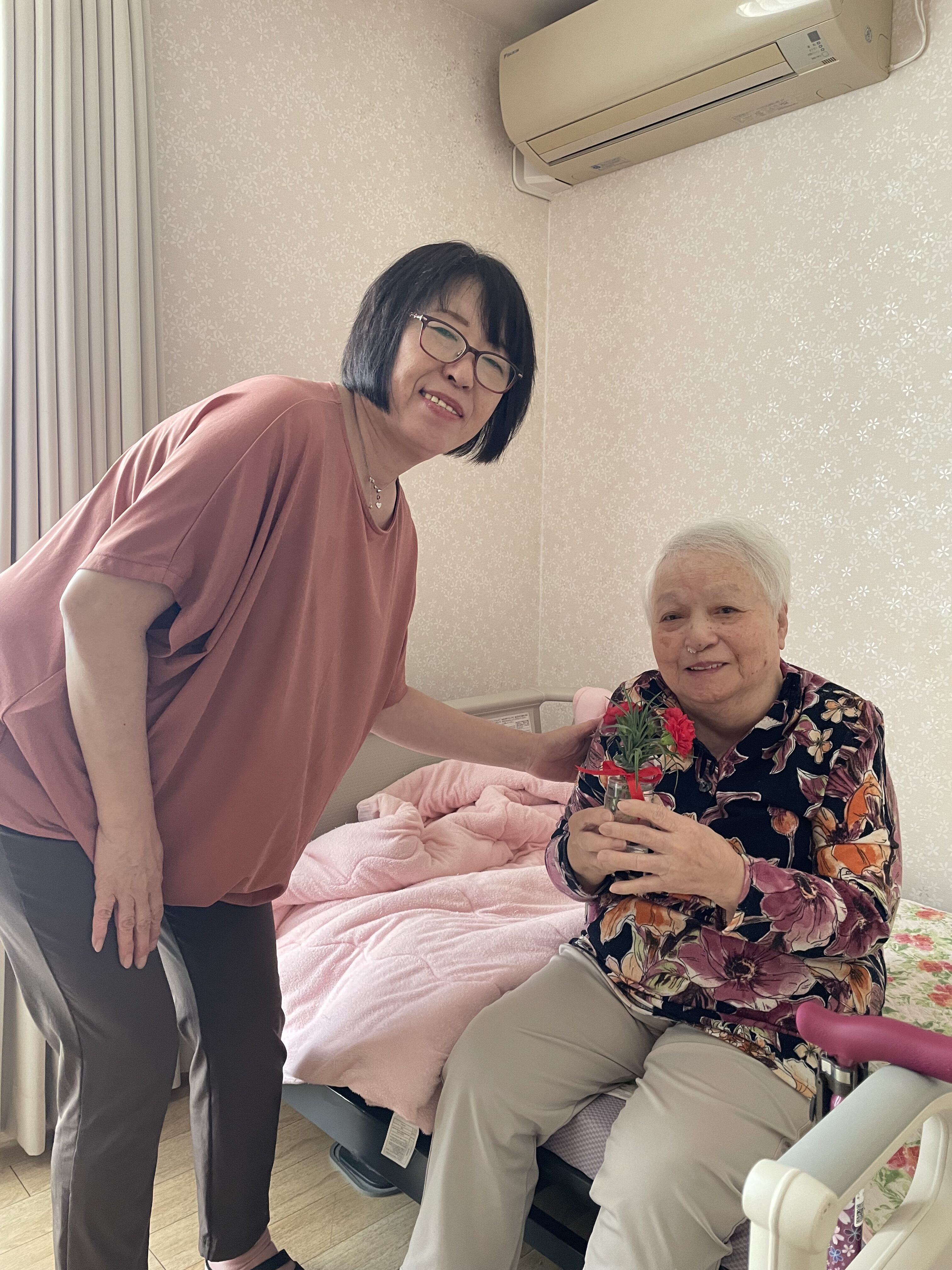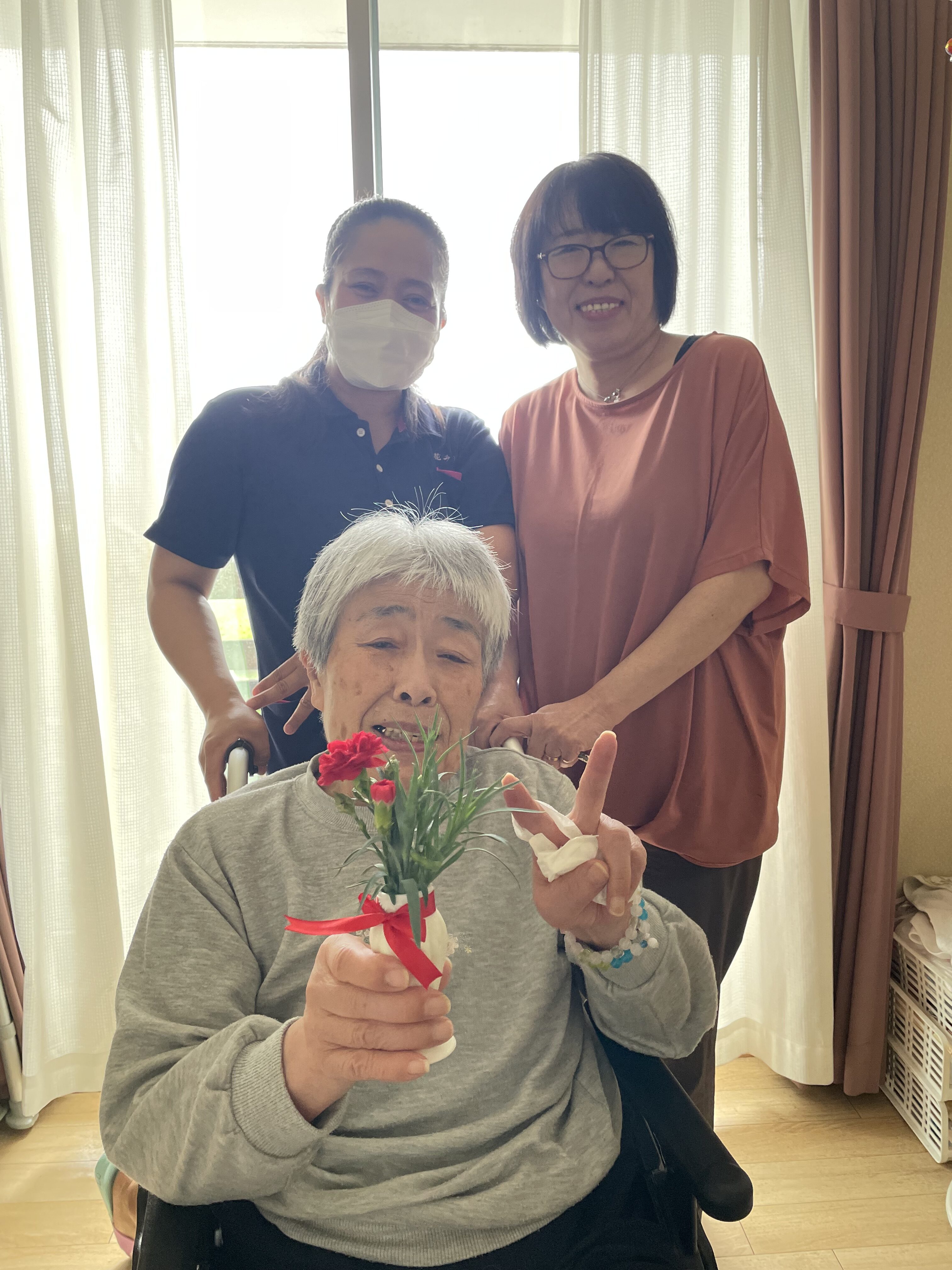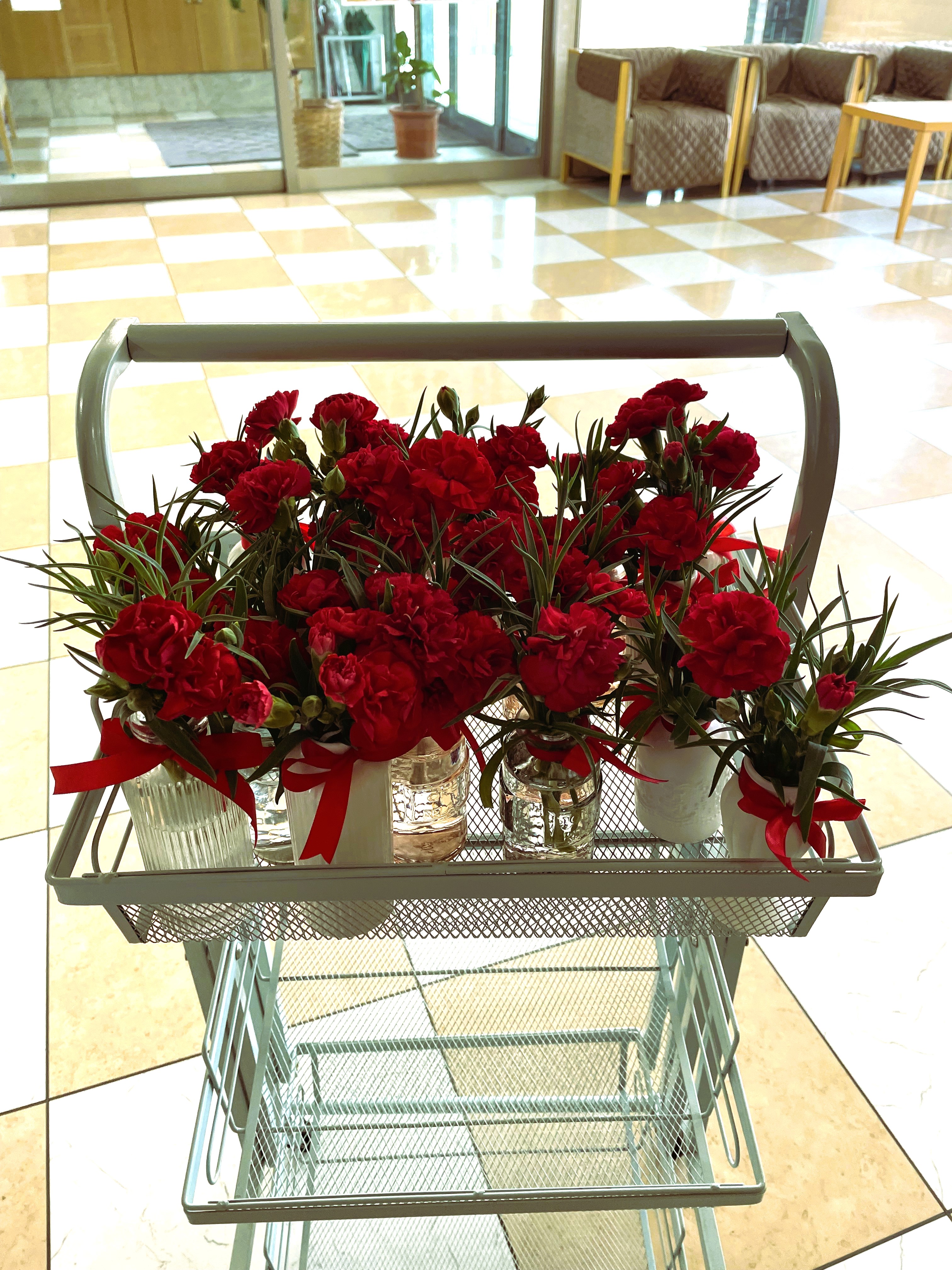 5月と言えば『母の日』ですね ♪ 今年も女性のご入居者様の皆様に日頃の感謝「カーネーション」をお贈りさせていただきました。