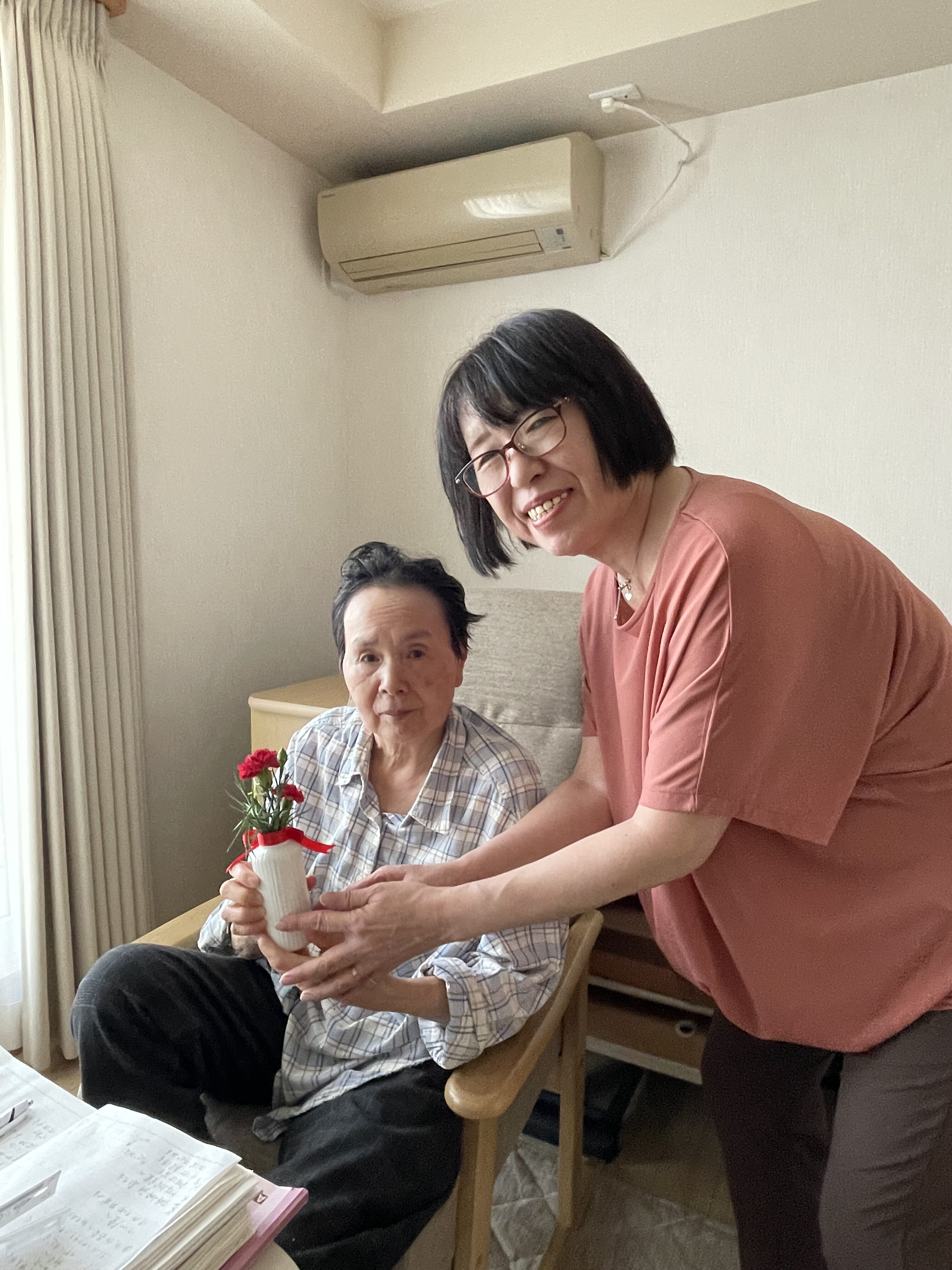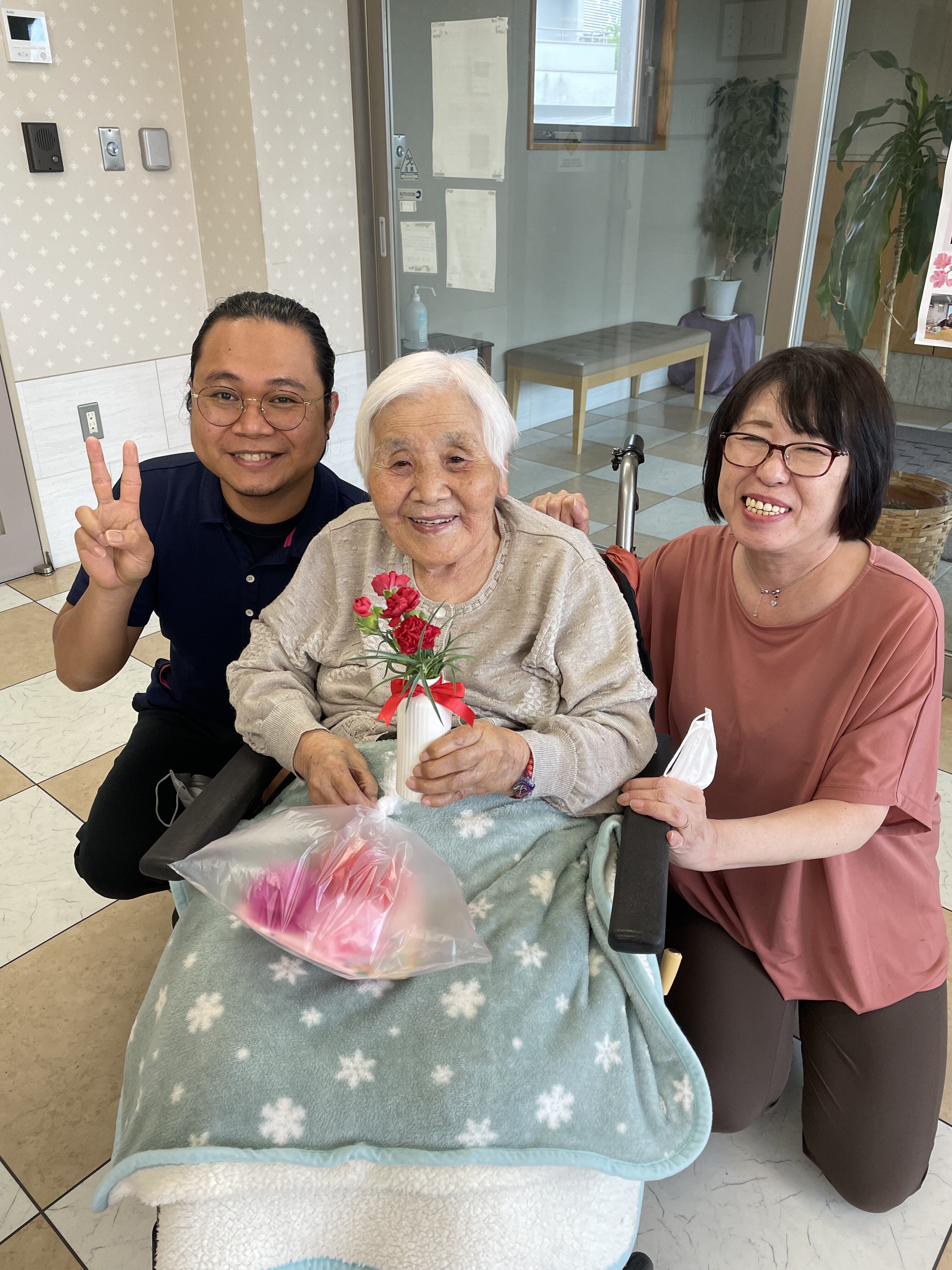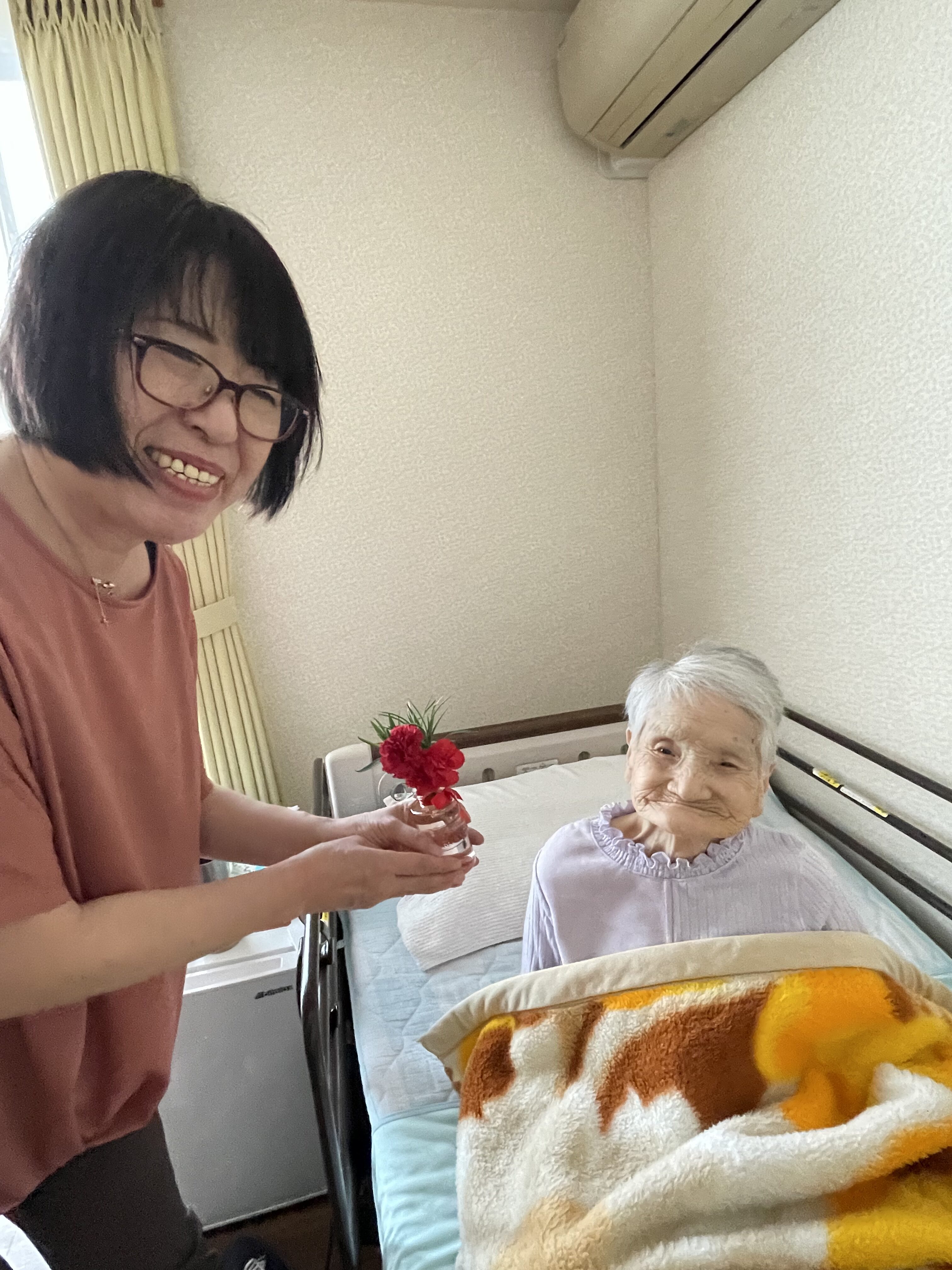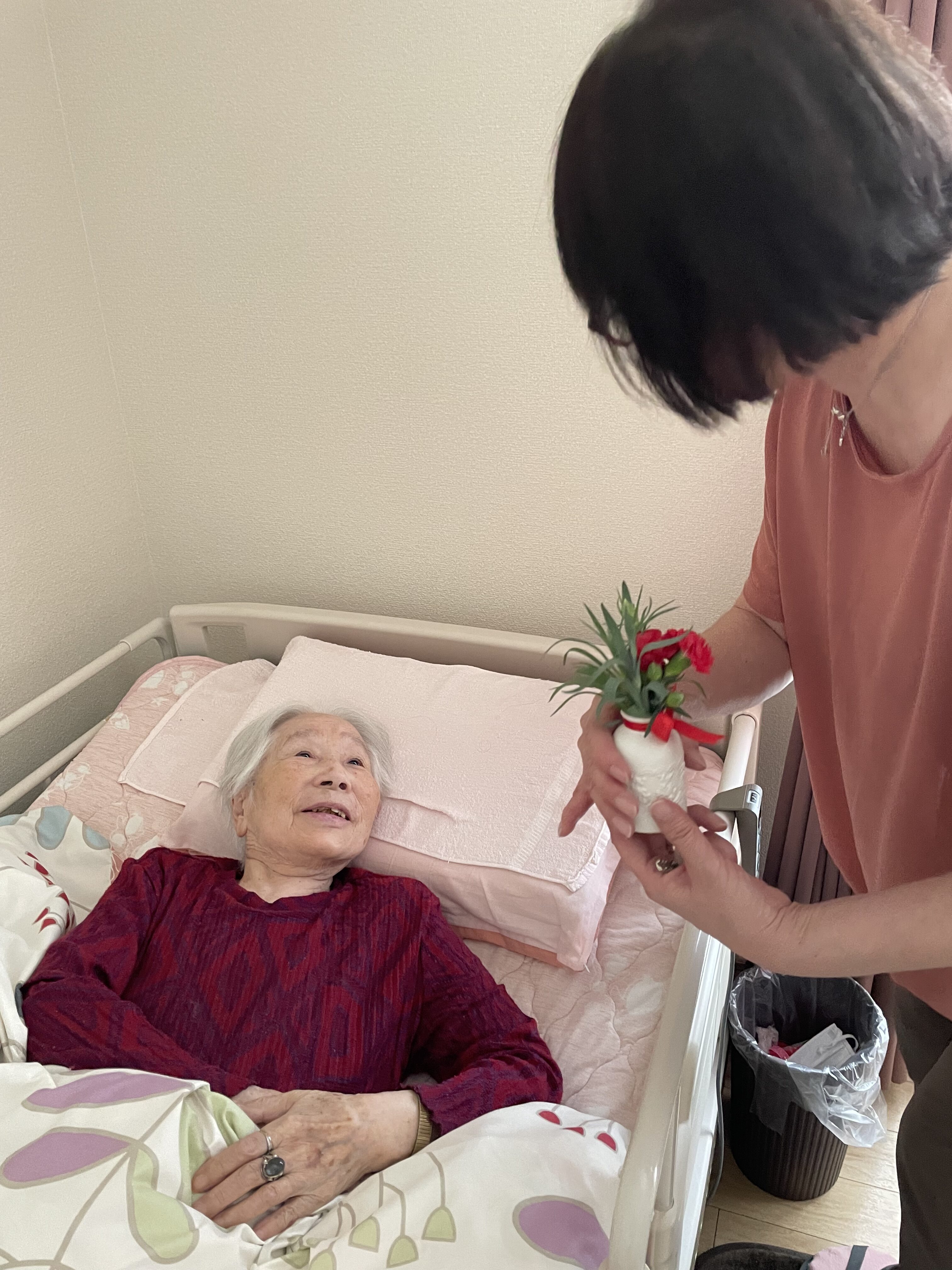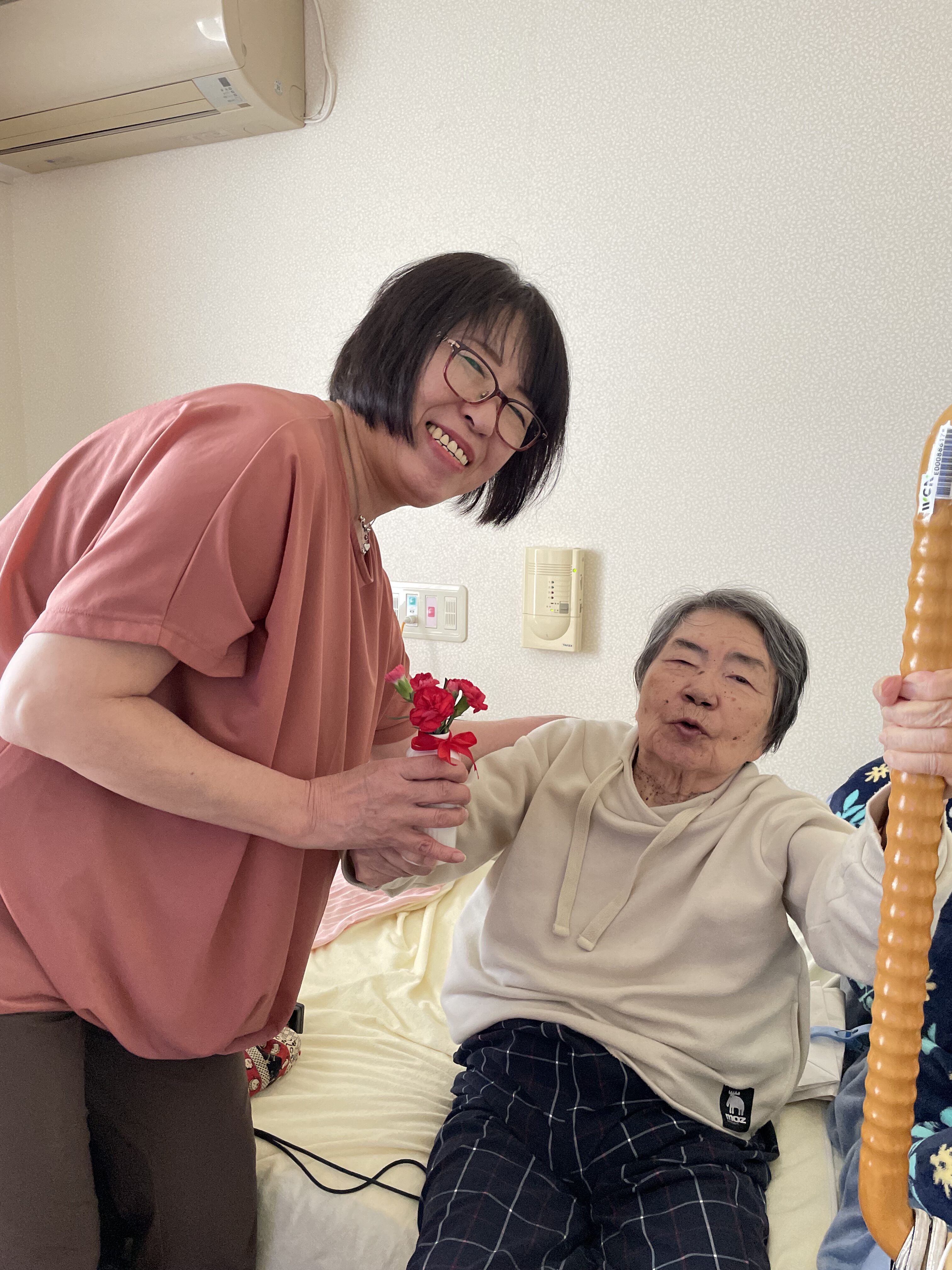 5月と言えば『母の日』ですね ♪ 今年も女性のご入居者様の皆様に日頃の感謝「カーネーション」をお贈りさせていただきました。